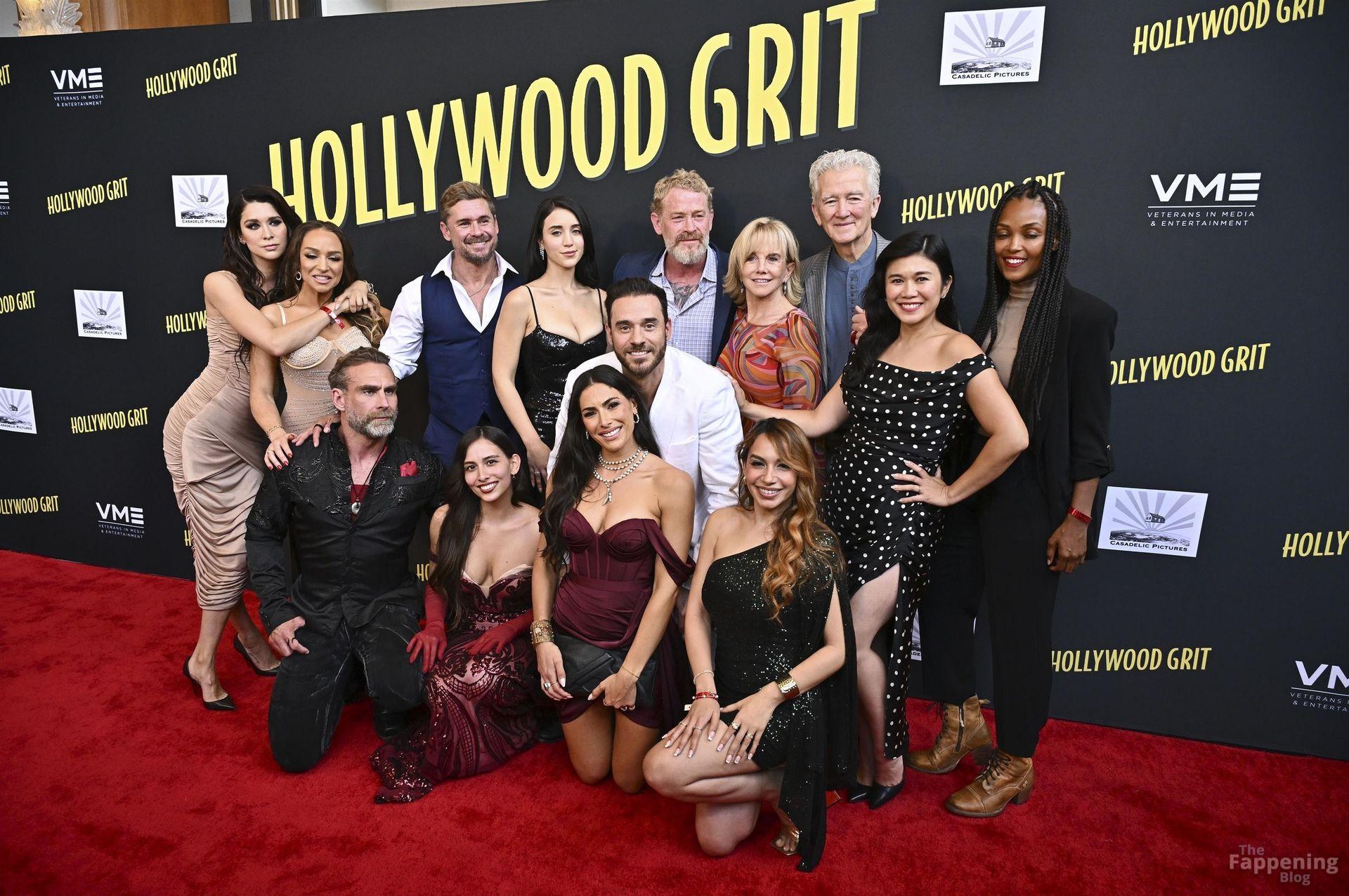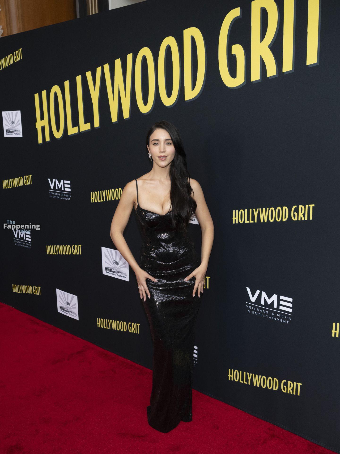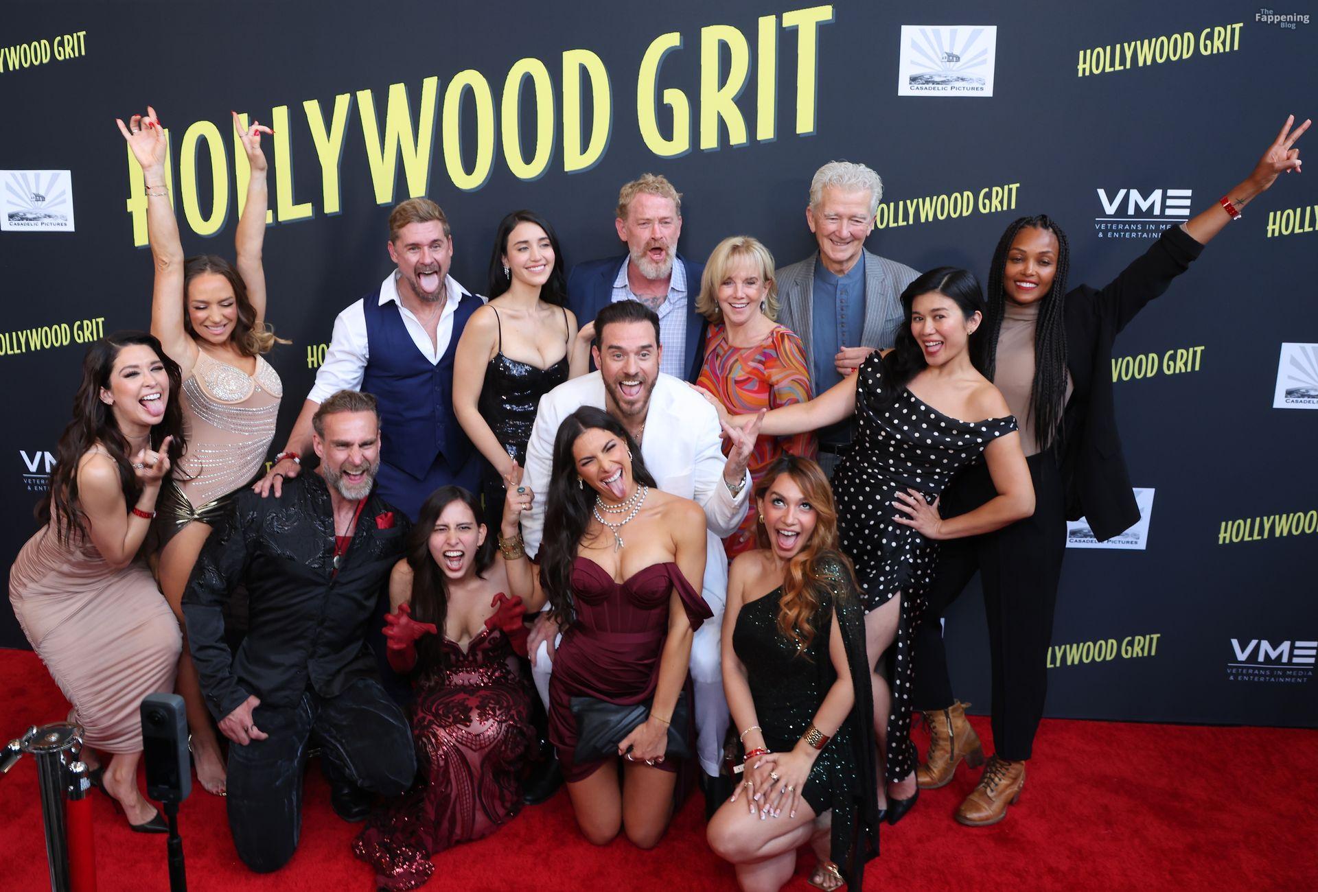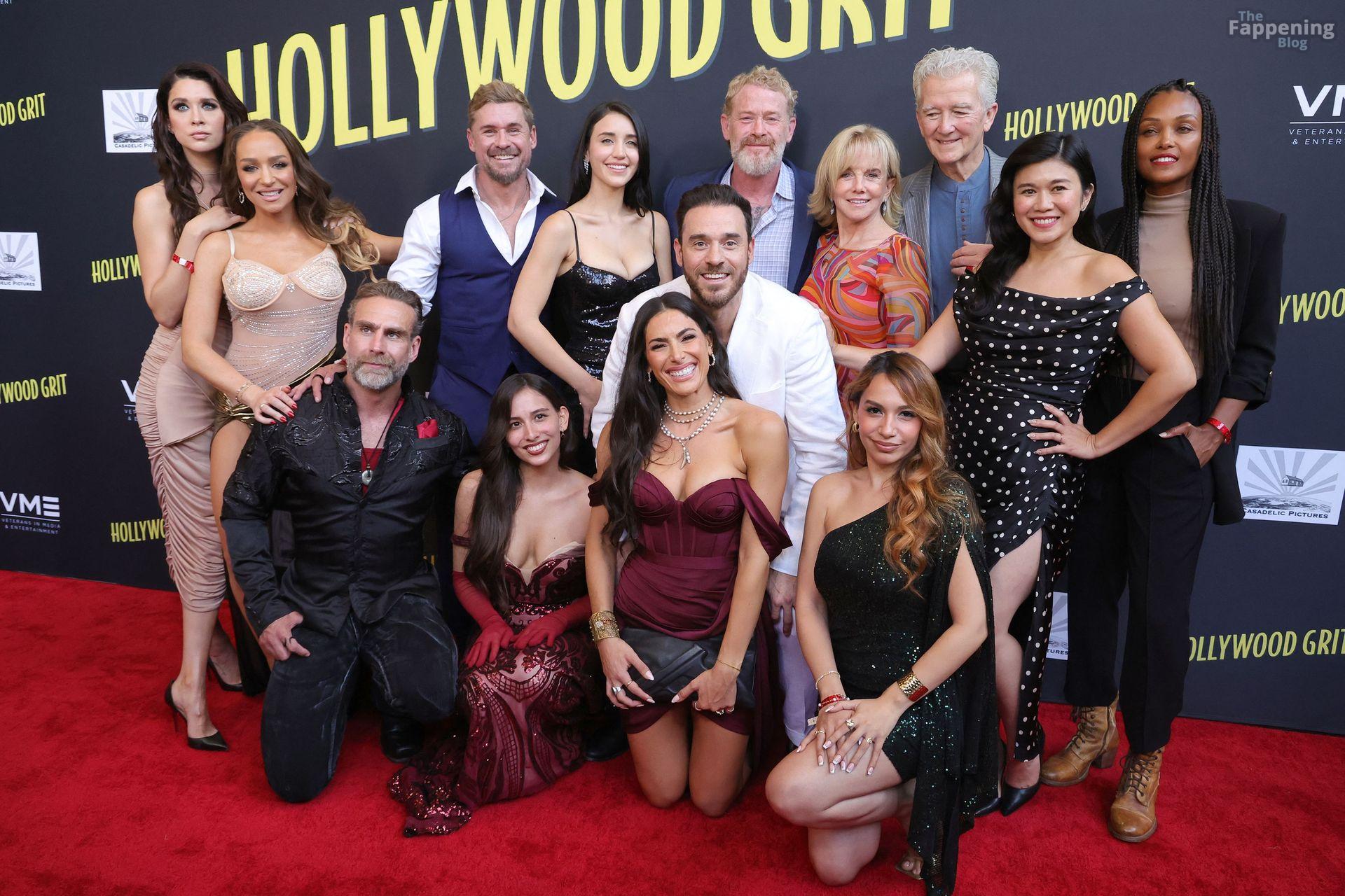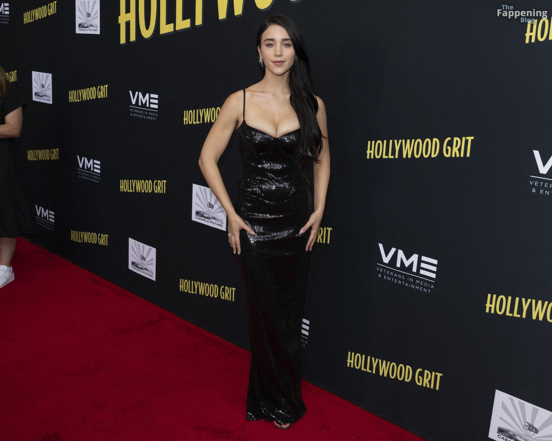 Atriz e modelo Caylee Cowan comparece à premiere de “Hollywood Grit”, arrasando com um vestido preto de paetês que destacava seu decote.