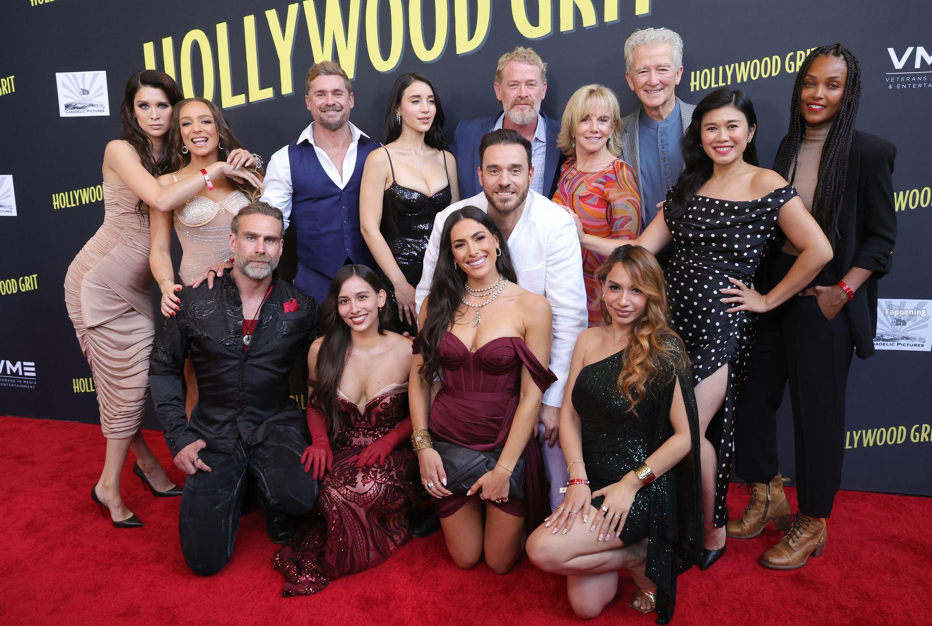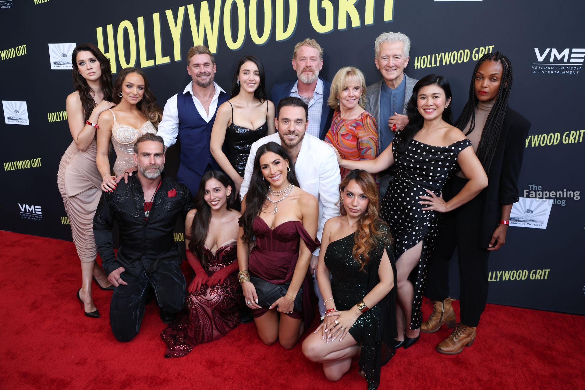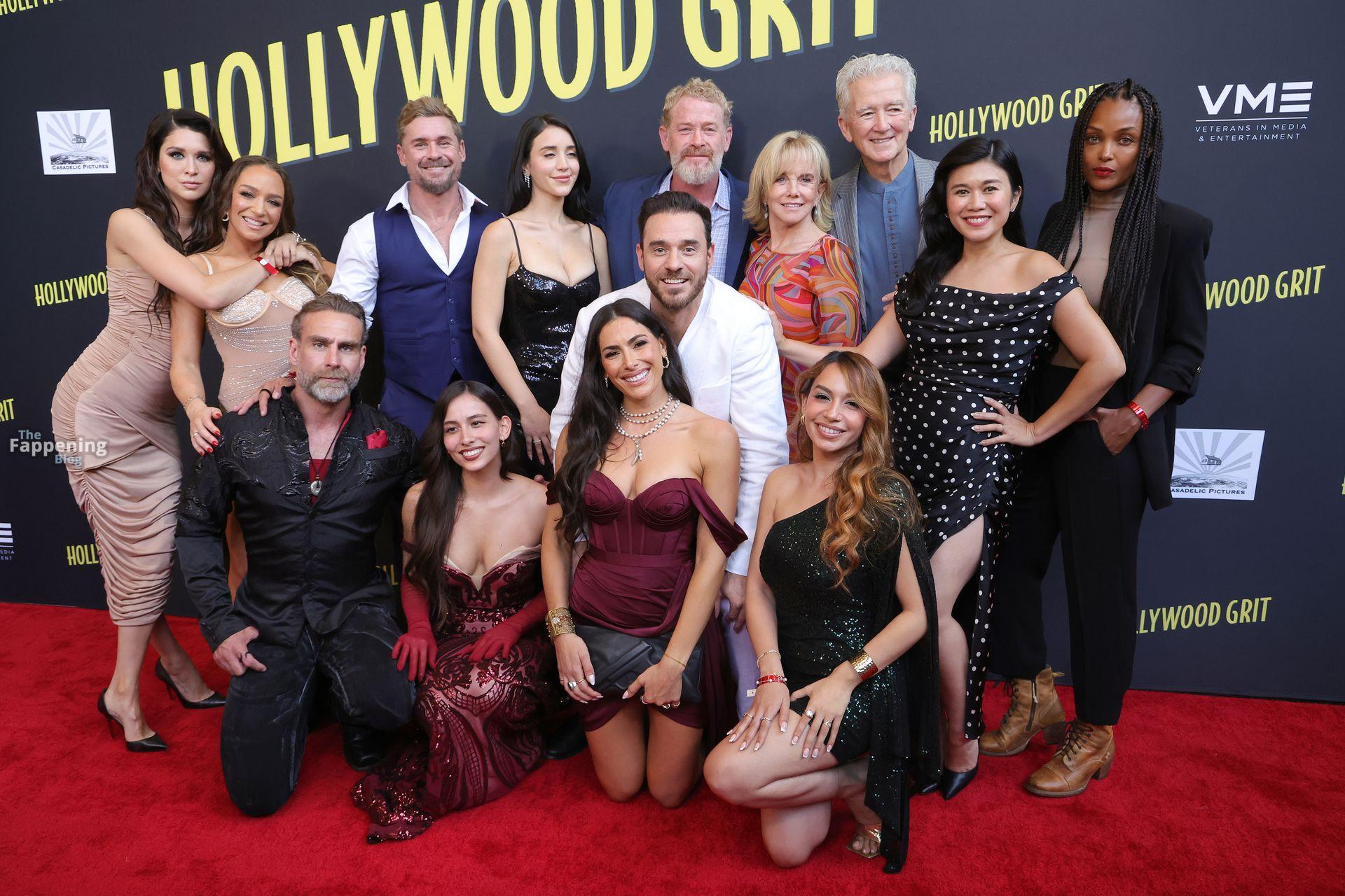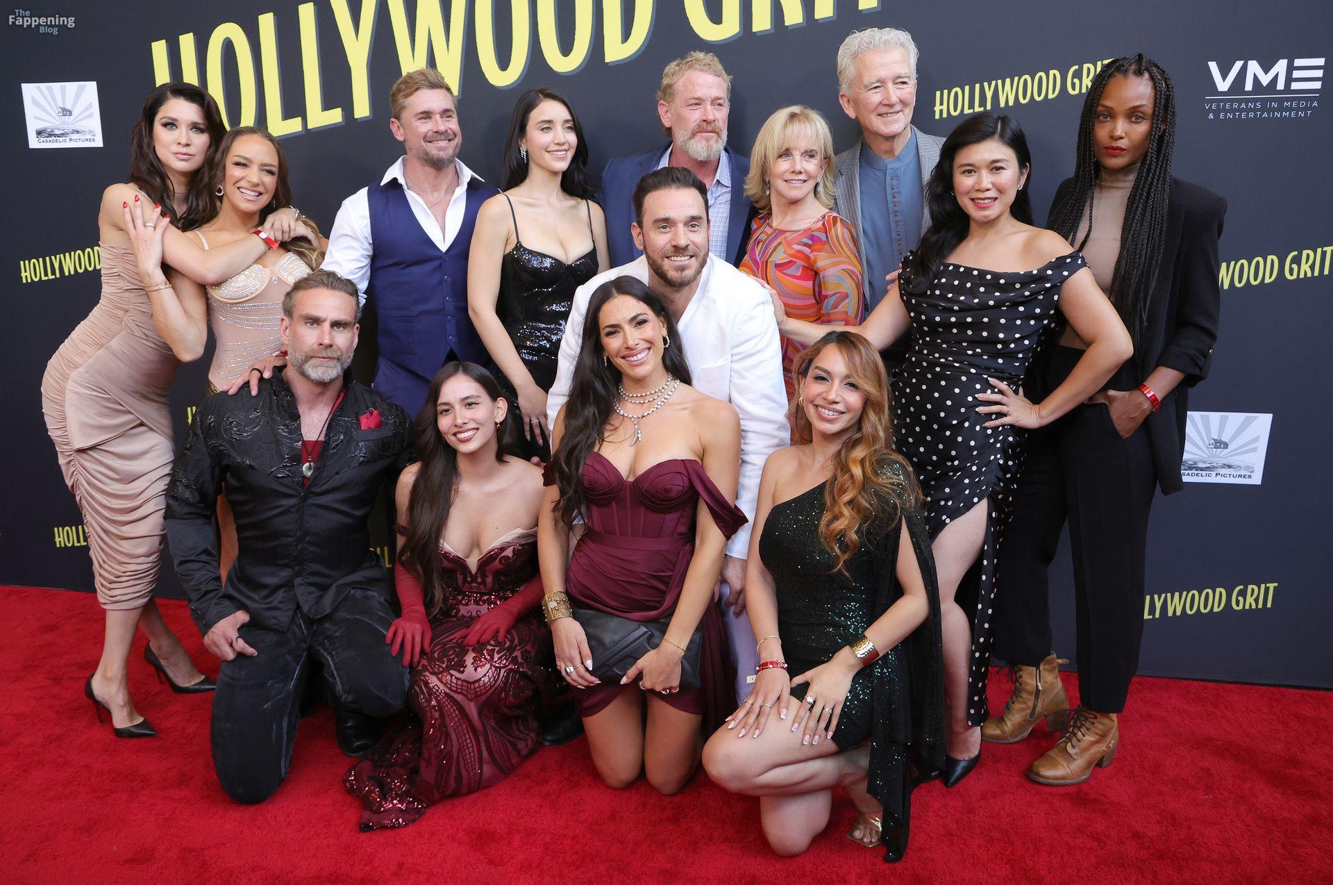Atriz e modelo Caylee Cowan comparece à premiere de “Hollywood Grit”, arrasando com um vestido preto de paetês que destacava seu decote.
