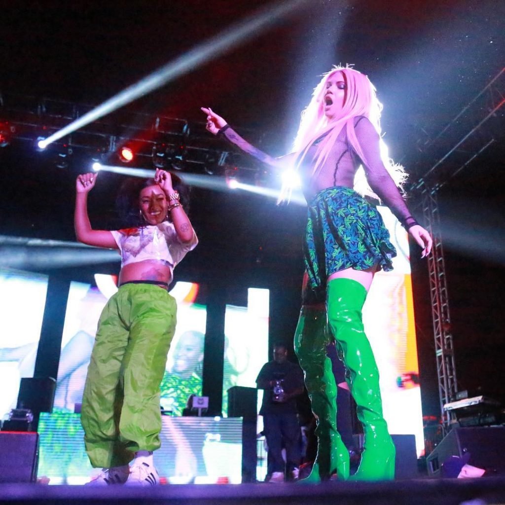 Cantora Chanel West Coast (29) se apresenta com uma blusa de malha transparente na Blazers Cup em San Bernardino, 03/12/2017.