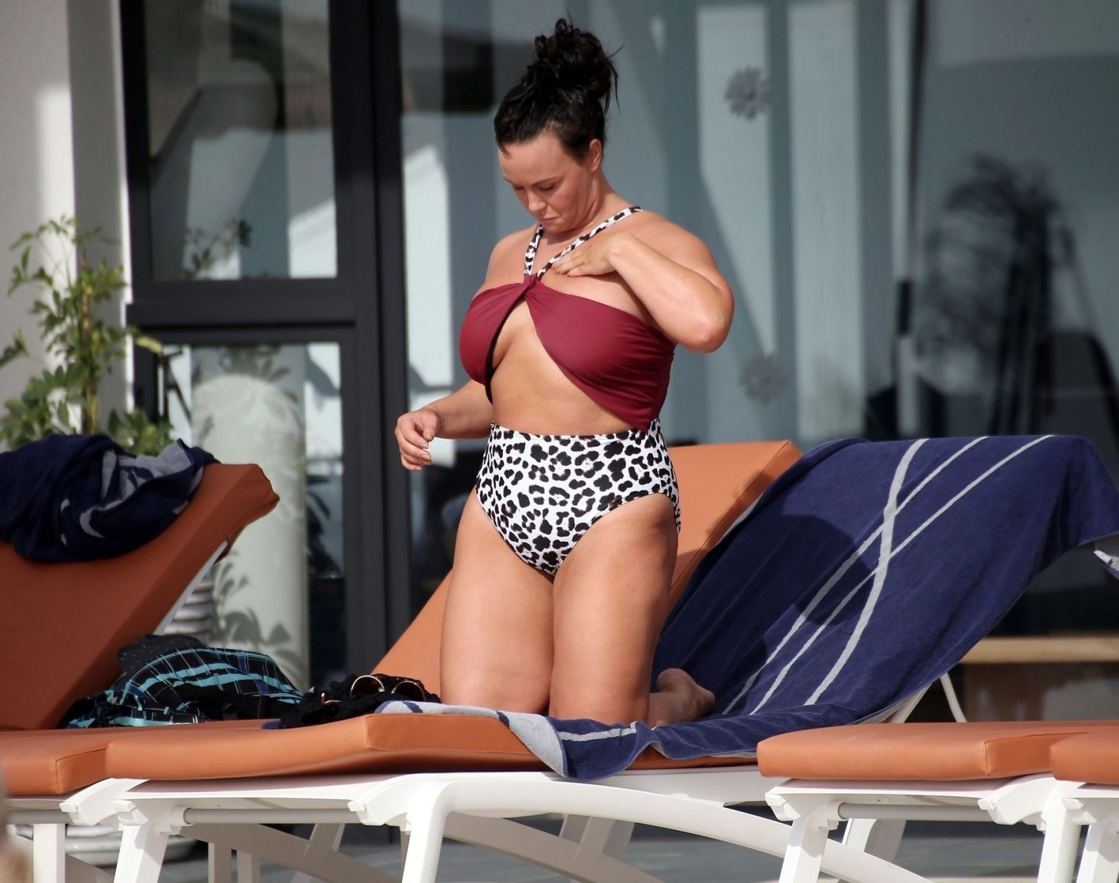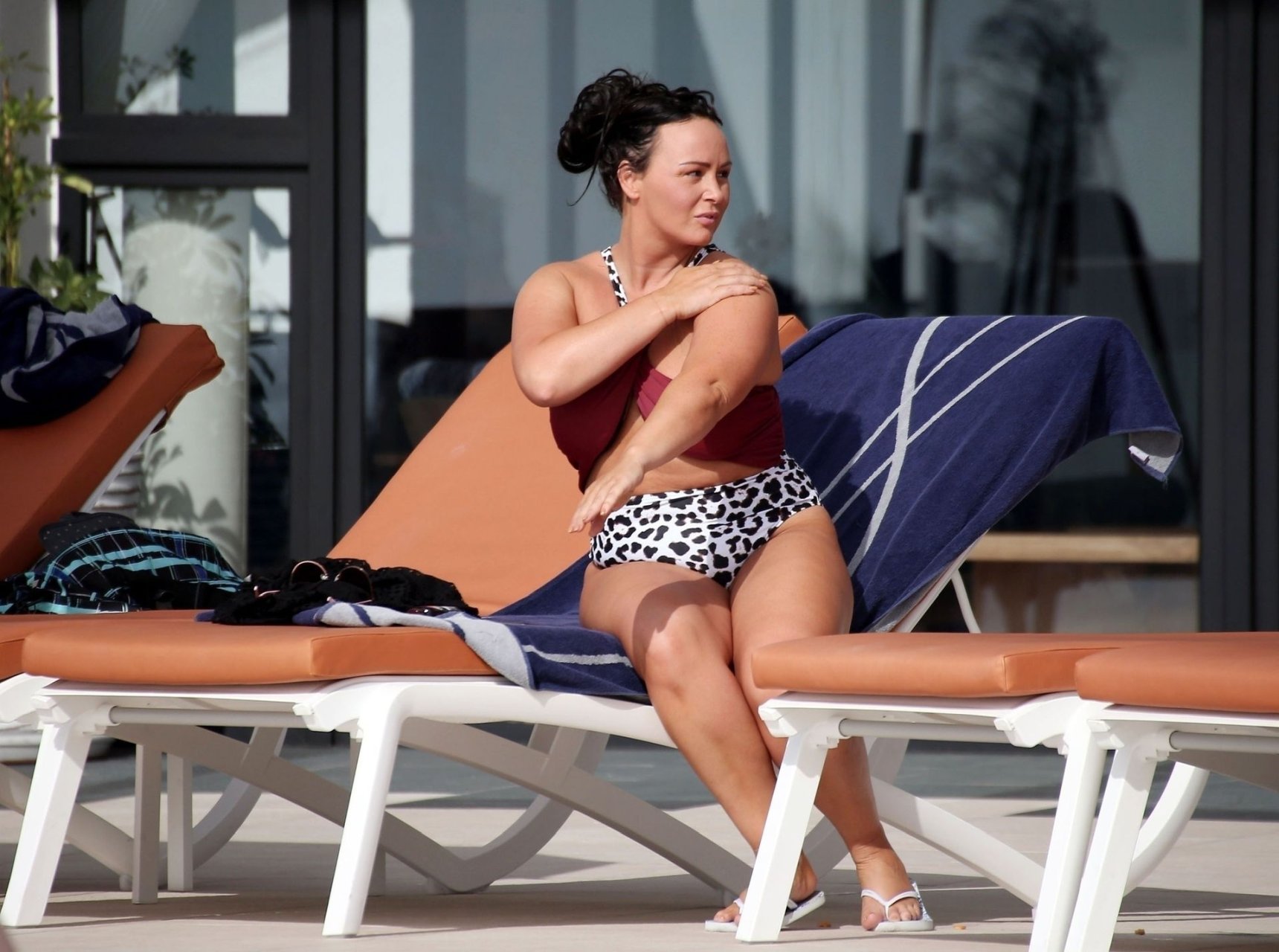 "Chanelle estava ótima à beira da piscina, tomando alguns drinques de biquíni." Quem escreve essa merda? Deve ser cego. Ela está apenas um pouco menos gorda, mais foca que morsa.