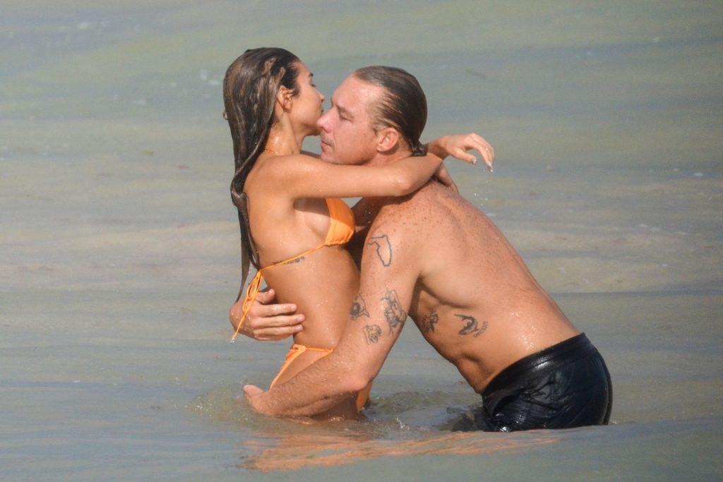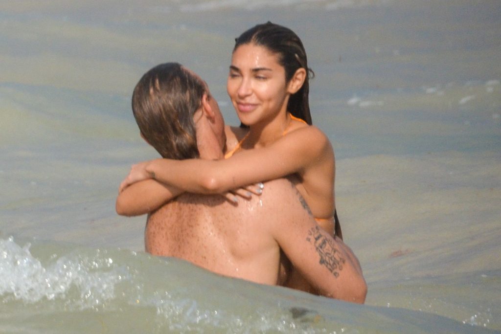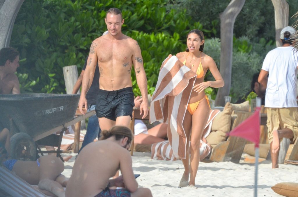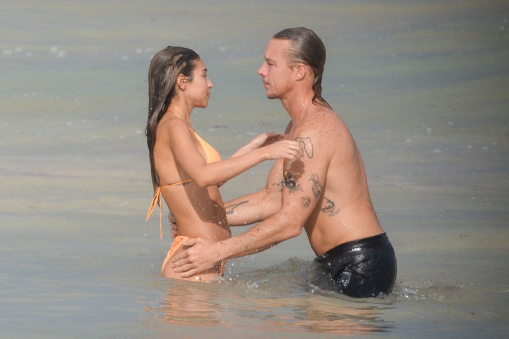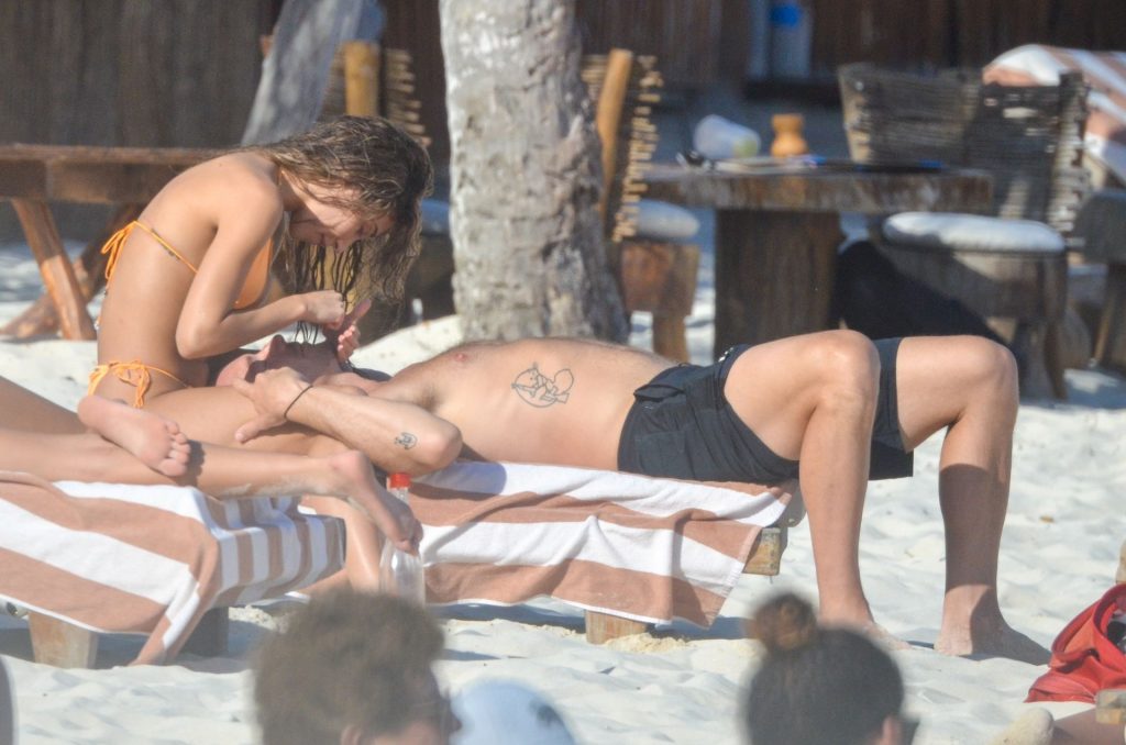 A estrela do Fappening Chantel Jeffries e o DJ Diplo não conseguiam tirar as mãos um do outro enquanto aproveitavam o sol com amigos em Tulum, 01/02/2020.