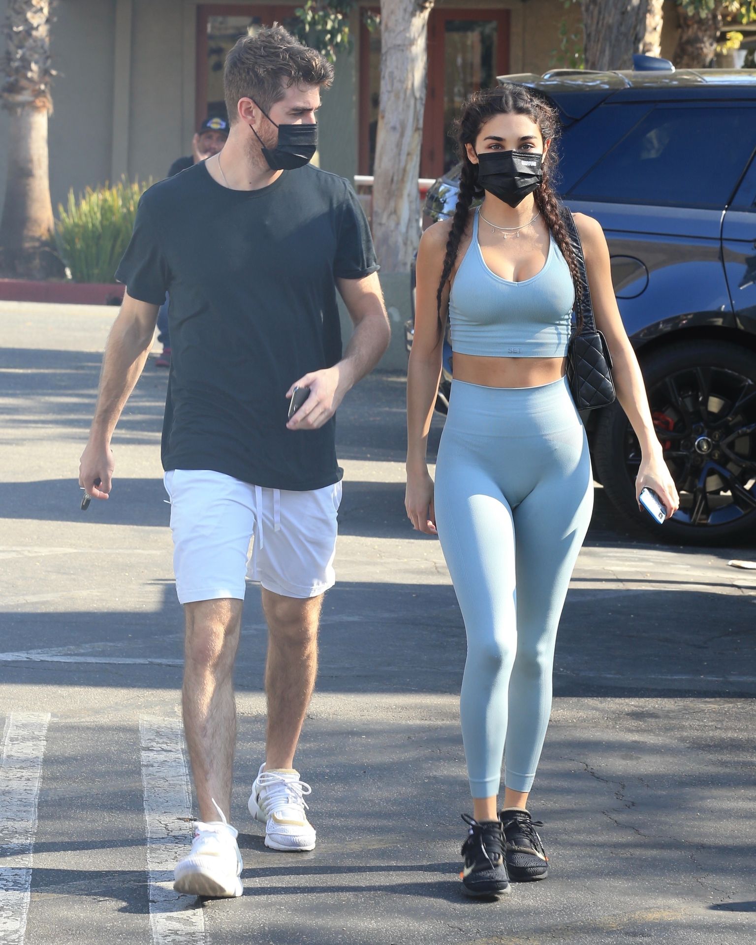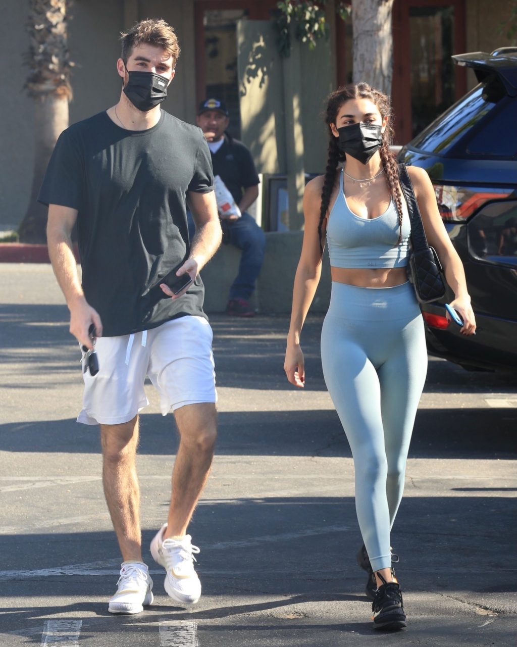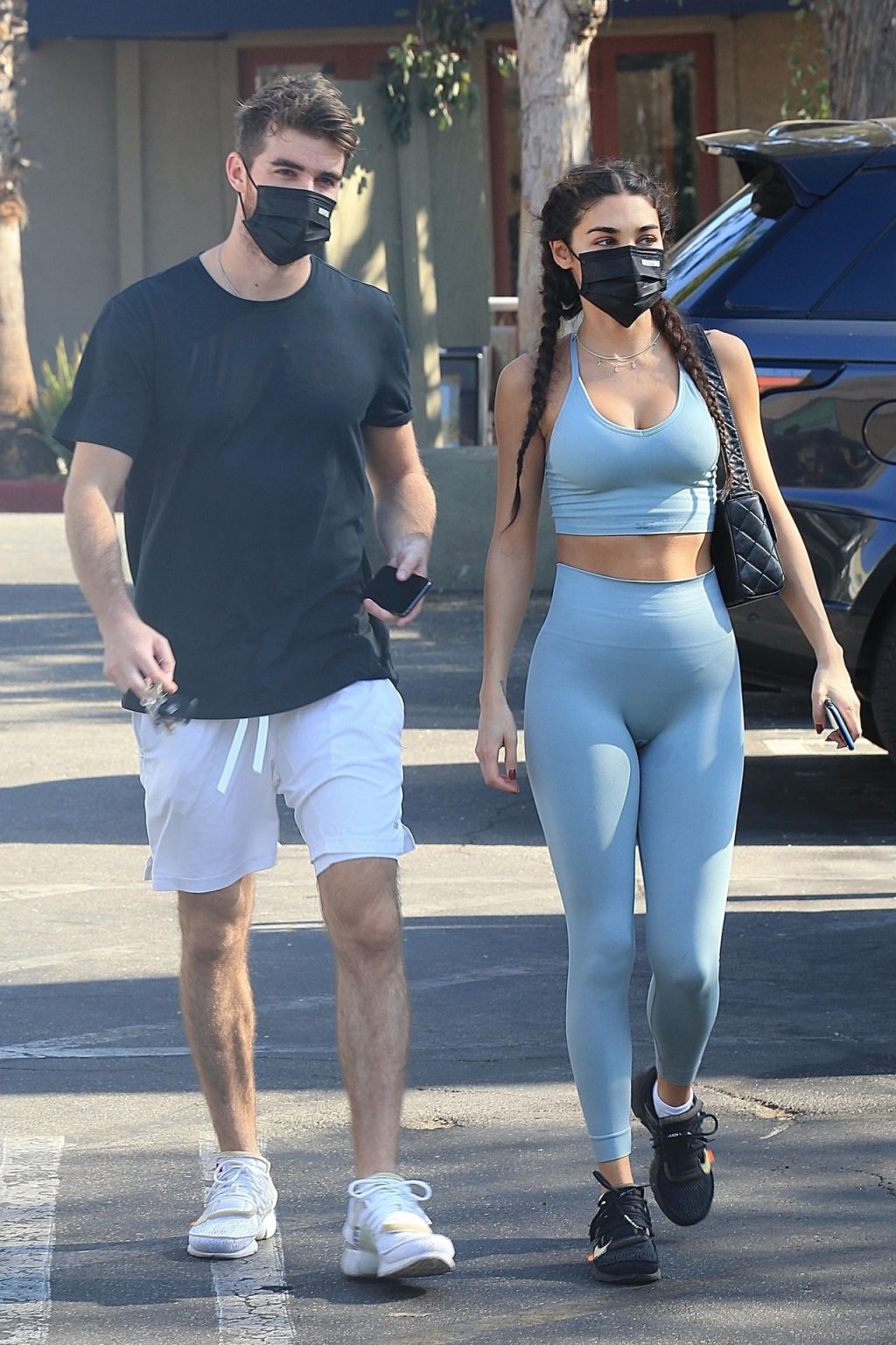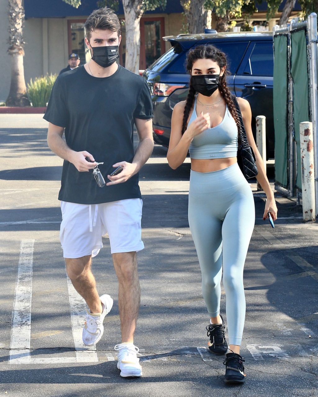 A estrela de The Fappening Chantel Jeffries e o namorado Andrew Taggart chegam para seu treino matinal na DogPound Gym em West Hollywood, 18/11/2020.