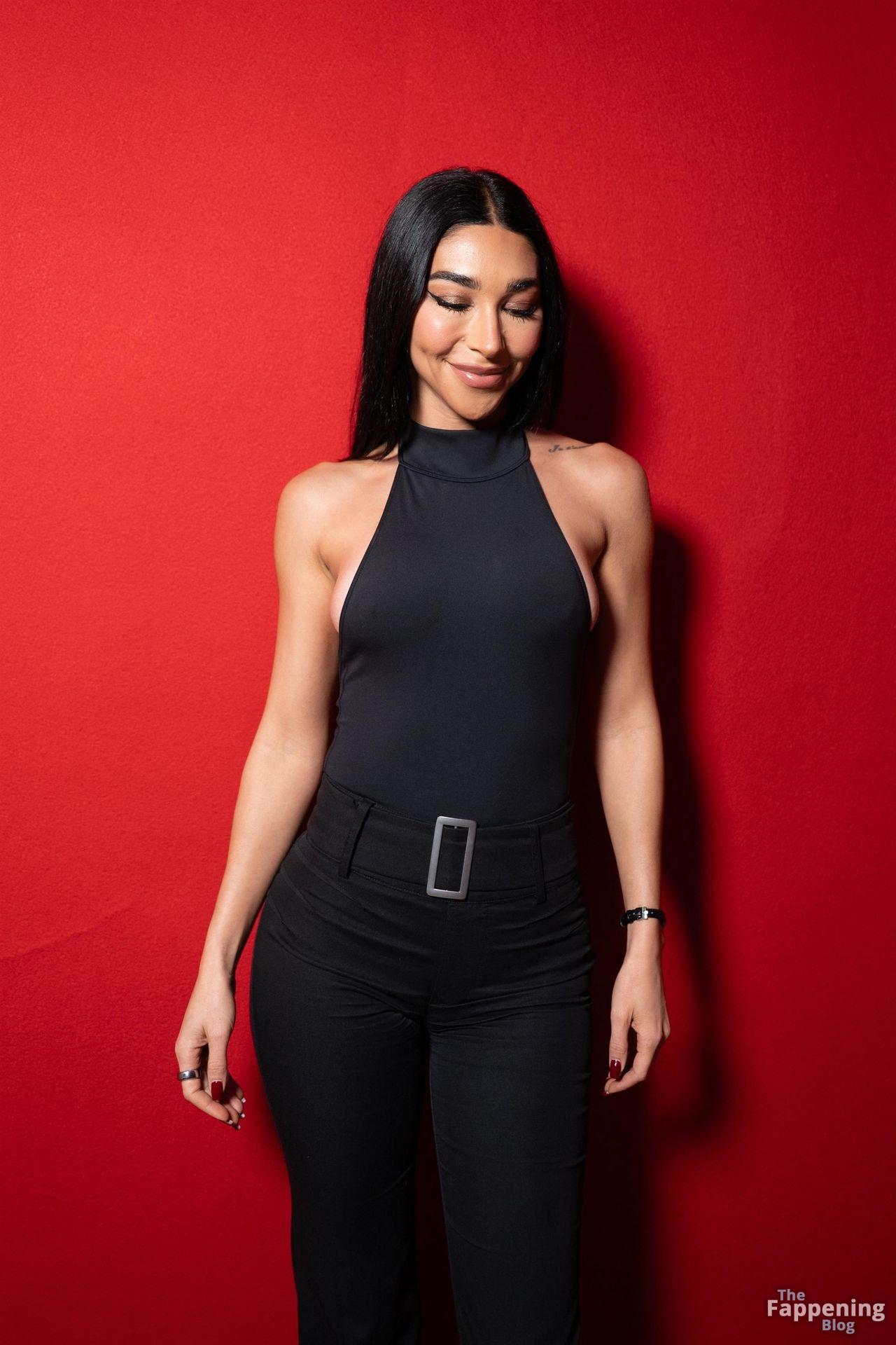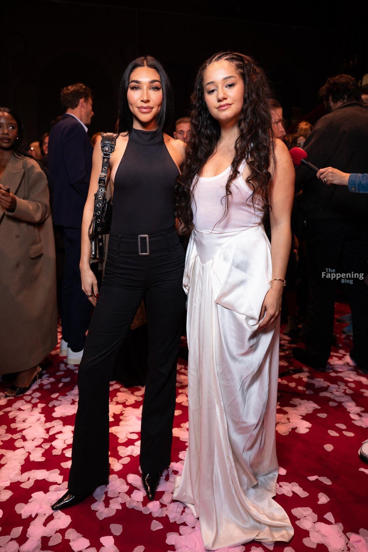 Chantel Jeffries quase deixou seu body escapar no desfile Etam Paris 2025 no Palais Brongniart em Paris, mostrando o sideboob e um bumbum apertado.
