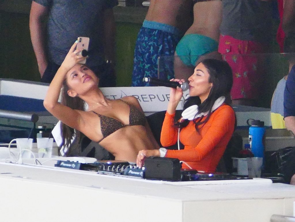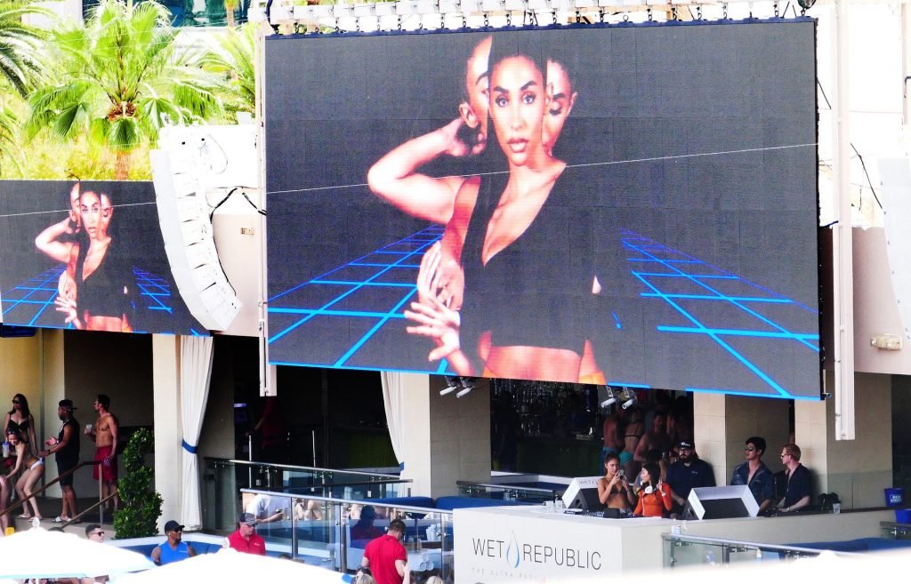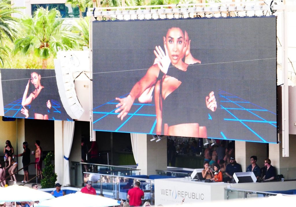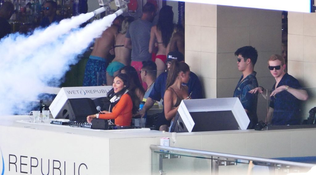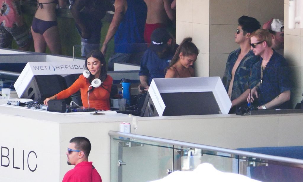 As garotas estavam se divertindo com o ator sob o sol quente enquanto a multidão enlouquecia, e Chantel conversava com o grupo de festeiros dentro da piscina da festa na Sin City.
