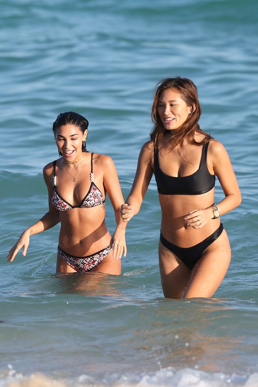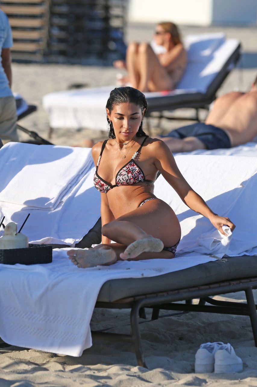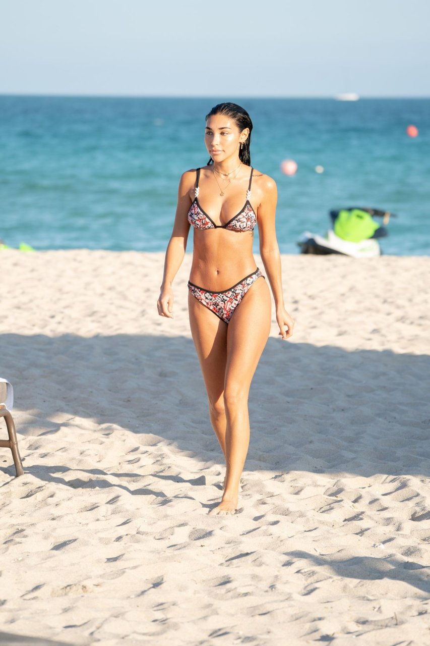 Chantel Jeffries exibe seu corpo tonificado de biquíni enquanto aproveita um dia de praia com amigos em Miami, 12/05/2018. Chantel está ótima em um biquíni minúsculo da Louis Vuitton enquanto aproveita o sol e o mar.