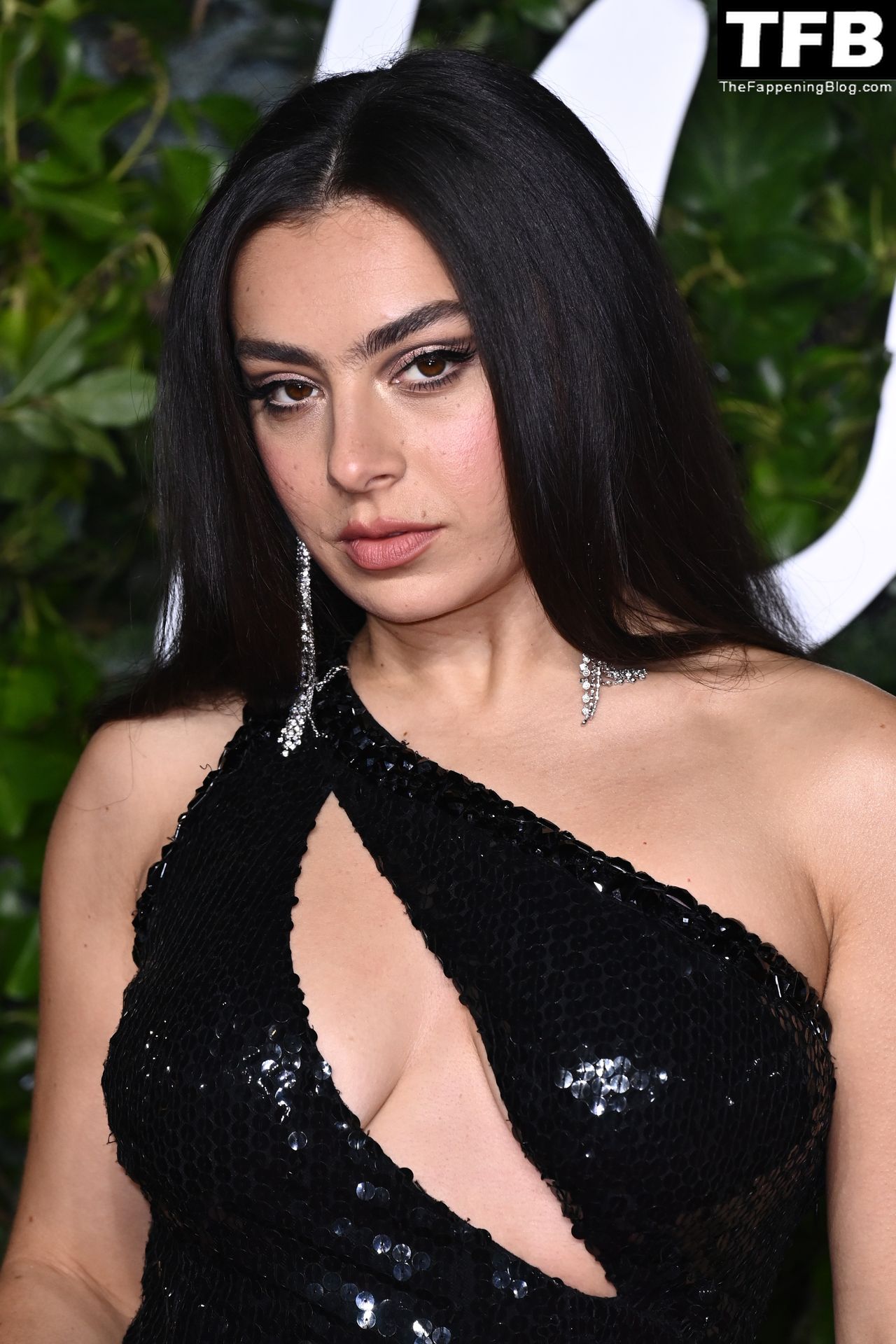 Cantora Charli XCX é fotografada com um elegante vestido preto chegando ao The Fashion Awards em Londres, 29/11/2021.