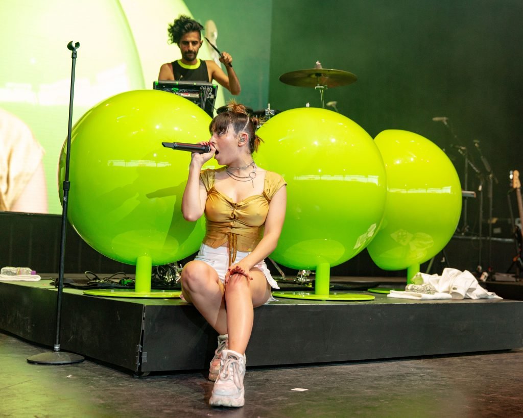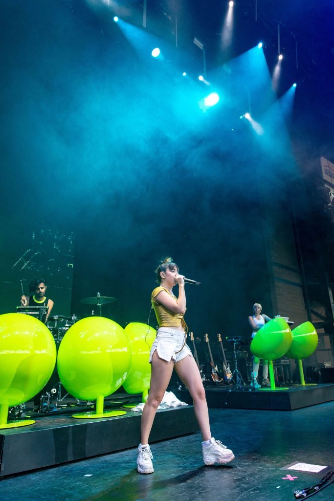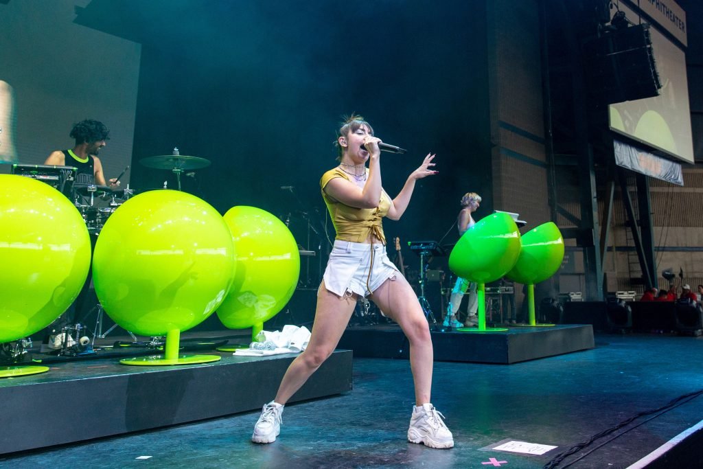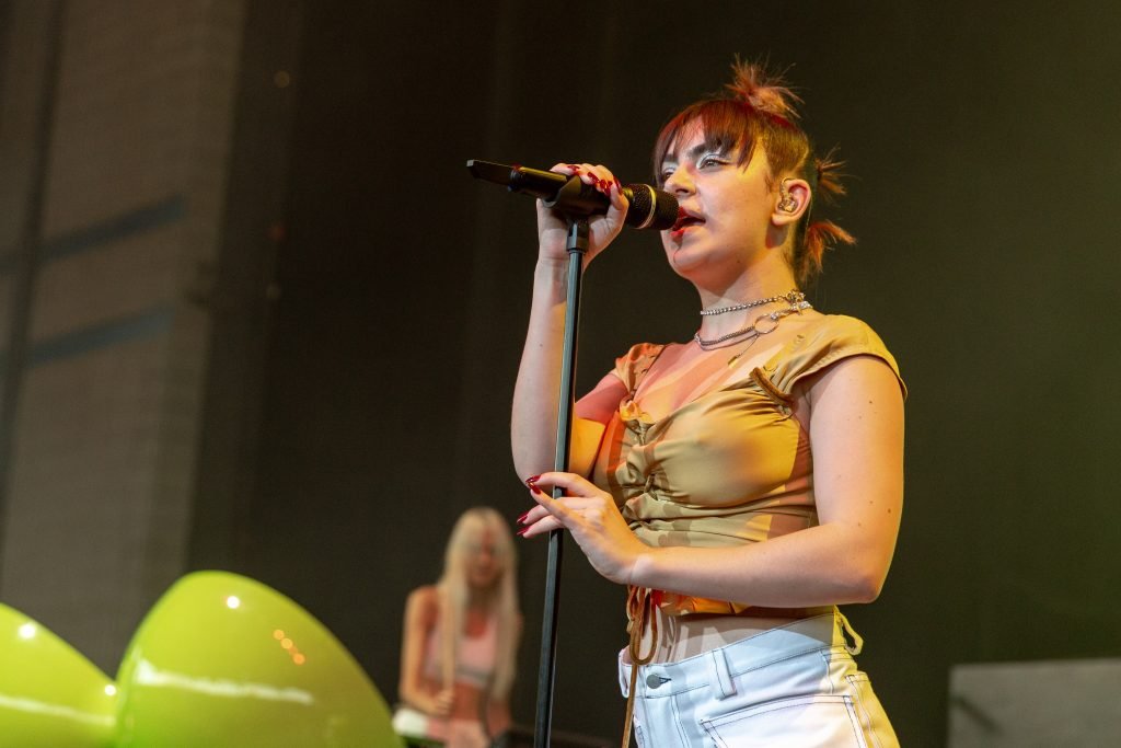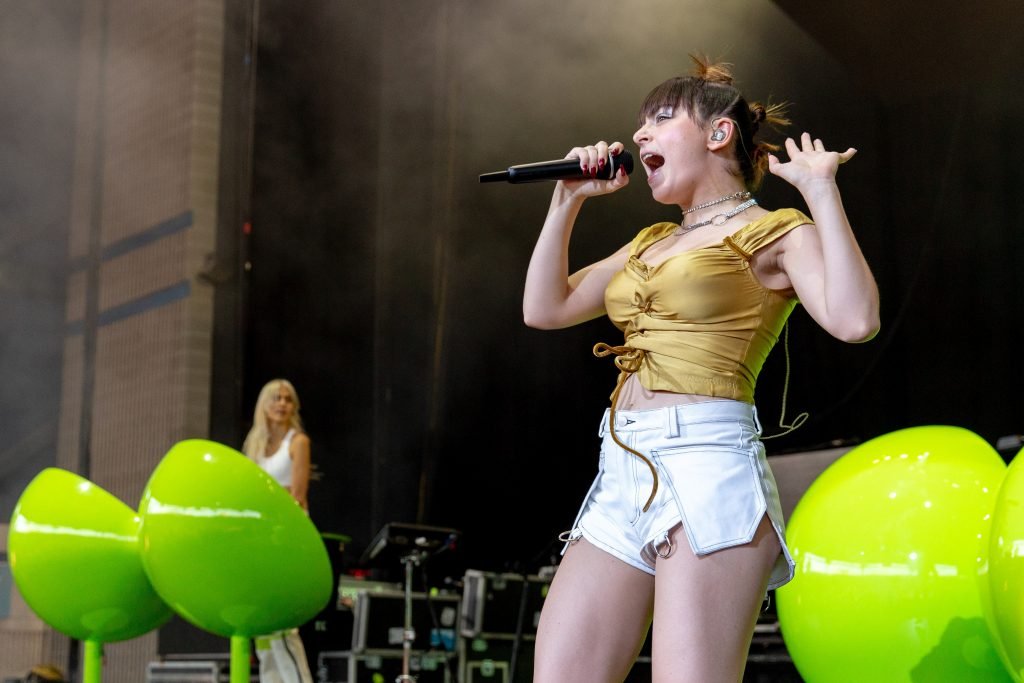 A cantora Charli XCX se apresentou durante o Summerfest Music Festival no Henry Maier Festival Park em Milwaukee, Wisconsin, em 05/07/2018. Ela usava um top dourado com mamilos visíveis e shorts brancos.