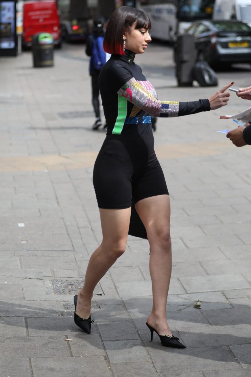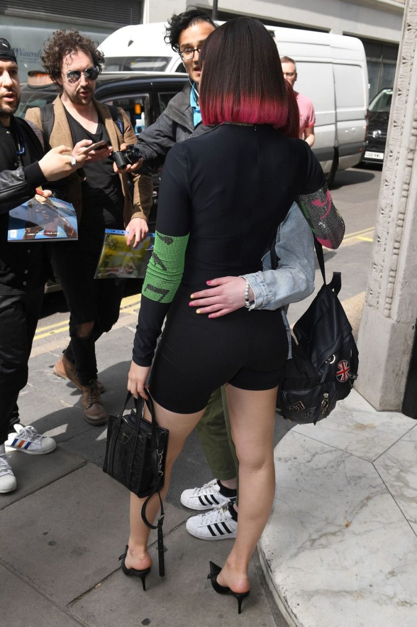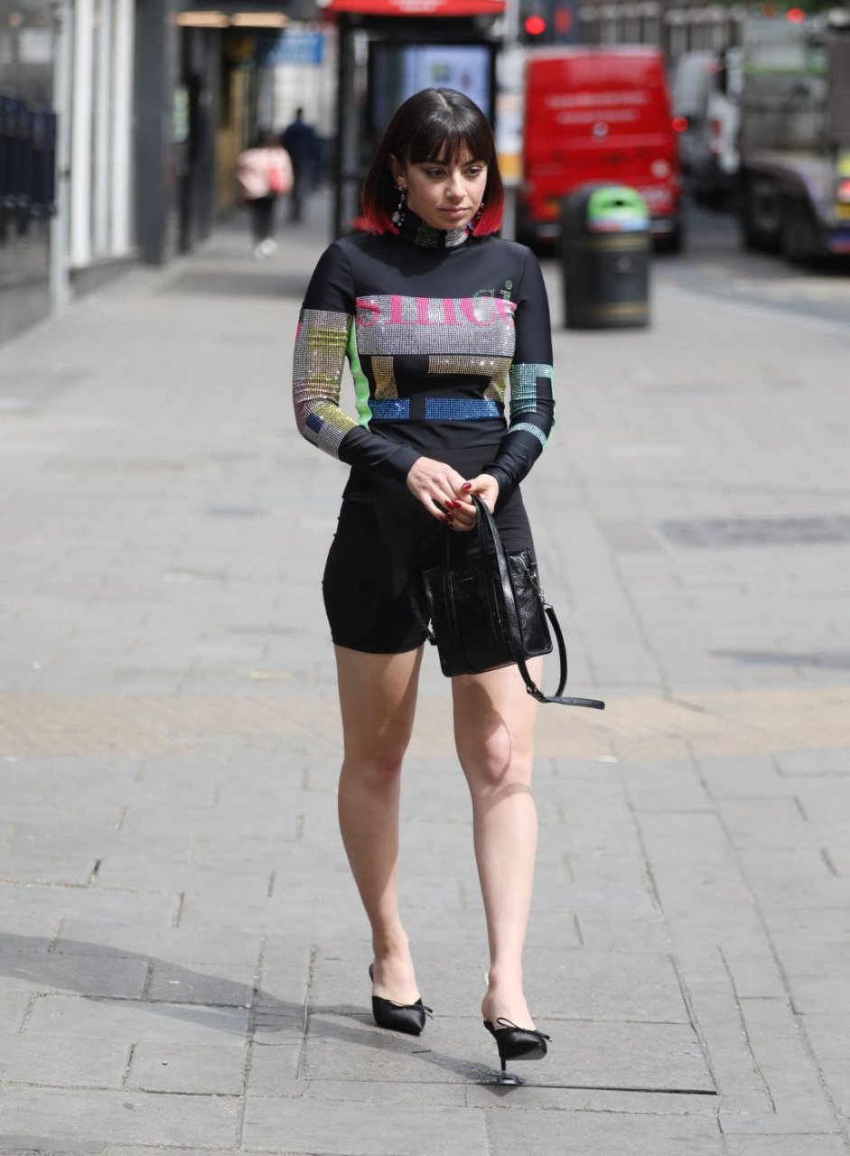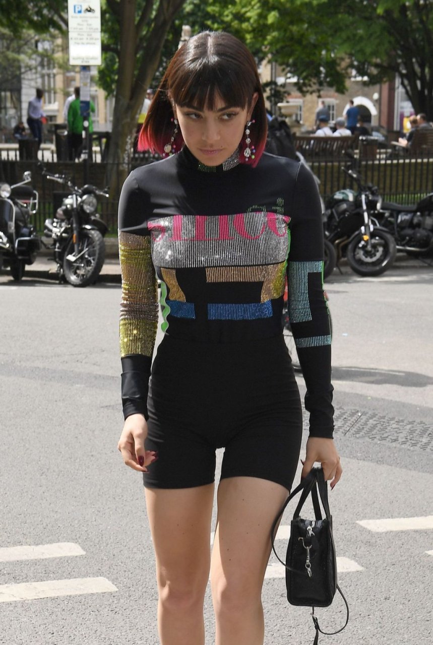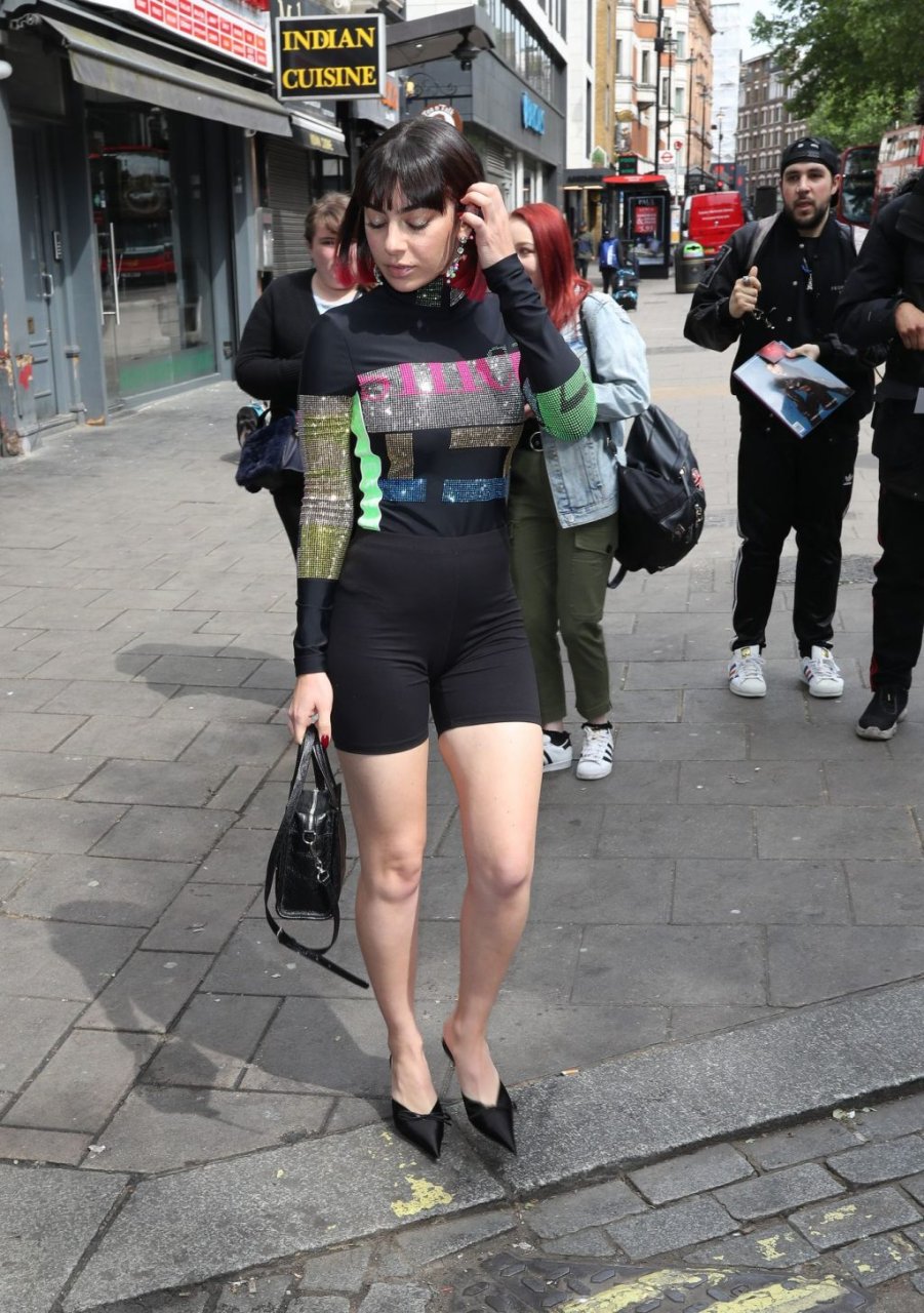 Charli XCX, com pernas longas, foi vista usando um macacão preto justo chegando ao Radio Promo Kiss e Global Radio em Londres, em 22/05/2019. Charlotte Aitchison recentemente promoveu seu álbum “Charli” com uma série de fotos nuas e vídeos dos bastidores. Em suas últimas fotos, a cantora/compositora posou topless.