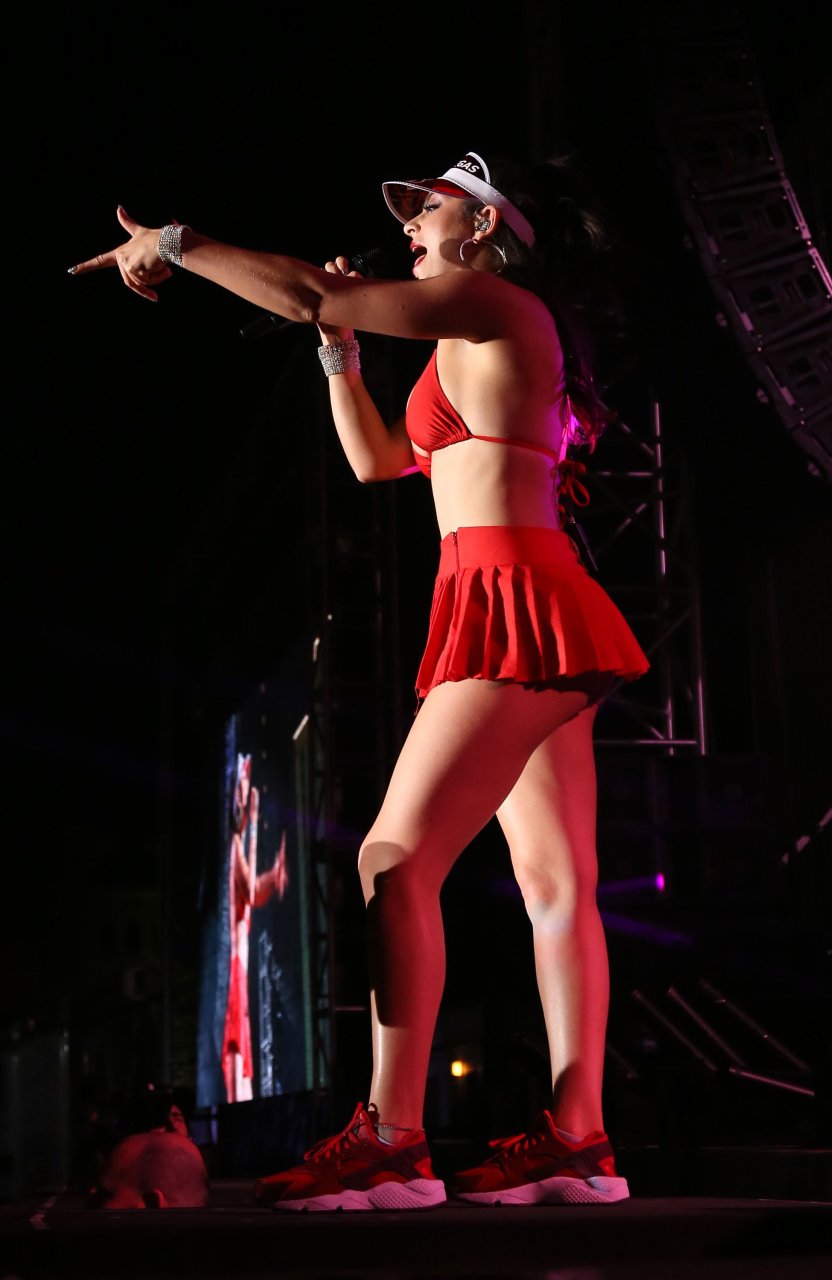 Charli XCX usa top de biquíni vermelho, saia e calcinha rosa enquanto se apresenta no The Downtown Las Vegas Events Center em Las Vegas, 21/10/2016. Ótima cameltoe! Charli XCX é uma cantora e compositora inglesa. Idade: 24 (2 de agosto de 1992).