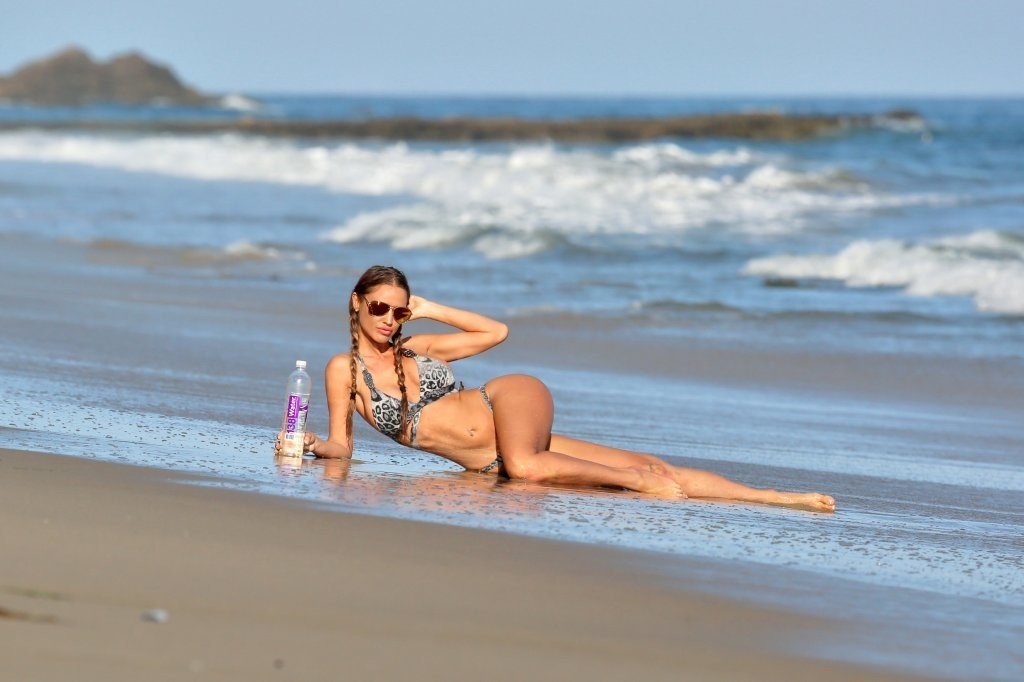 Charlie Riina posa no set de uma sessão de fotos na praia 138 Water em Malibu, 19/09/2016. Charlie Riina é uma modelo canadense e Playmate internacional da Playboy. Idade: 32 (4 de janeiro de 1984)