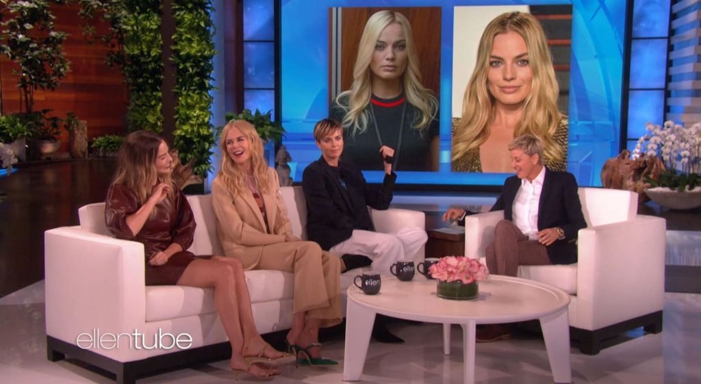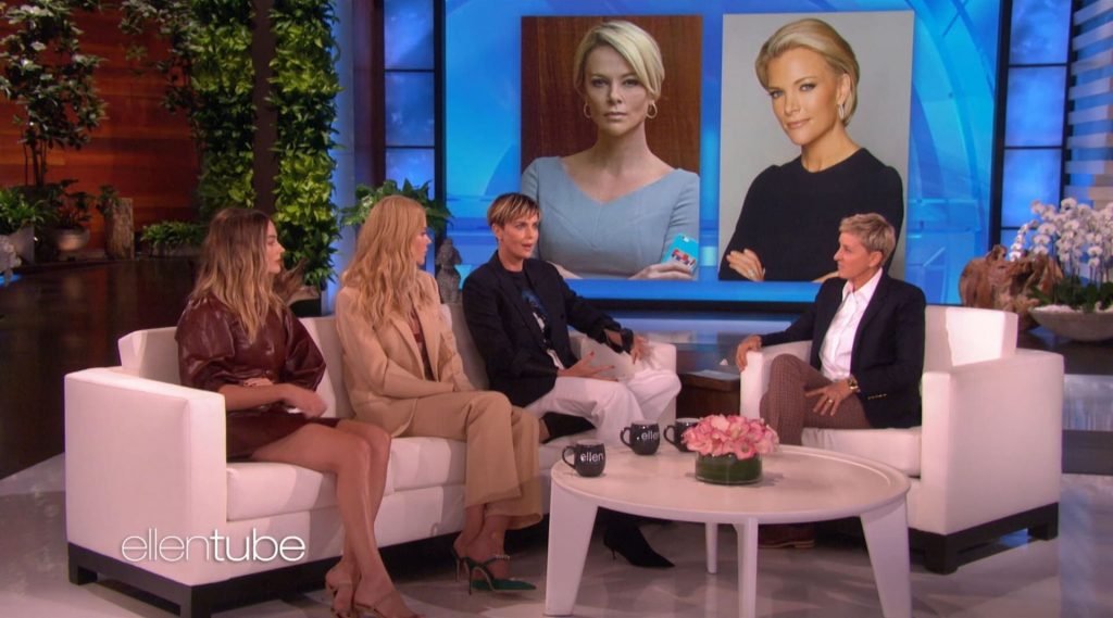 O trio apareceu junto no The Ellen Show, e Theron falou sobre como soube que o projeto era ‘muito especial’. “Foi um roteiro que foi enviado para a minha empresa para possivelmente produzir e talvez para eu trabalhar como atriz”, disse ela a Ellen. “Todos na minha empresa sabiam que isso era um presente incrível porque Charles Randolph escreveu um roteiro incrivelmente poderoso.” Sobre suas colegas de elenco Robbie e Kidman, Theron elogiou: “A experiência foi, literalmente, um sonho realizado para mim.