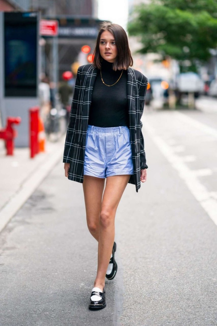 Por que ela está usando a cueca de algum cara? Será que ela derramou algo nela mesma e as cuecas boxers dele eram tudo o que ela tinha à mão? "Ah não, malditos molhos de burrito líquidos. Bem, é melhor eu ir às apostas antes da corrida começar! Vou rapidamente pegar emprestada a cueca desse cara." Muito bonita, e corajosa.