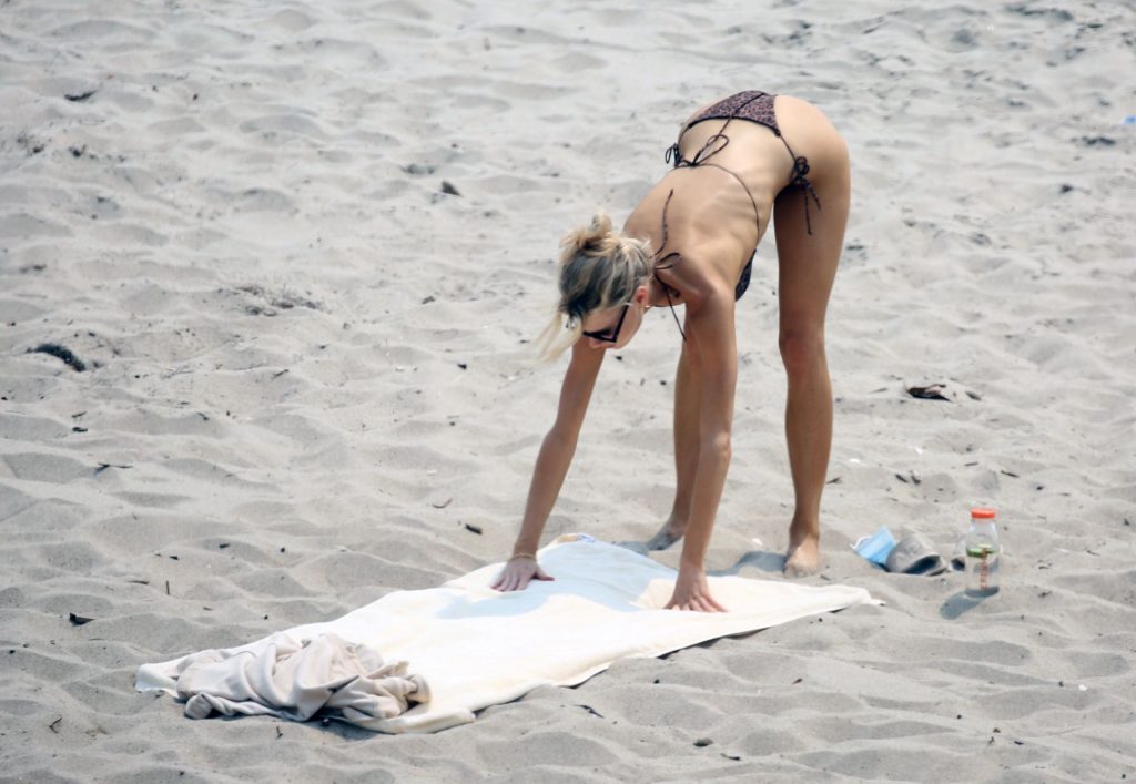 Charlotte McKinney vai à praia em Malibu, 09/08/2020. A modelo de 26 anos, que virou atriz, usou um biquíni minúsculo com estampa de oncinha. McKinney celebrou o lançamento duplo de dois filmes em que ela estrela esta semana, ‘Guest House’ e ‘The Argument‘.