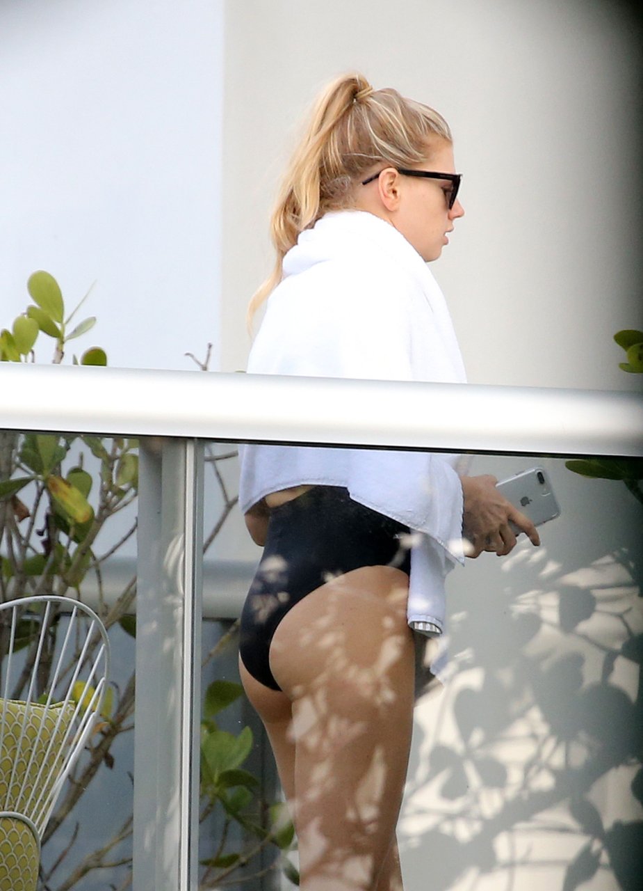 Charlotte McKinney usa um maiô preto enquanto aproveita um dia em Miami, 15/02/2017. Charlotte McKinney é uma modelo, atriz (Literally Right Before Aaron (2017)) da Flórida (EUA). Altura: 171 cm. Idade: 23 – 6 de agosto de 1993.