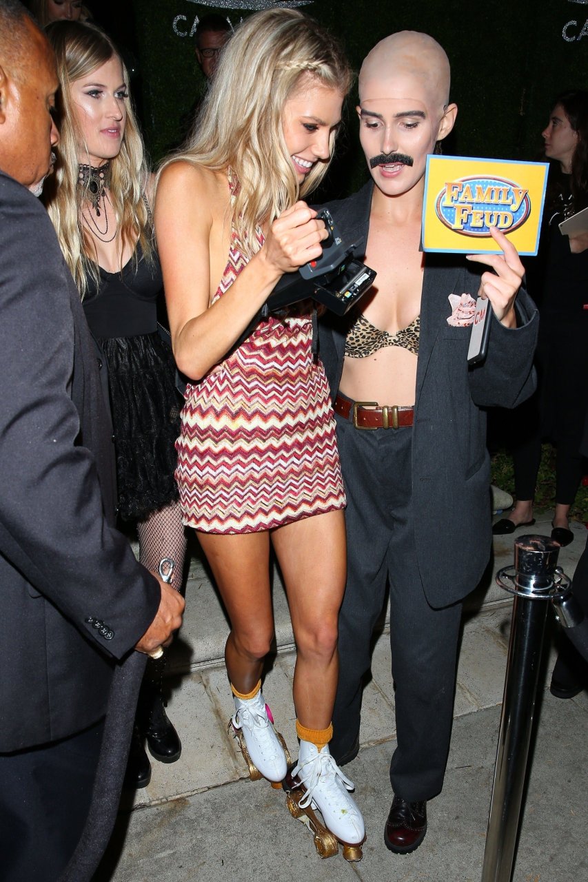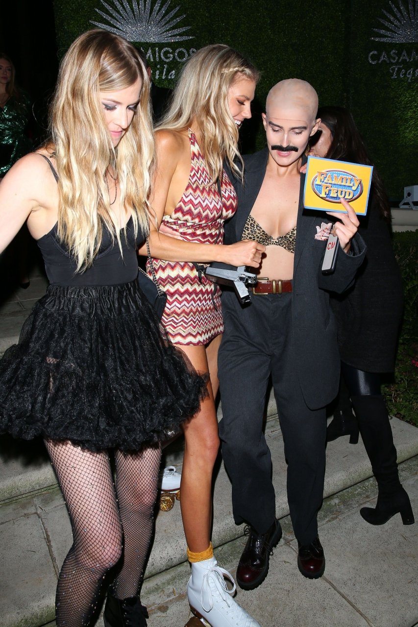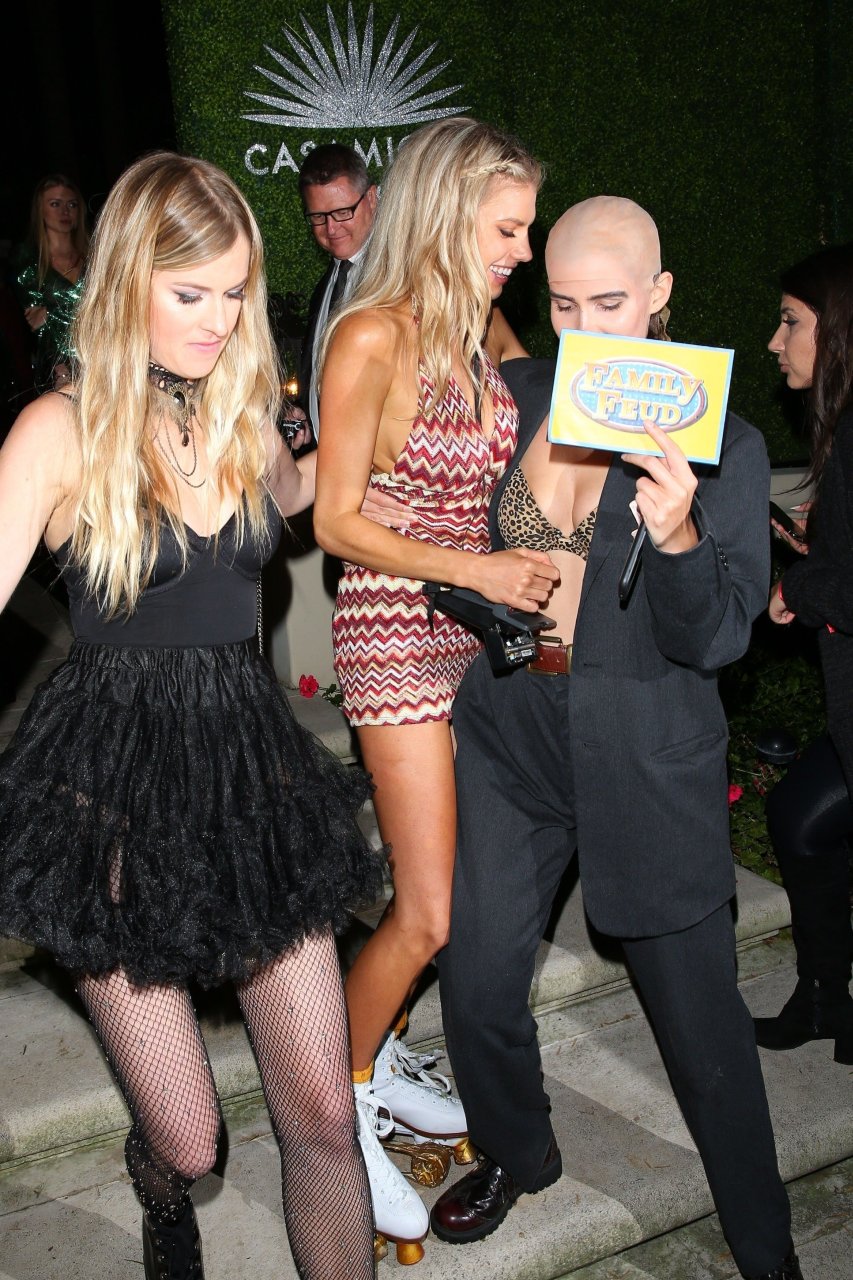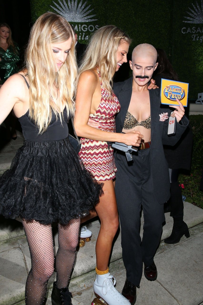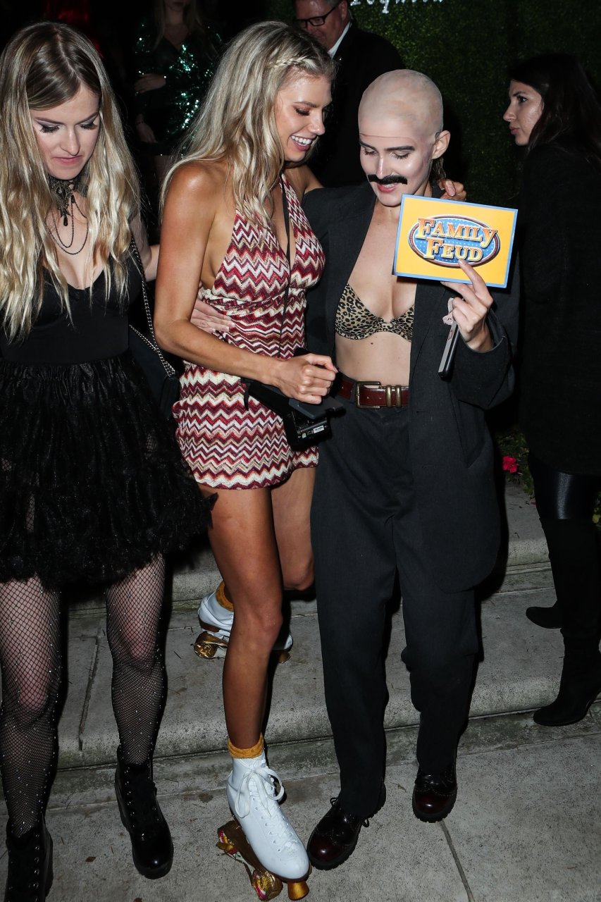Model e atriz Charlotte McKinney mostra sua roupa íntima, bunda, buceta e seios enquanto brinca com as câmeras ao sair como a Roller Girl de Boogie Nights na festa de Halloween da Casamigos em Beverly Hills, 27/10/2018.