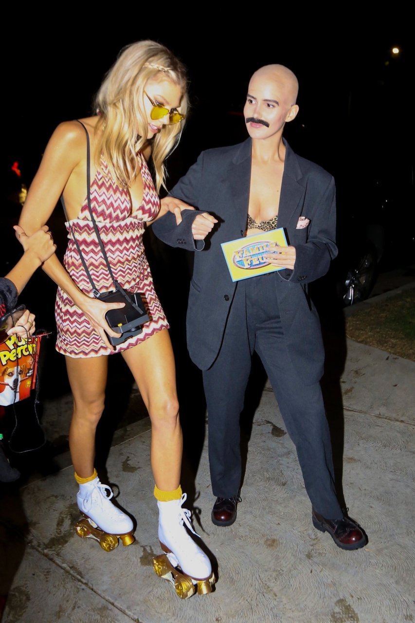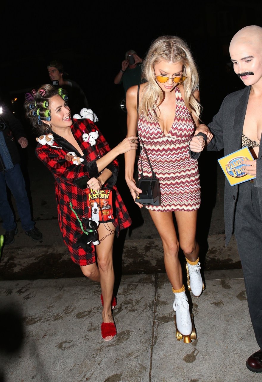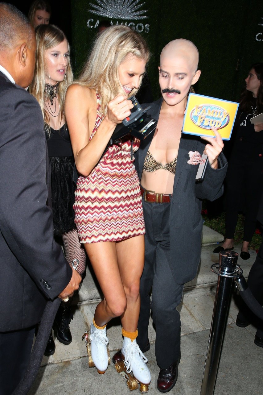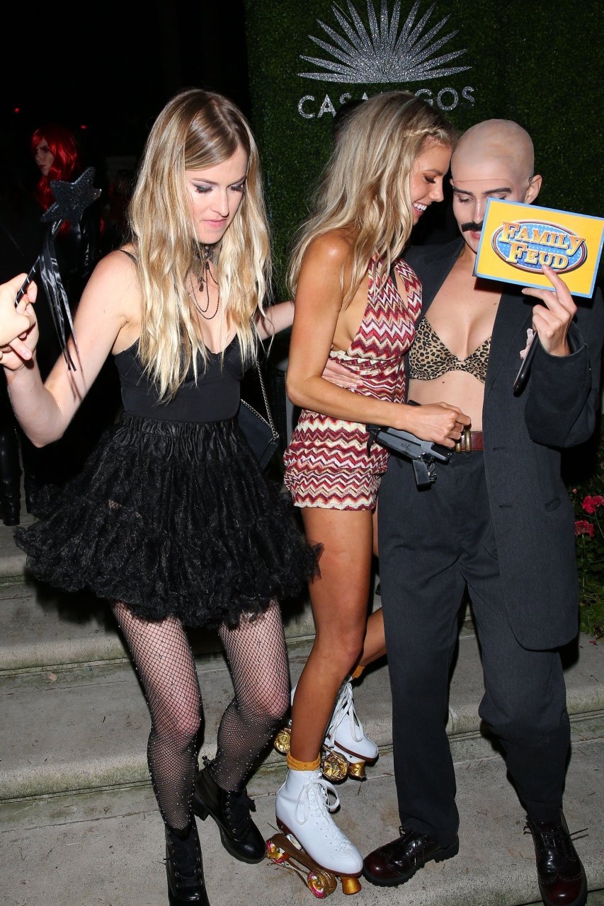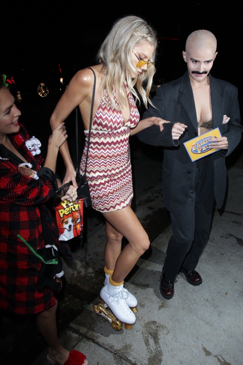 Model e atriz Charlotte McKinney mostra sua roupa íntima, bunda, buceta e seios enquanto brinca com as câmeras ao sair como a Roller Girl de Boogie Nights na festa de Halloween da Casamigos em Beverly Hills, 27/10/2018.
