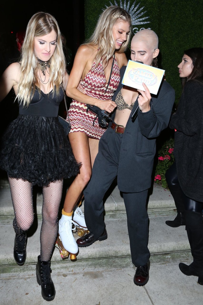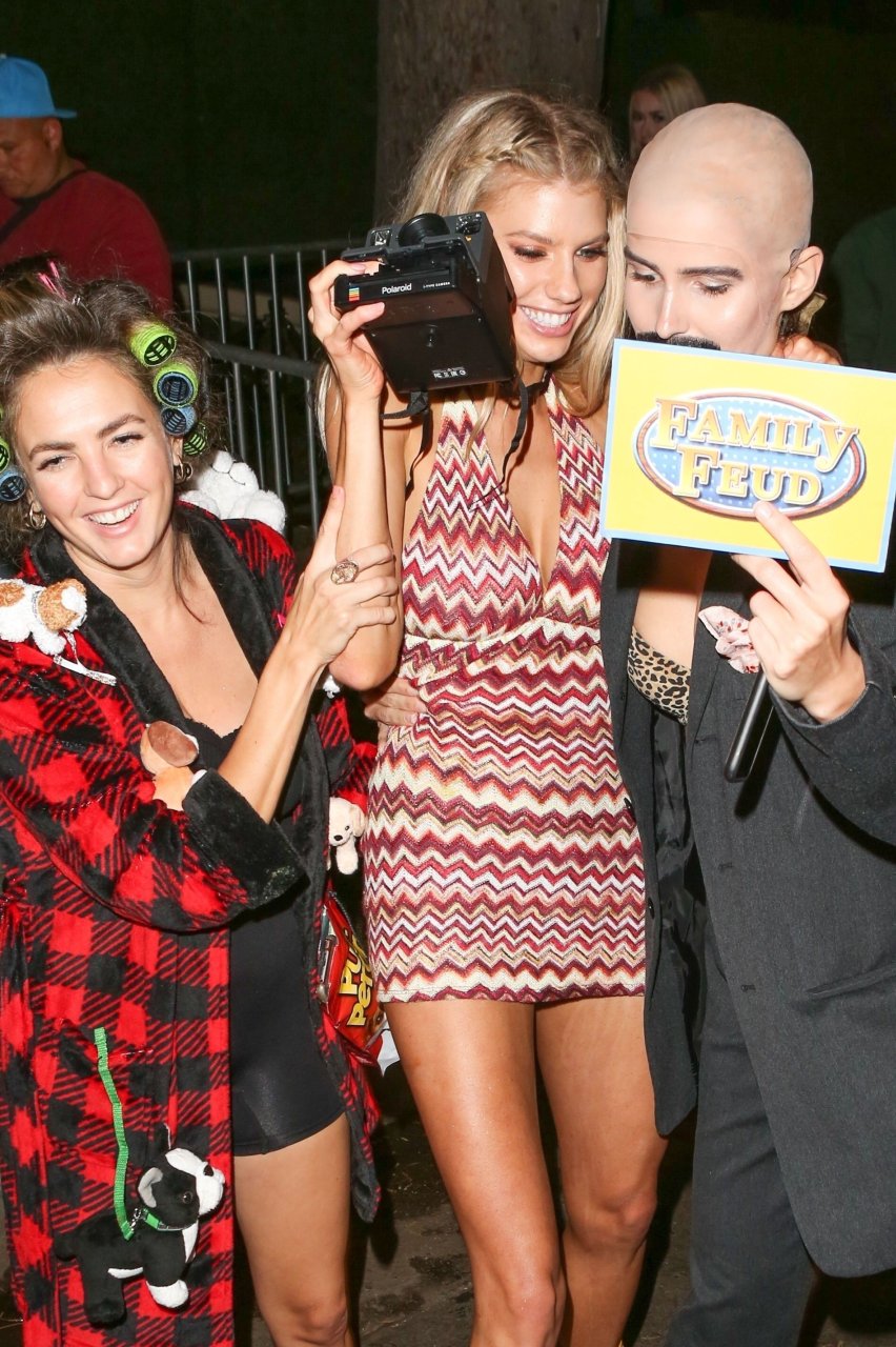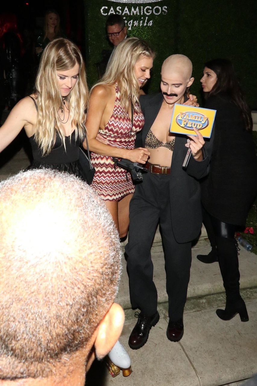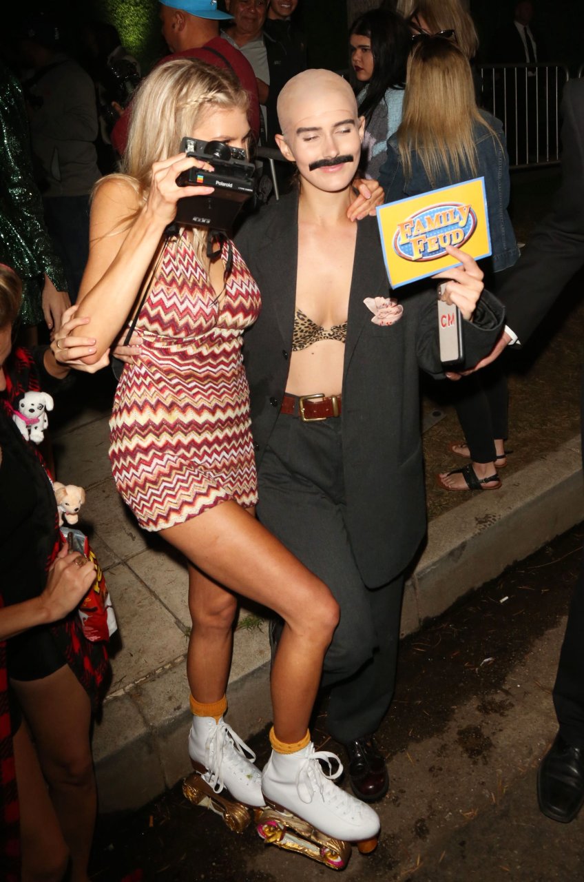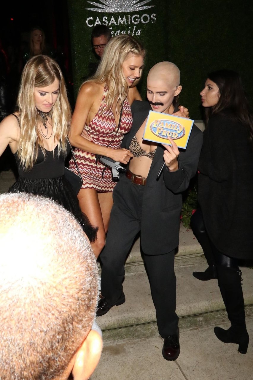 Model e atriz Charlotte McKinney mostra sua roupa íntima, bunda, buceta e seios enquanto brinca com as câmeras ao sair como a Roller Girl de Boogie Nights na festa de Halloween da Casamigos em Beverly Hills, 27/10/2018.