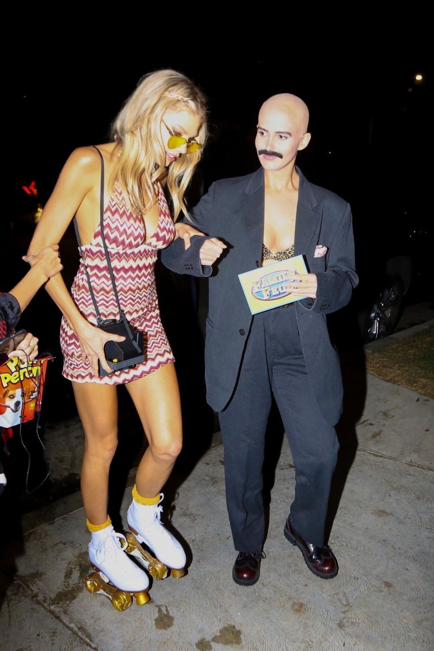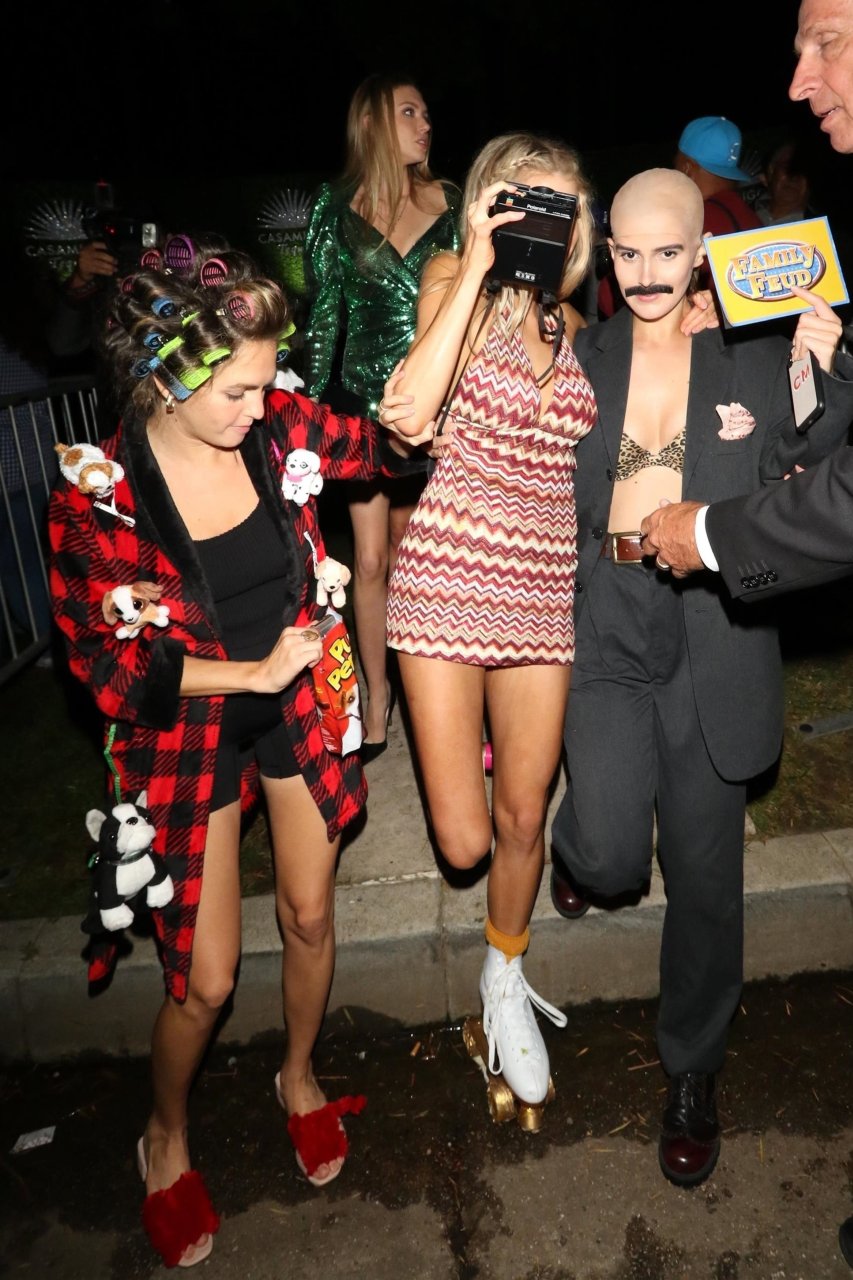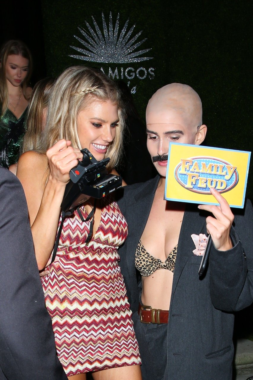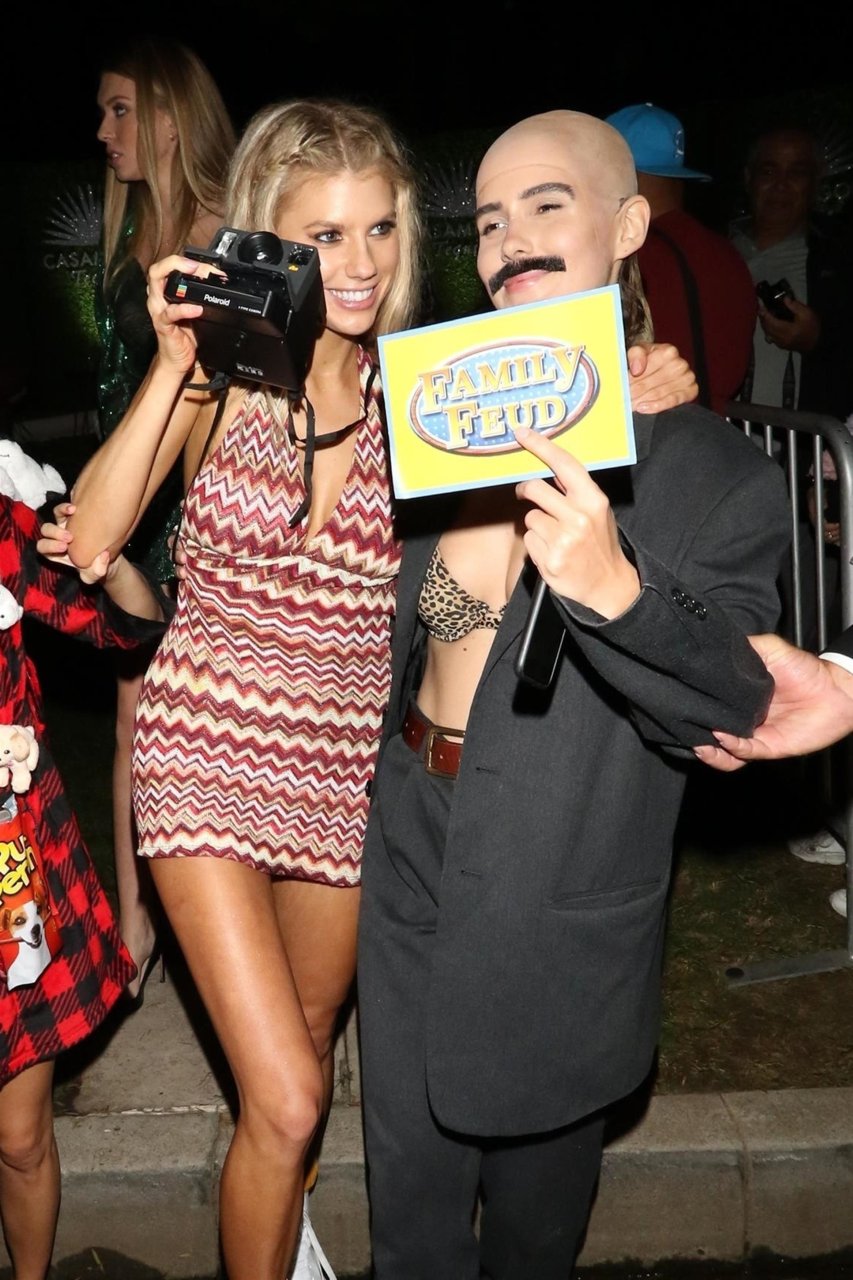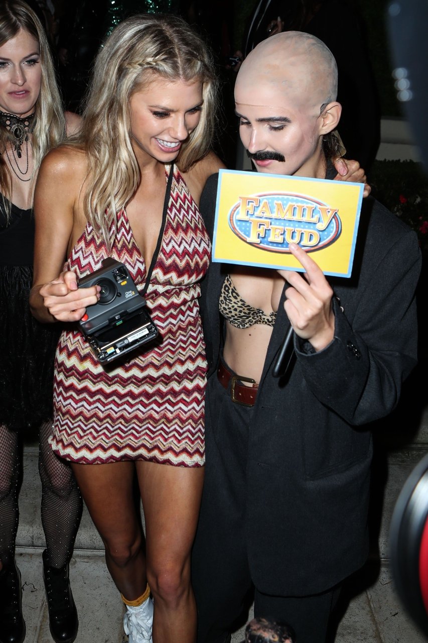 Model e atriz Charlotte McKinney mostra sua roupa íntima, bunda, buceta e seios enquanto brinca com as câmeras ao sair como a Roller Girl de Boogie Nights na festa de Halloween da Casamigos em Beverly Hills, 27/10/2018.