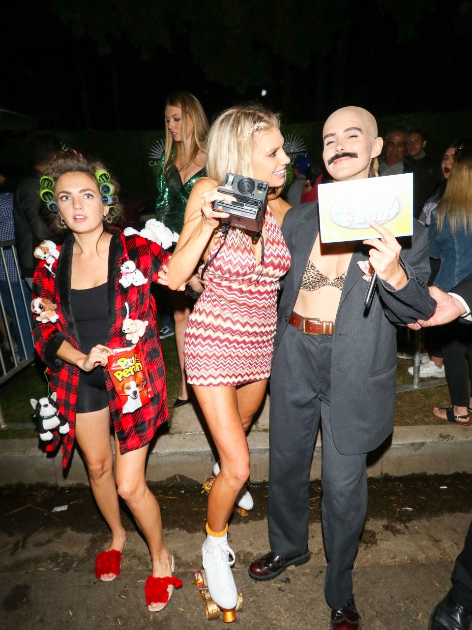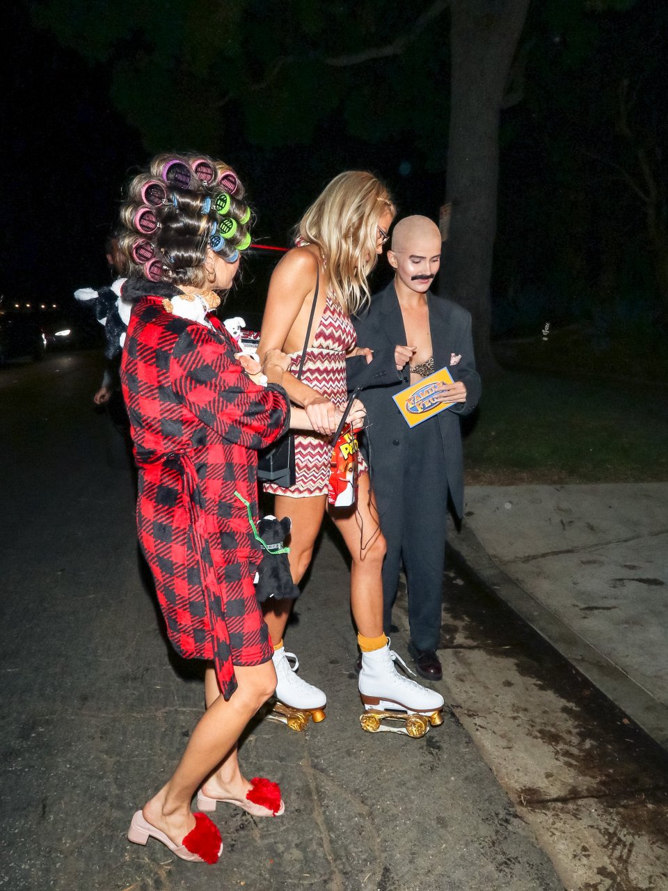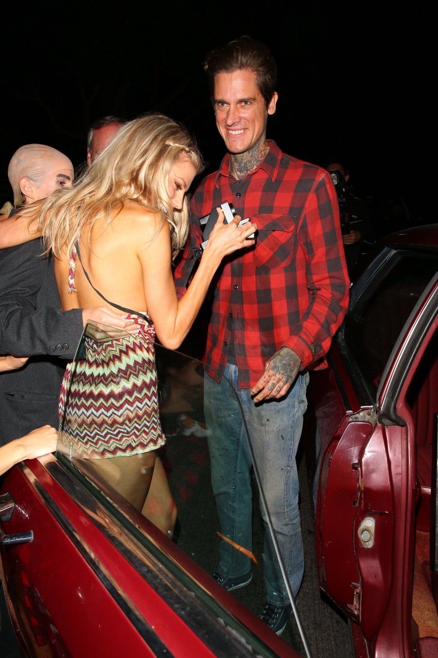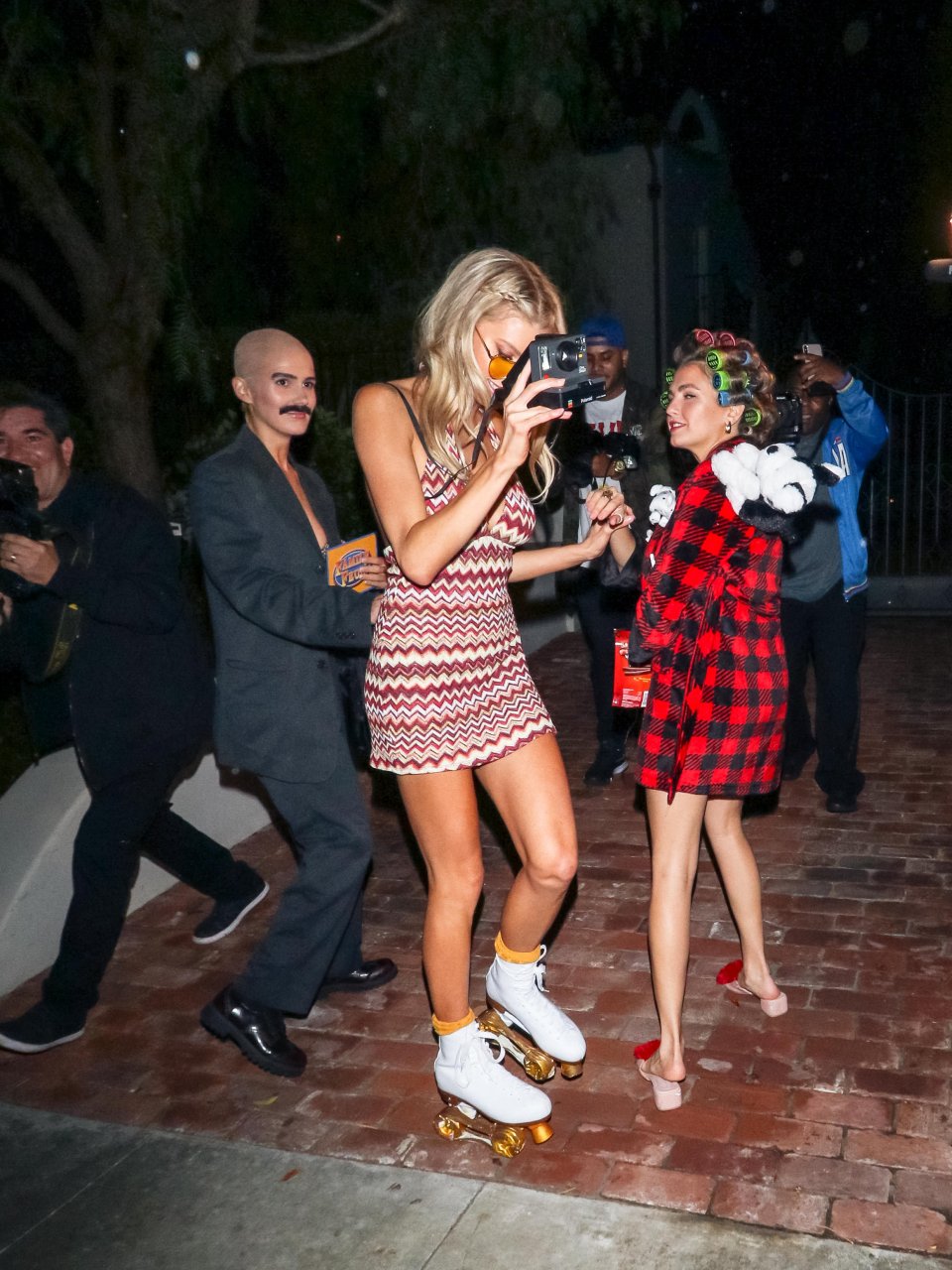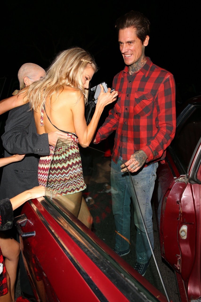 Model e atriz Charlotte McKinney mostra sua roupa íntima, bunda, buceta e seios enquanto brinca com as câmeras ao sair como a Roller Girl de Boogie Nights na festa de Halloween da Casamigos em Beverly Hills, 27/10/2018.