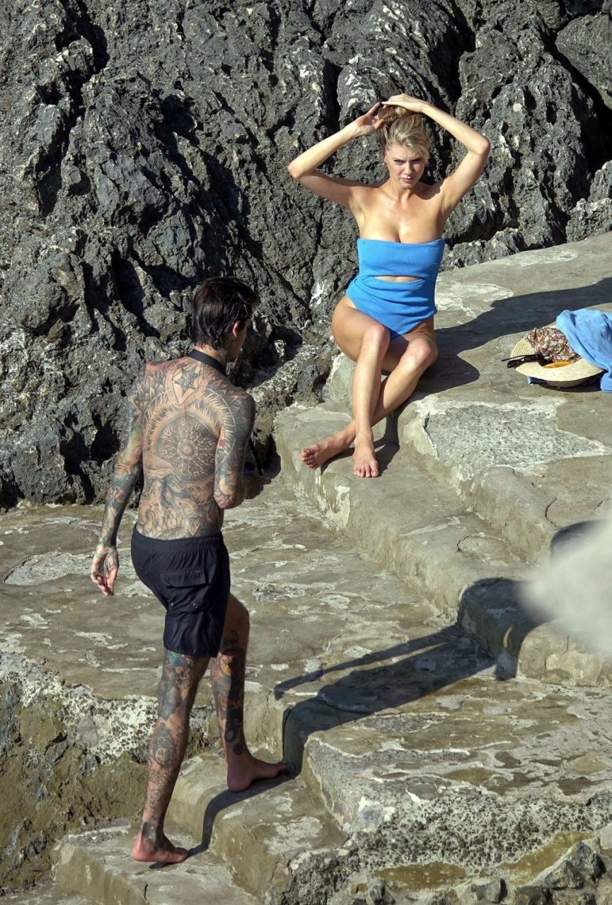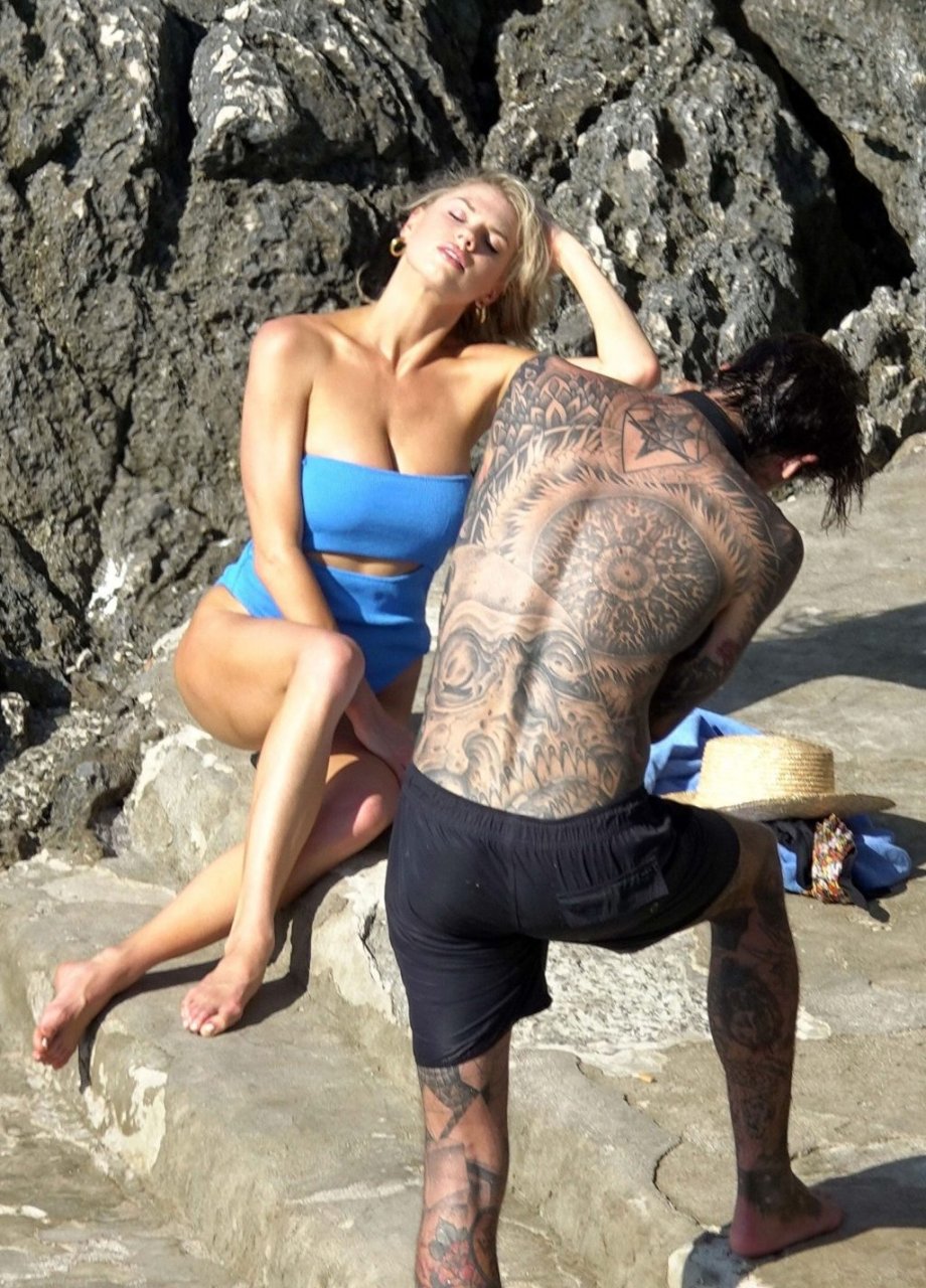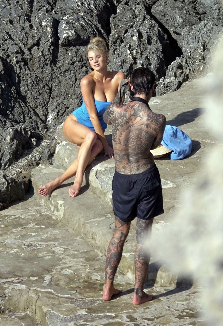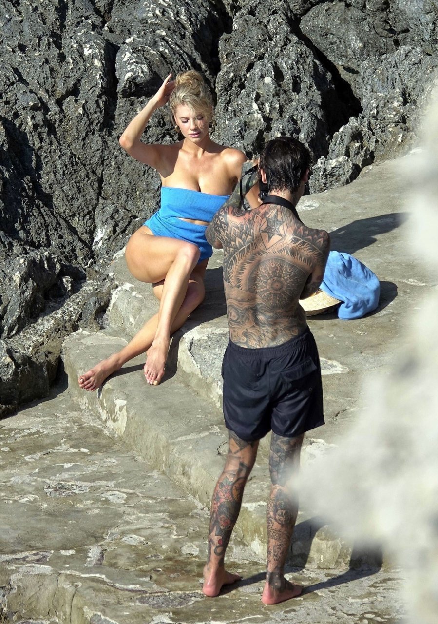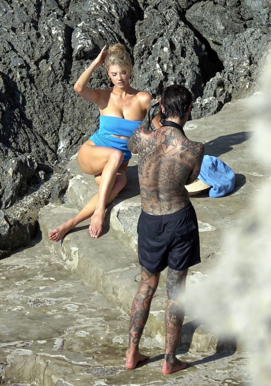 O casal feliz parecia relaxado enquanto desfrutava de um mergulho juntos antes de Charlotte estrelar seu próprio ensaio fotográfico privado com seu amado tornando-se seu fotógrafo pessoal, o que ele parecia feliz em aceitar.