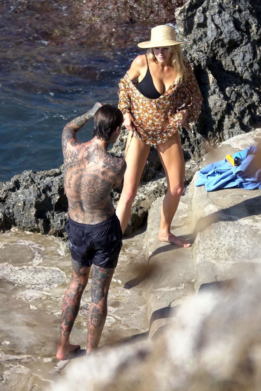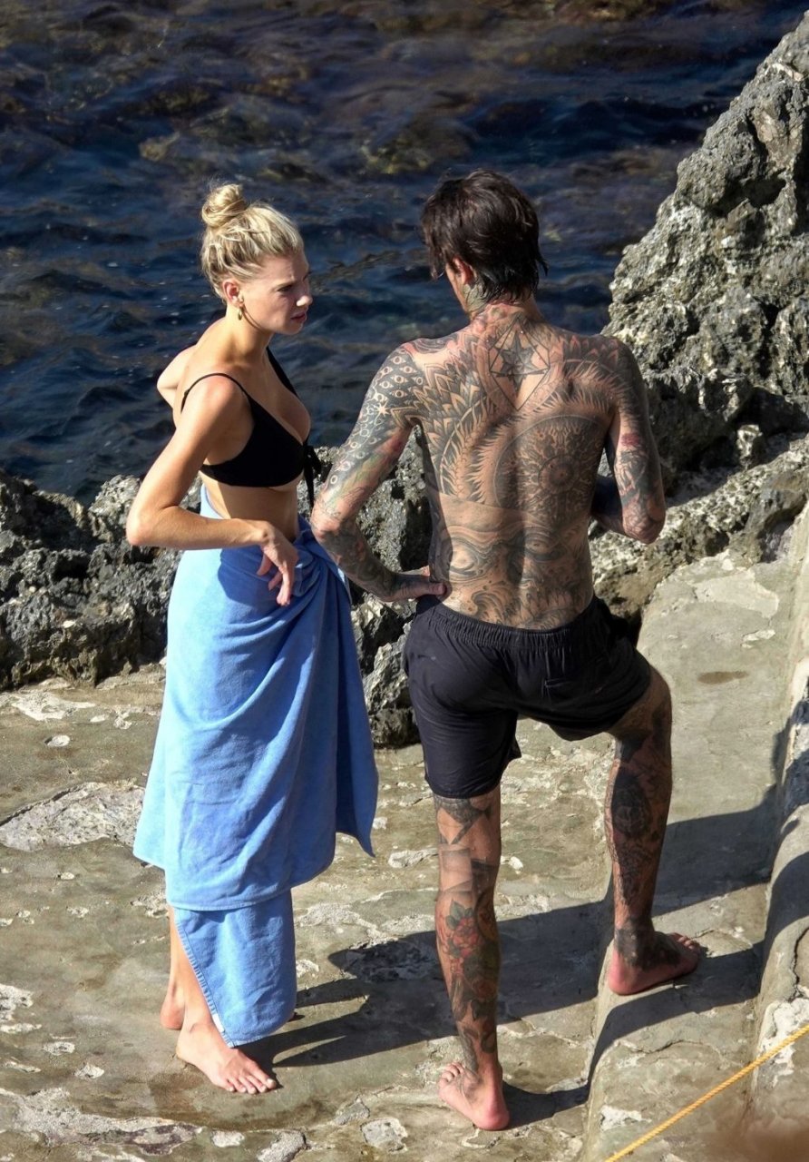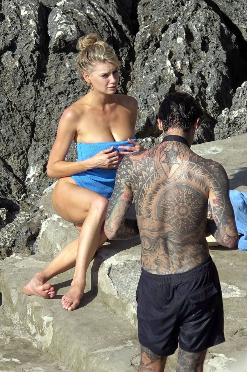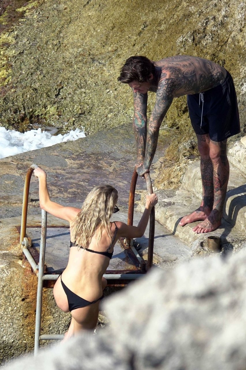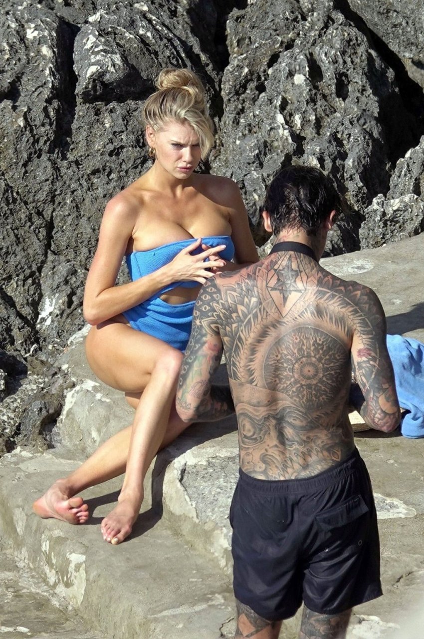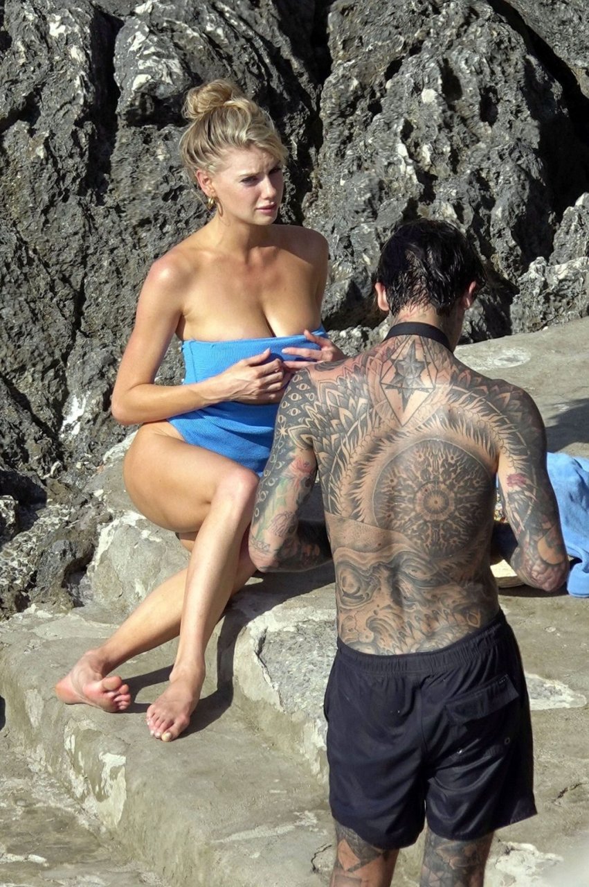 O casal feliz parecia relaxado enquanto desfrutava de um mergulho juntos antes de Charlotte estrelar seu próprio ensaio fotográfico privado com seu amado tornando-se seu fotógrafo pessoal, o que ele parecia feliz em aceitar.