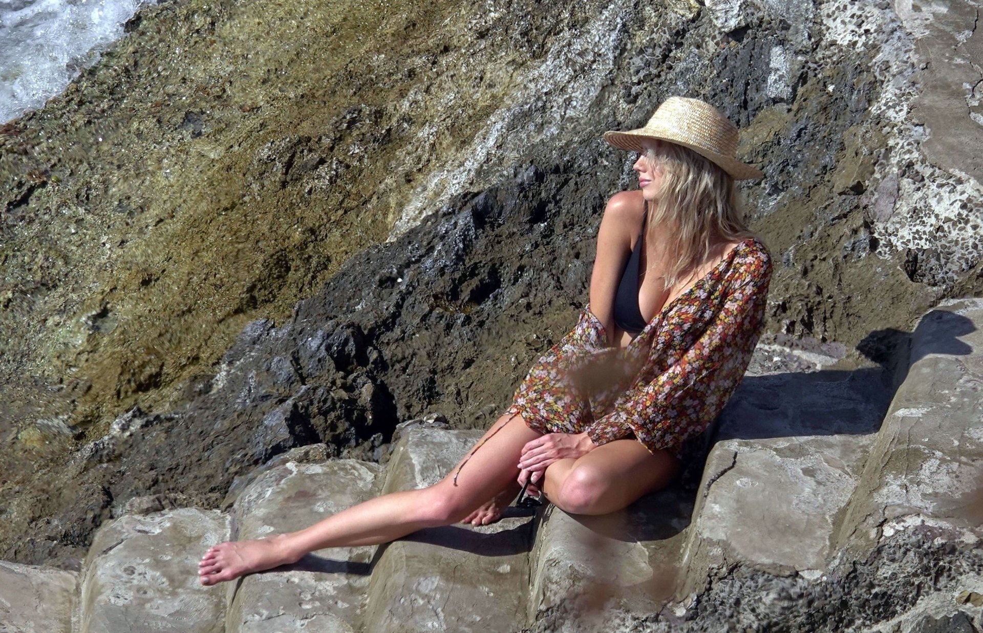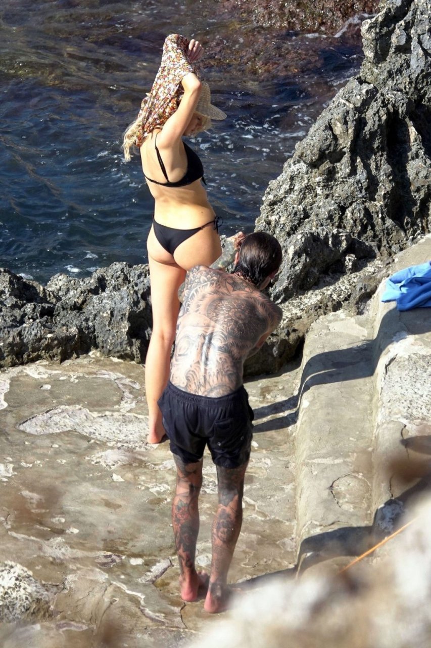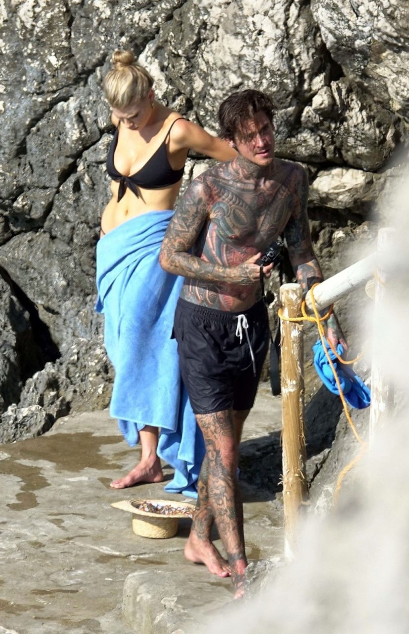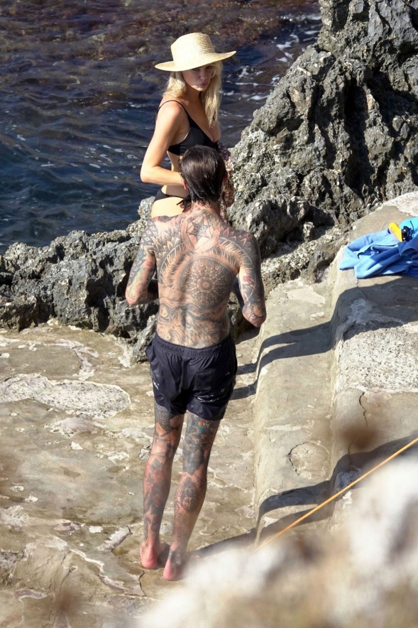 A modelo e atriz americana Charlotte McKinney (25) exibe seu corpo tonificado de biquíni enquanto é fotografada com seu novo namorado Nathan Kostechko aproveitando suas férias em Capri, 13/08/2018.