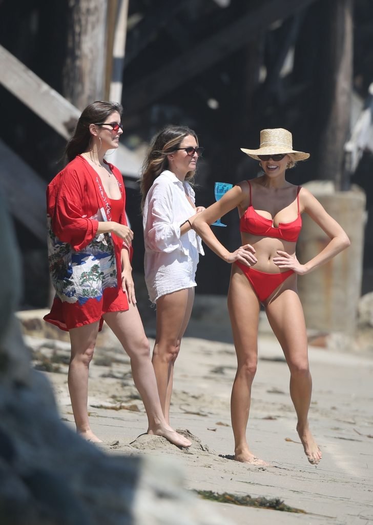 Modelo, atriz e nossa garota do verão, Charlotte McKinney deseja um feliz 4 de julho enquanto celebra com as amigas Em Steel, Autumn Schweizer e outras usando um biquíni de duas peças em Malibu, 04/07/2018.