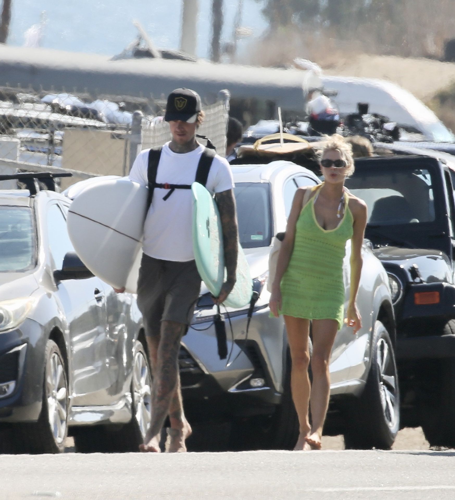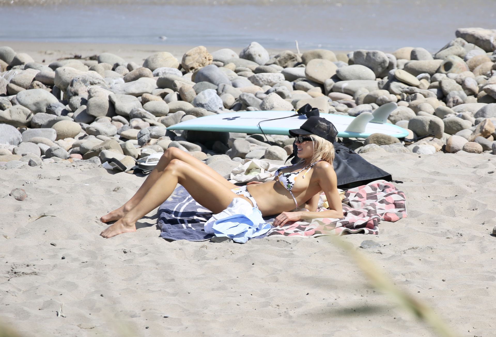 A atriz e modelo de 27 anos saiu com o namorado Nathan Kostechko usando um boné preto estilo trucker junto com um biquíni estampado de duas peças enquanto tomava sol.