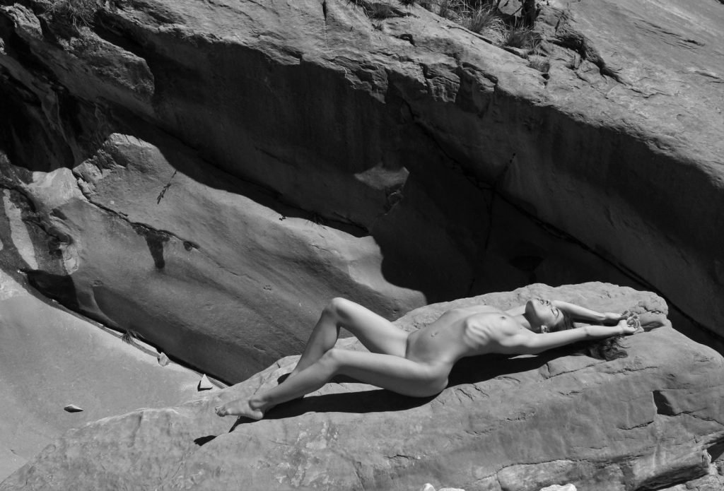 A modelo italiana Chiara Bianchino posa completamente nua em um penhasco em um novo ensaio fotográfico de Marco Antonioli (2019).