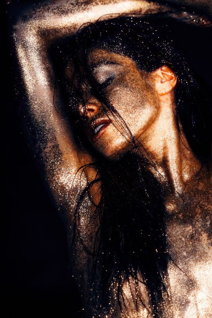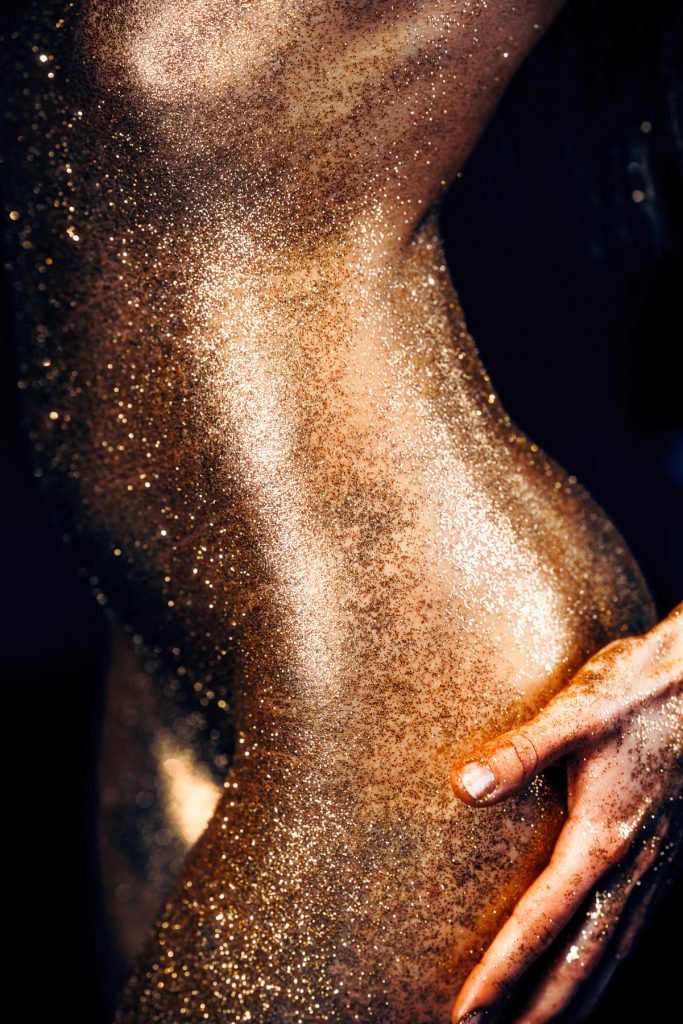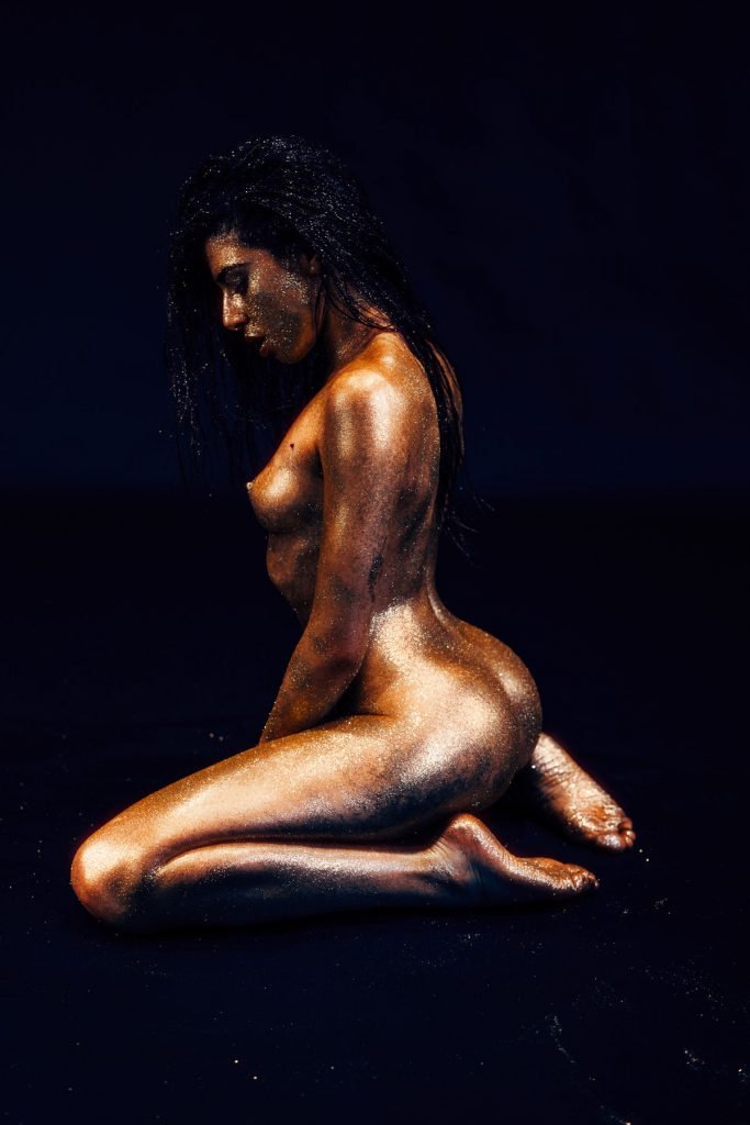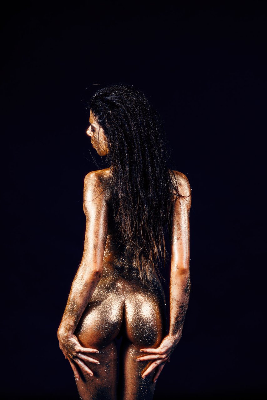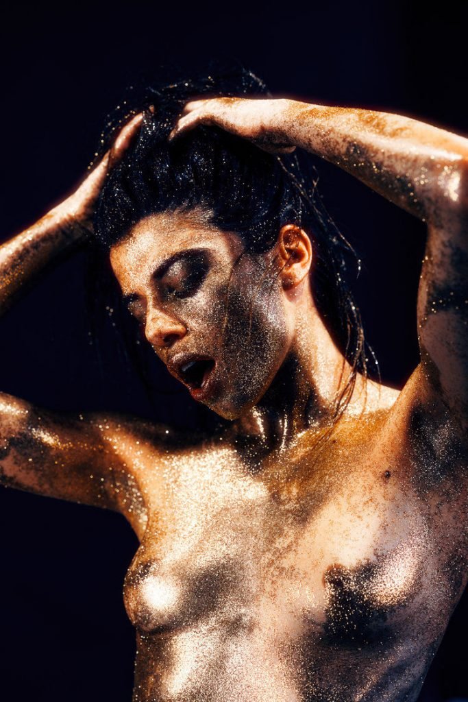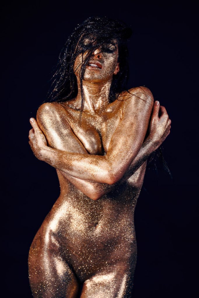 Chiara Bianchino cobriu seu corpo com glitter e posou nua para uma sessão de fotos de Hannes Windrath (2018). Chiara Bianchino é uma modelo italiana e Playmate.