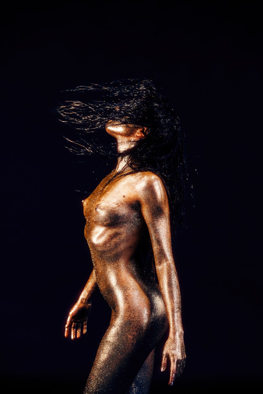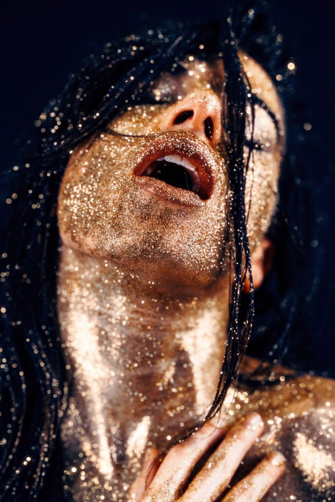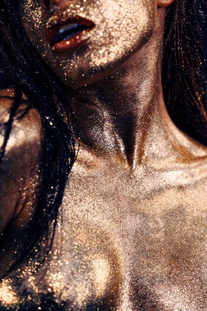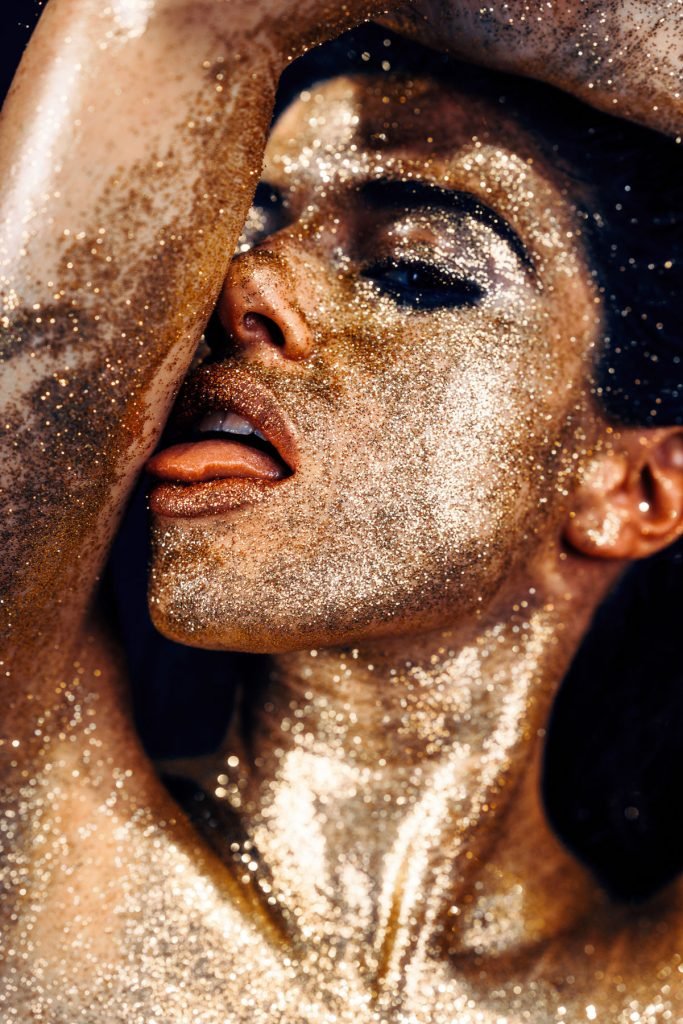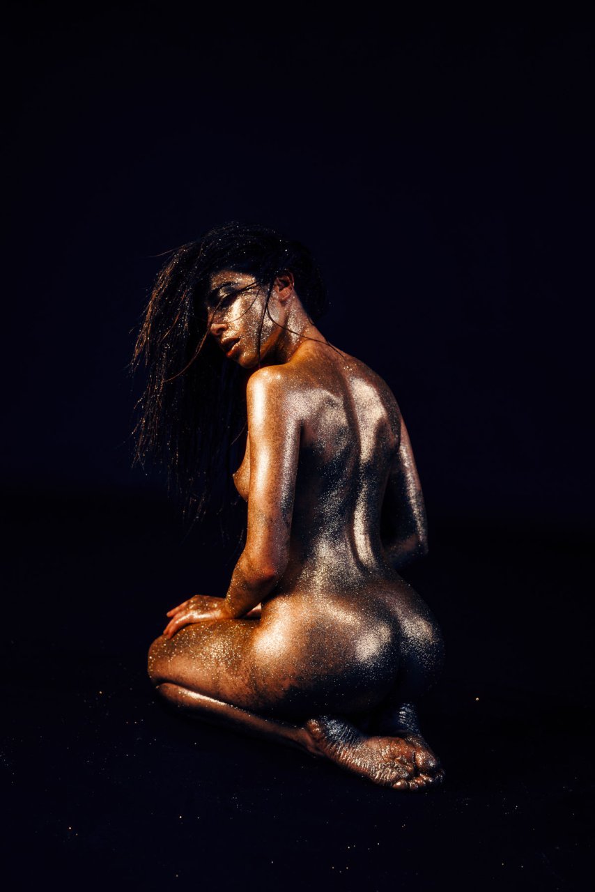 Chiara Bianchino cobriu seu corpo com glitter e posou nua para uma sessão de fotos de Hannes Windrath (2018). Chiara Bianchino é uma modelo italiana e Playmate.