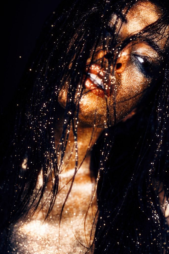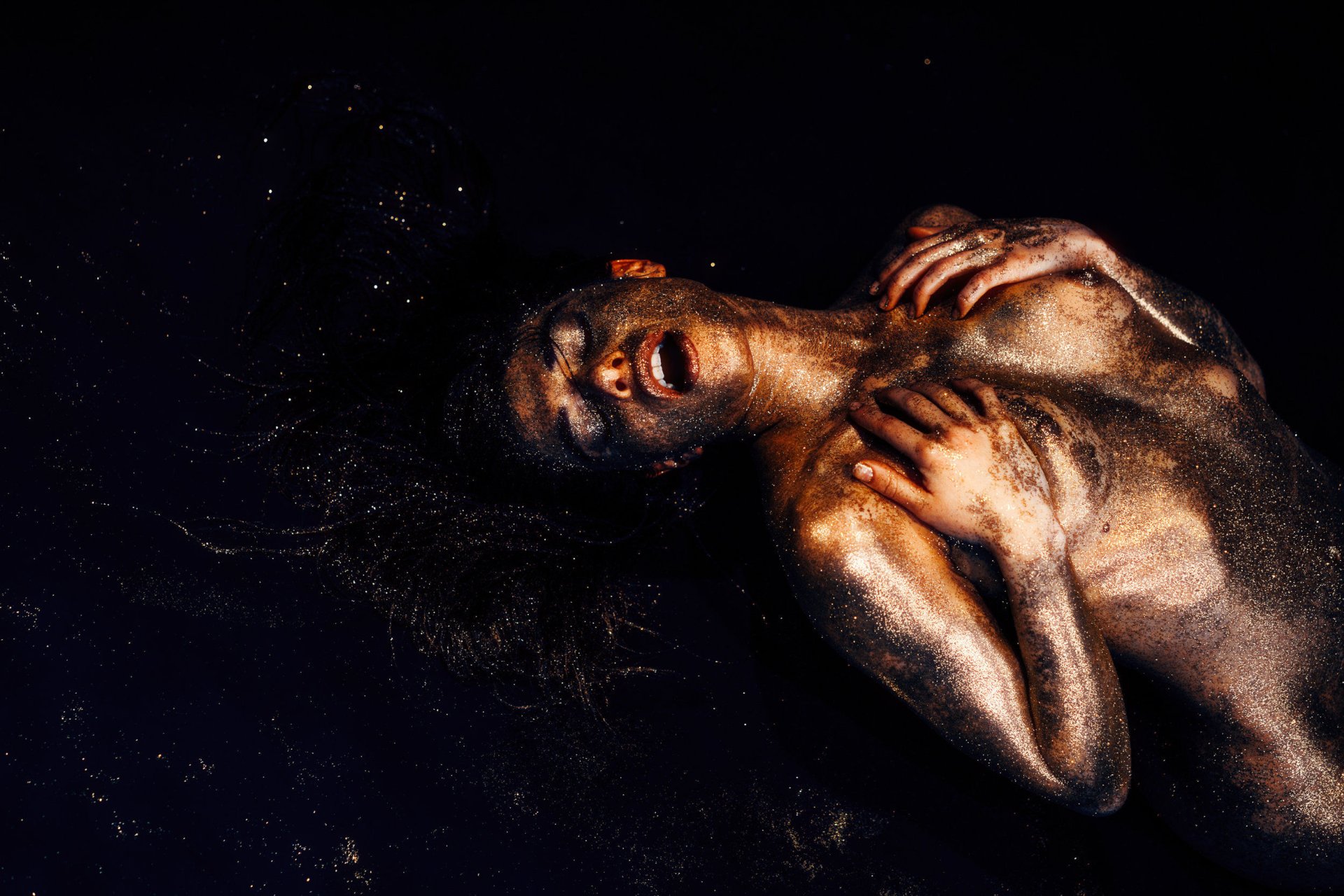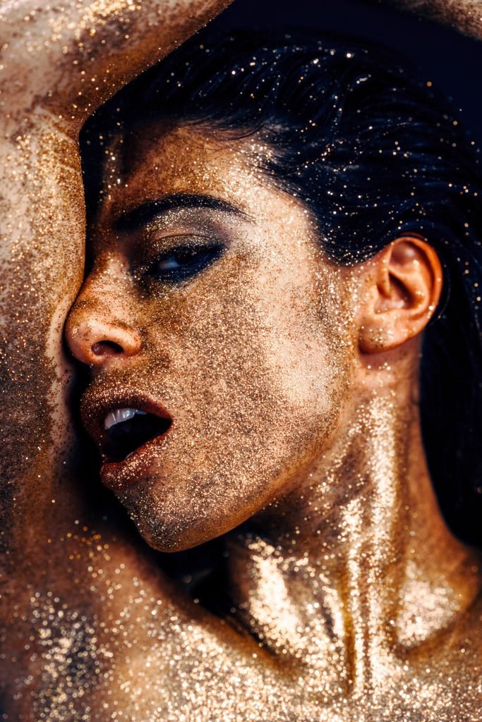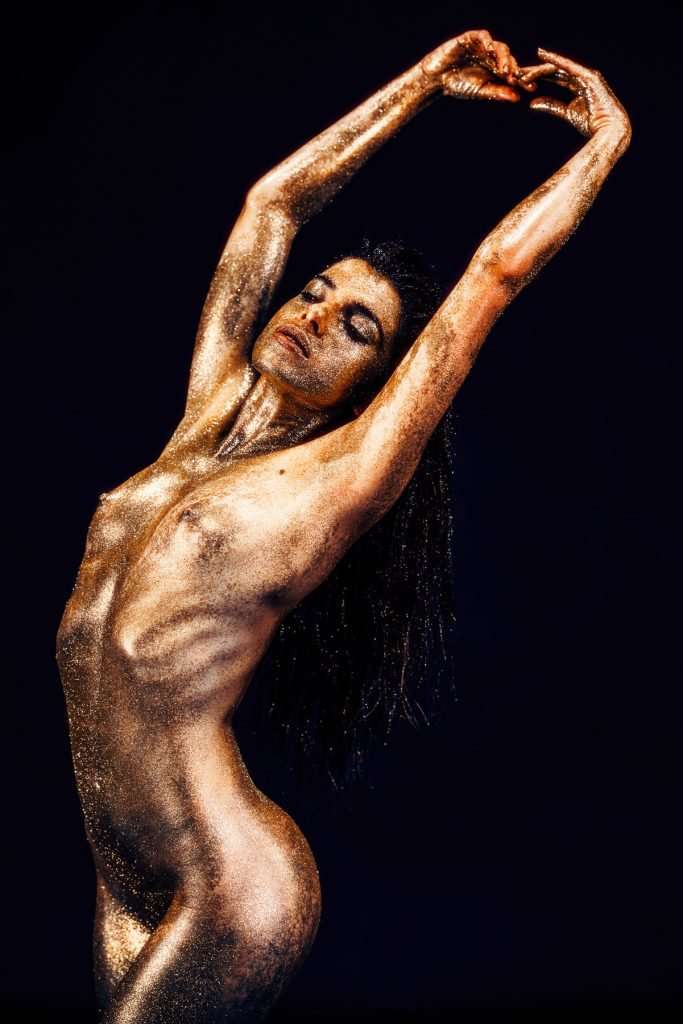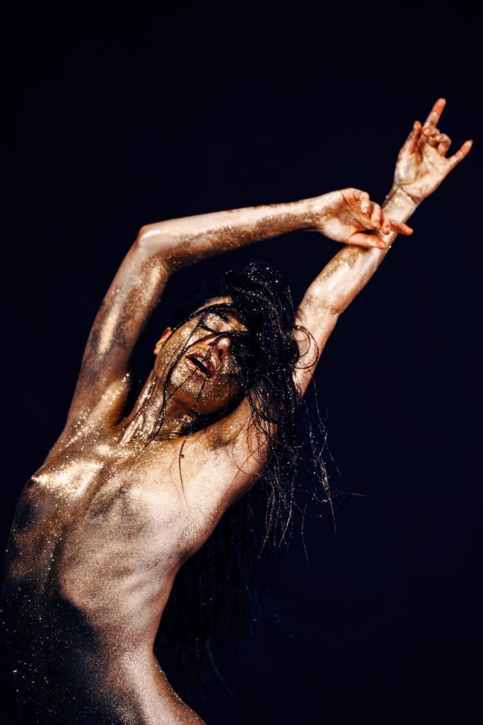 Chiara Bianchino cobriu seu corpo com glitter e posou nua para uma sessão de fotos de Hannes Windrath (2018). Chiara Bianchino é uma modelo italiana e Playmate.