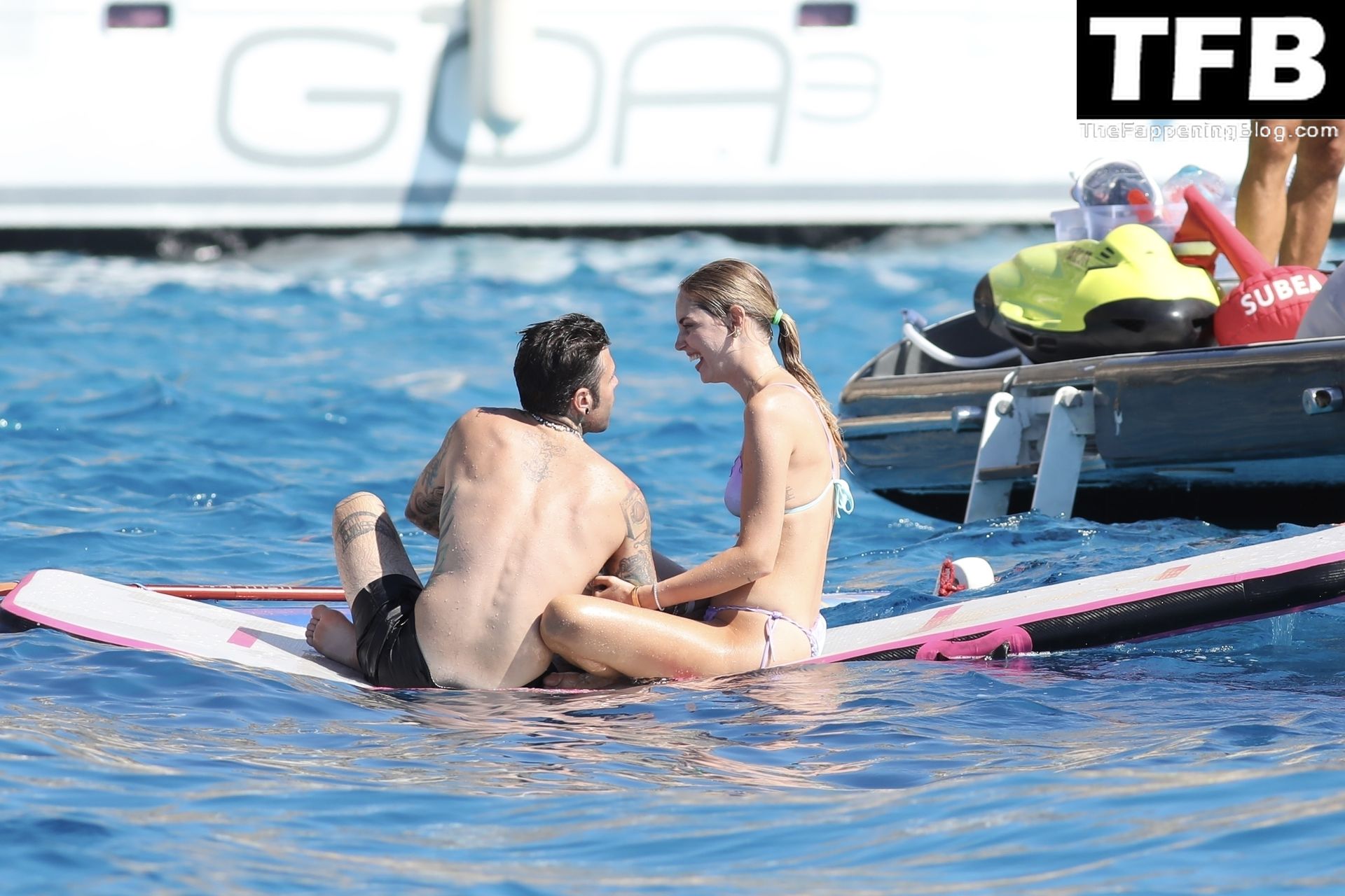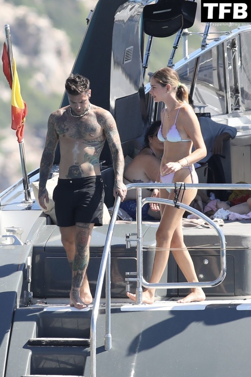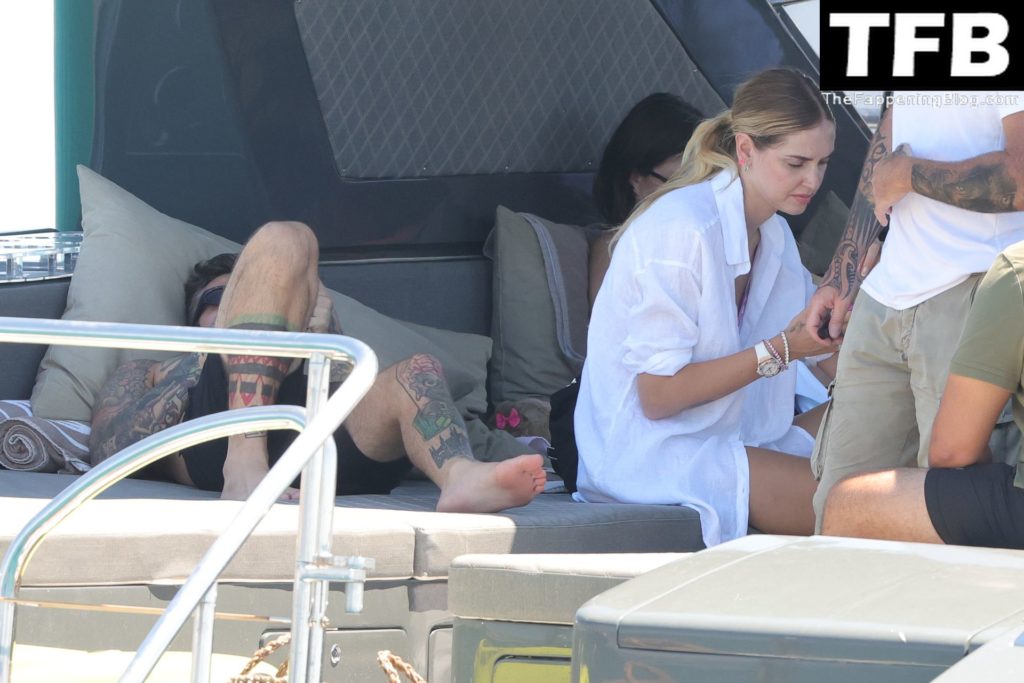 Italian rapper Fedez and Chiara Ferragni are pictured enjoying their family holiday on their boat in Formentera, 08/03/2022.