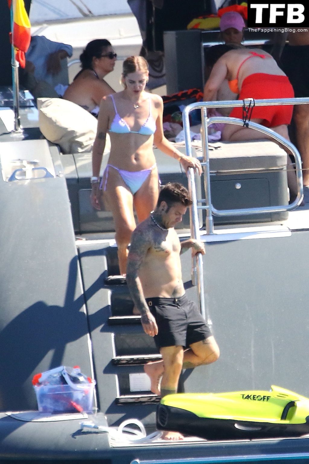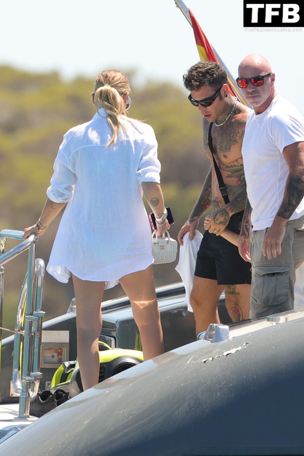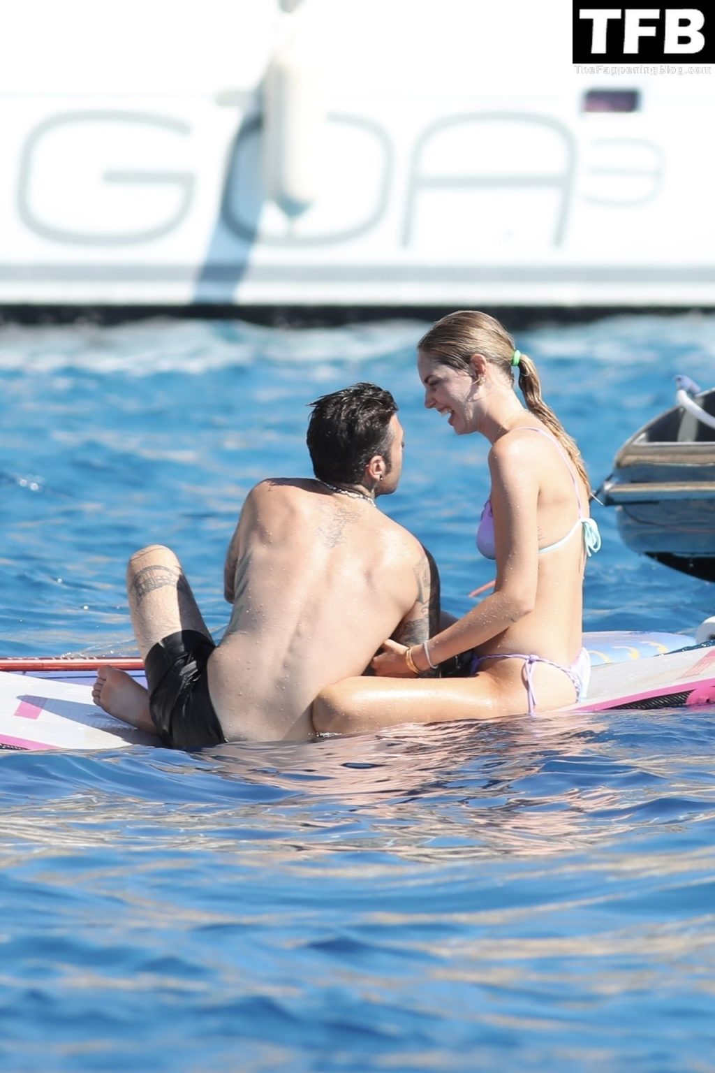 Italian rapper Fedez and Chiara Ferragni are pictured enjoying their family holiday on their boat in Formentera, 08/03/2022.