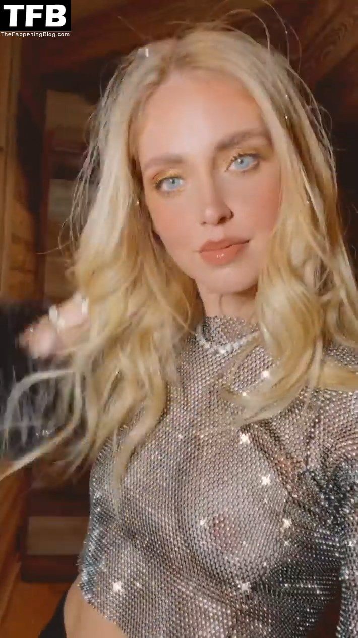 Chiara Ferragni compartilha algumas fotos e um vídeo, mostrando seus mamilos enquanto posa sem sutiã em uma festa – Instagram, 01/07/2022.