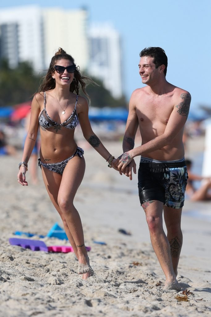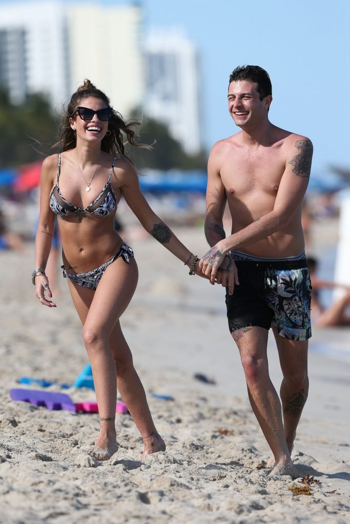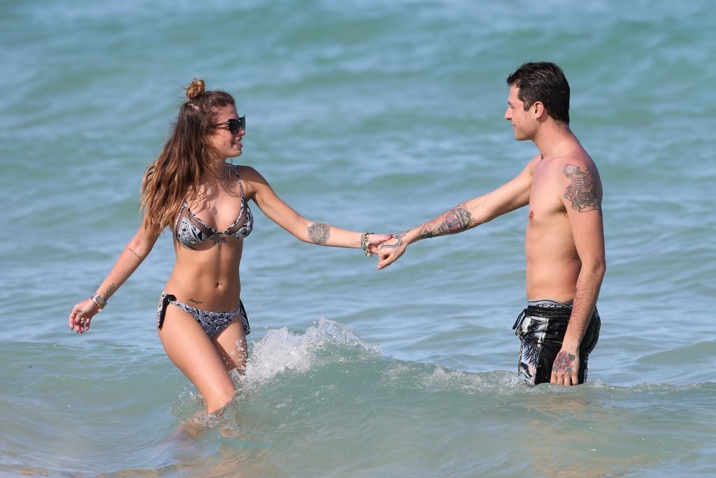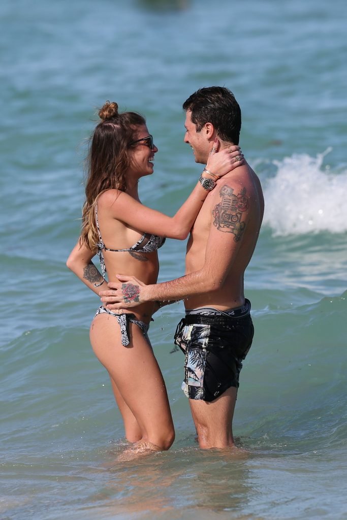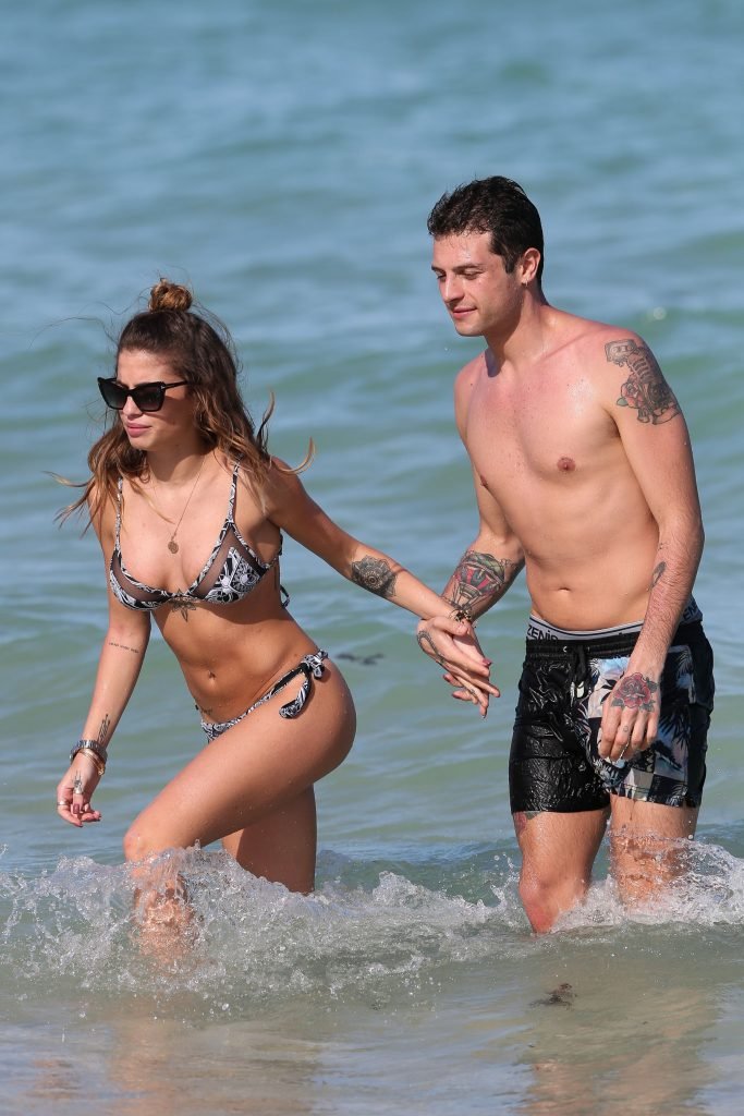 Chiara Nasti usa um biquíni sexy com seu namorado Marco Ferrero na Miami Beach, 12/03/2017. Chiara Nasti é uma blogueira de moda da Itália.