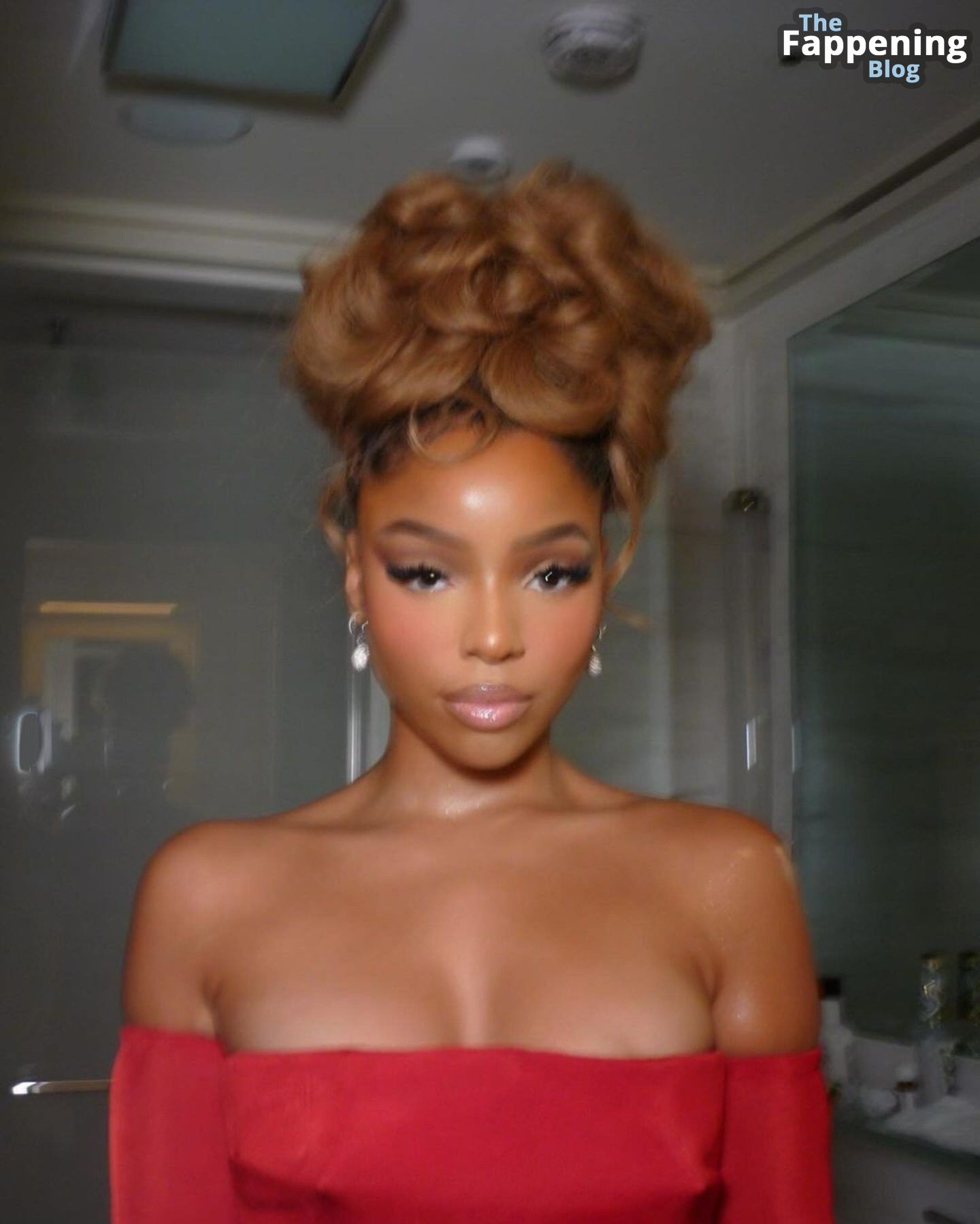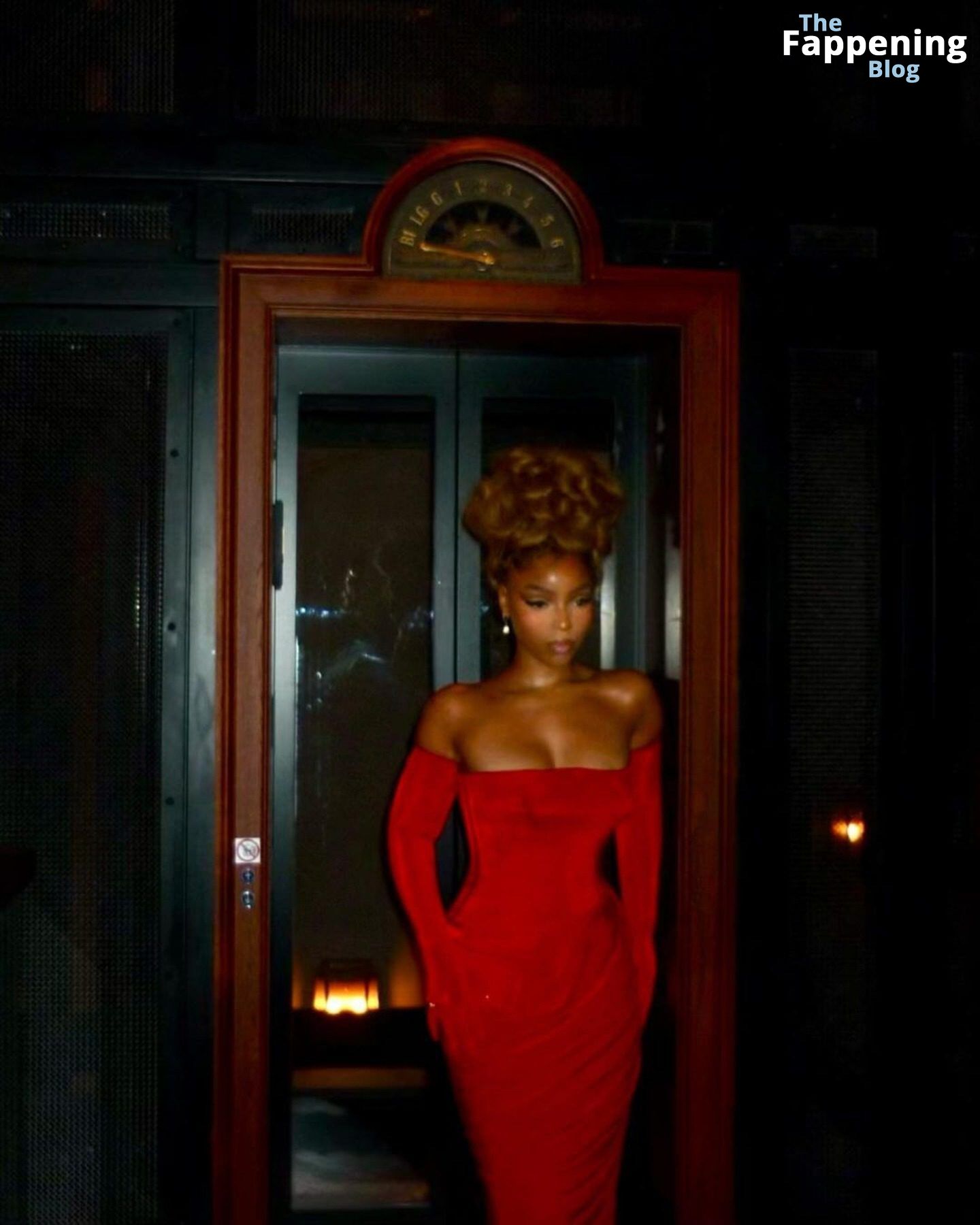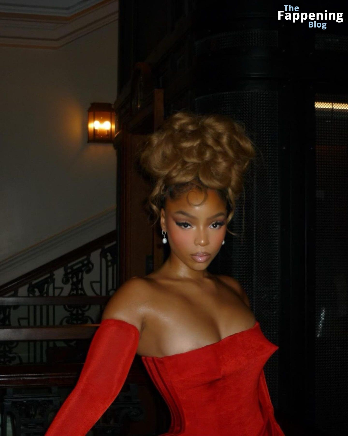 A cantora/atriz Chloe Bailey aparece com um vestido de alta costura escarlate com um detalhe super ousado neste novo ensaio.
