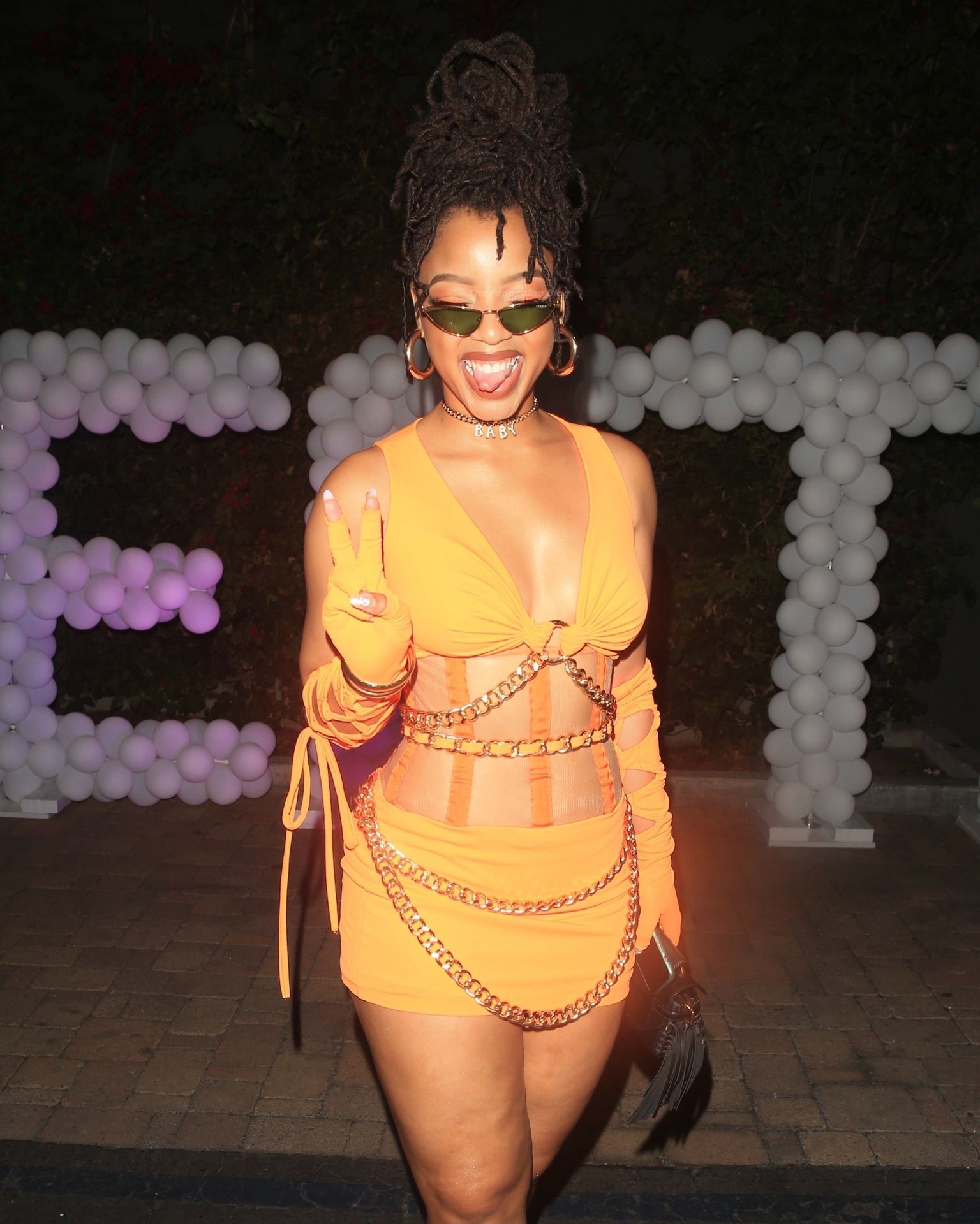 Chloe Bailey exibe suas curvas na festa de aniversário “Freaknik” de Saweetie no Goya Studios em Los Angeles, 07/03/2021.