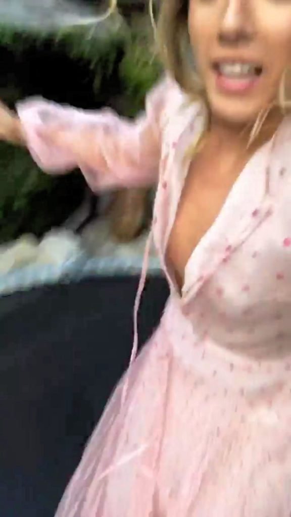 Honestamente, é bem corajoso da parte dela pular em um trampolim com um vestido meio solto e sem sutiã. Ou ela é uma vadia e quer que as pessoas vejam seus peitos