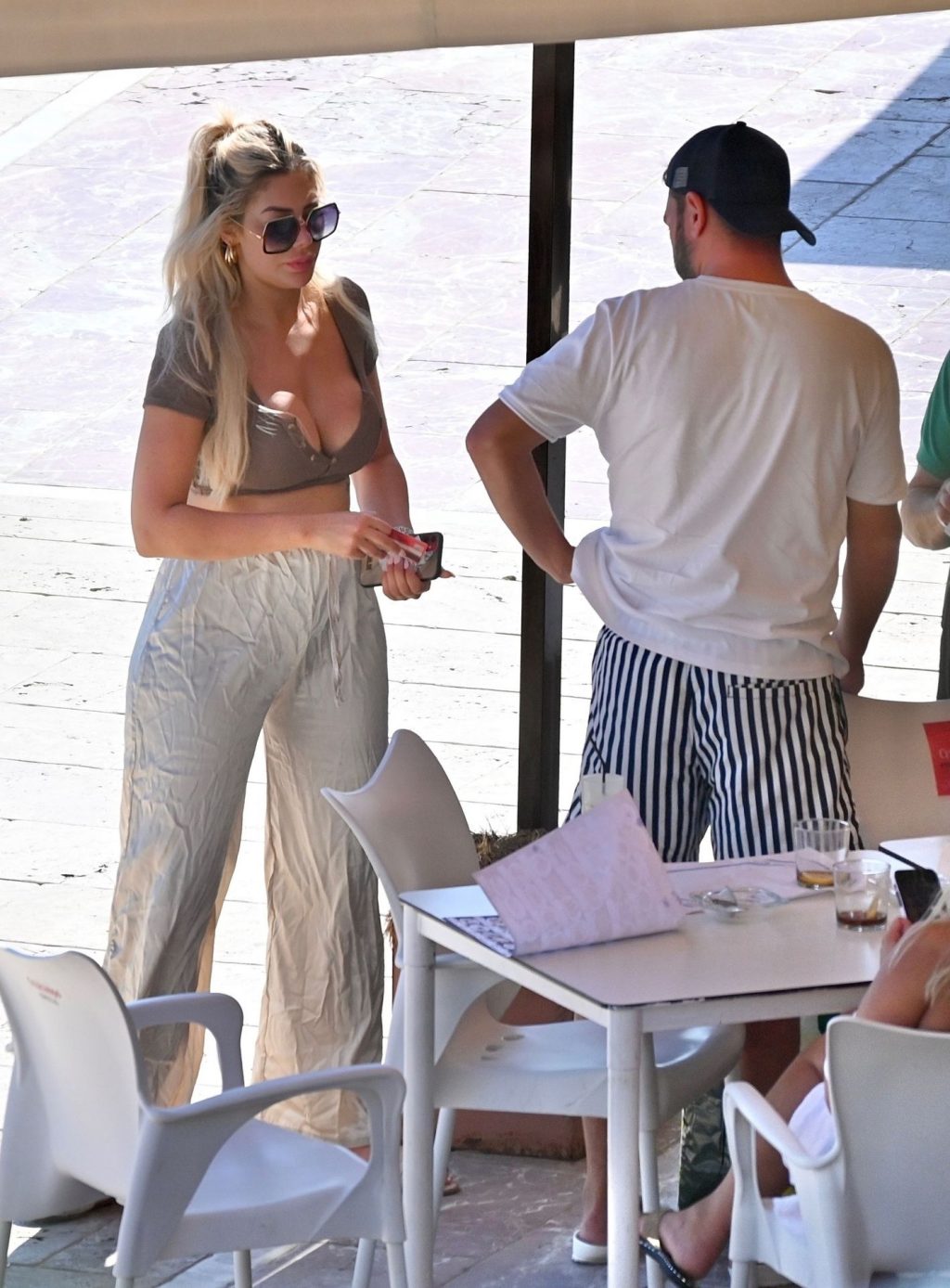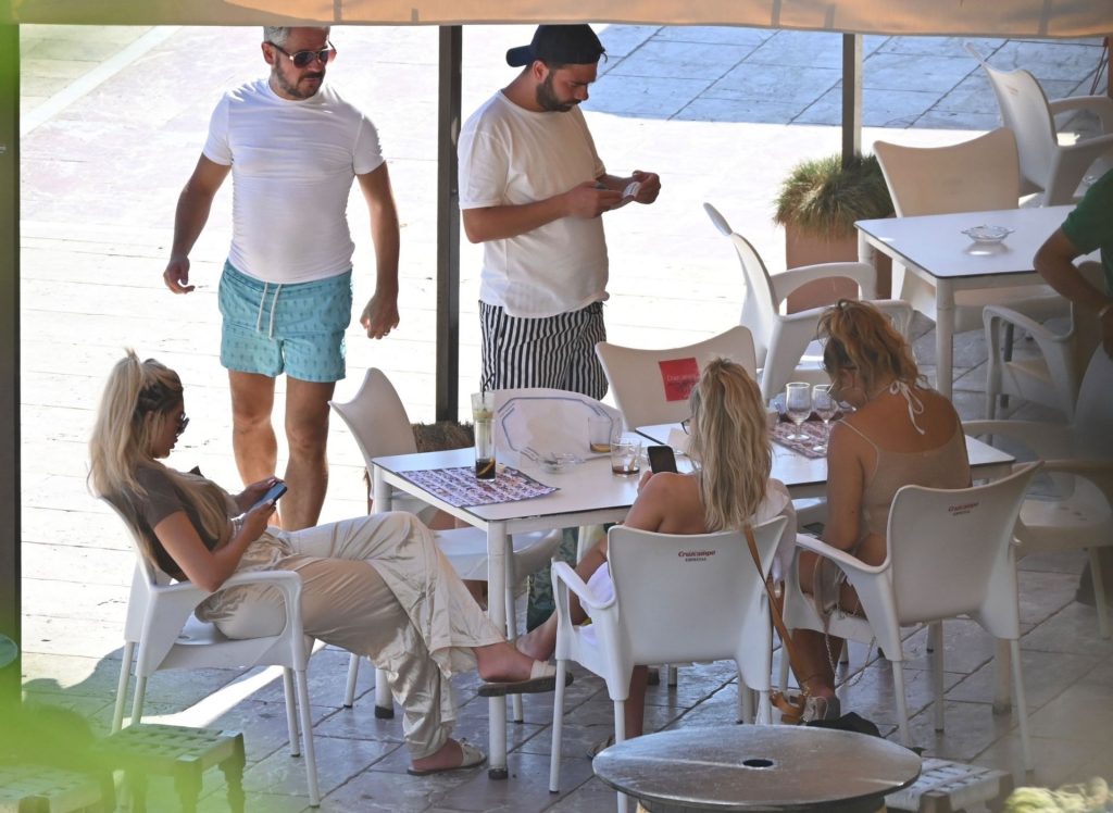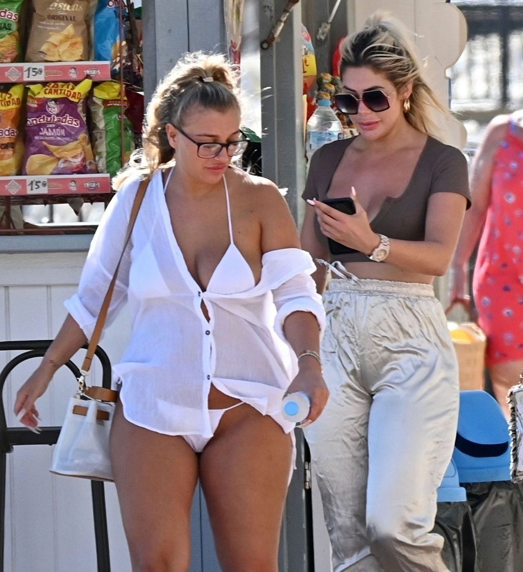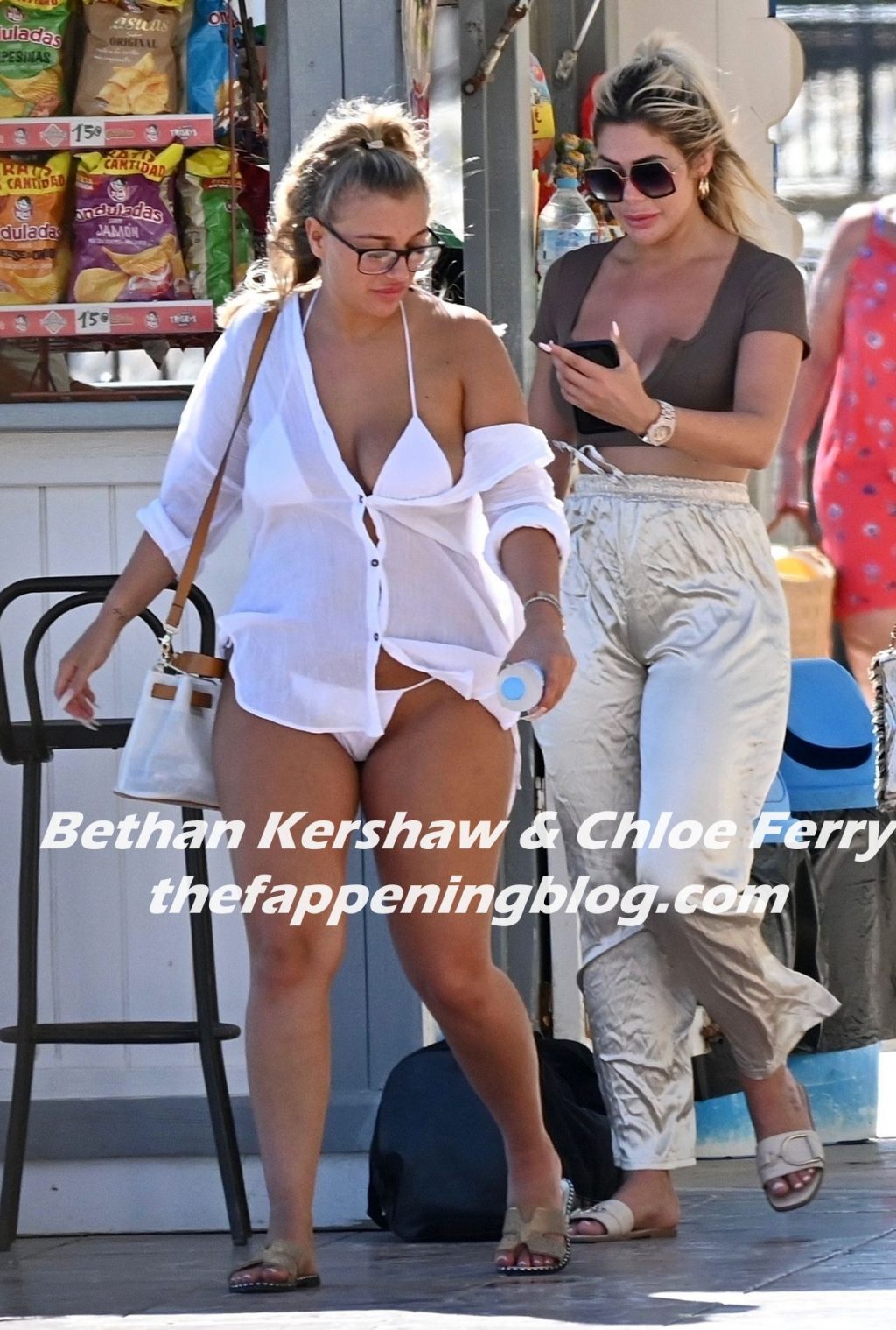 Chloe, que recentemente comemorou seu 25º aniversário, exibiu bastante decote em um top profundo, enquanto Bethan optou por um visual mais ousado e revelador, usando seu biquíni branco.