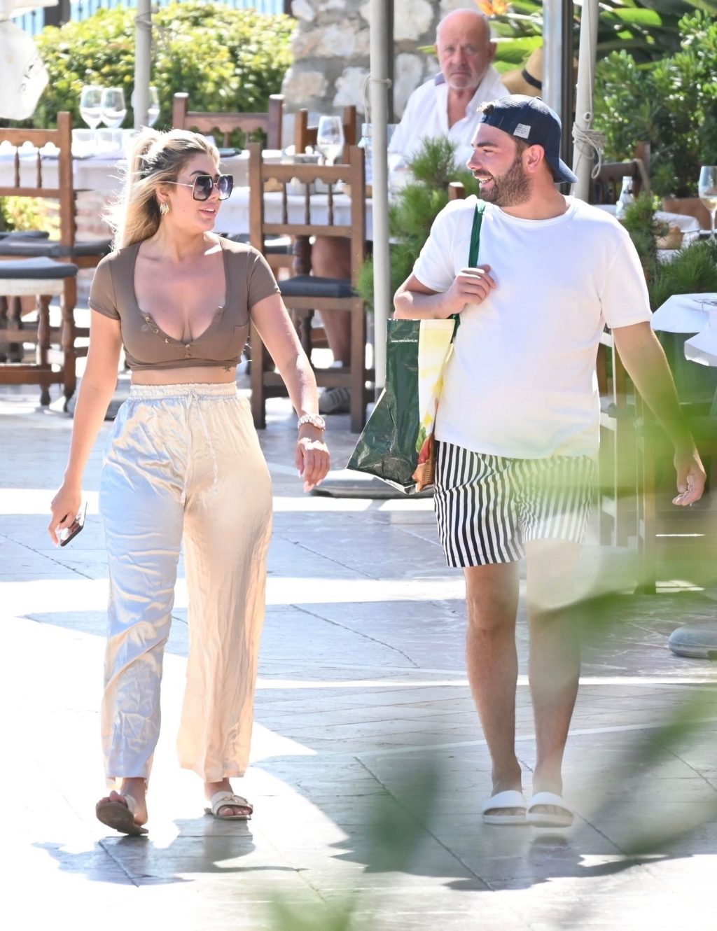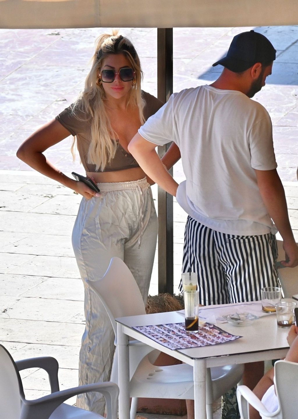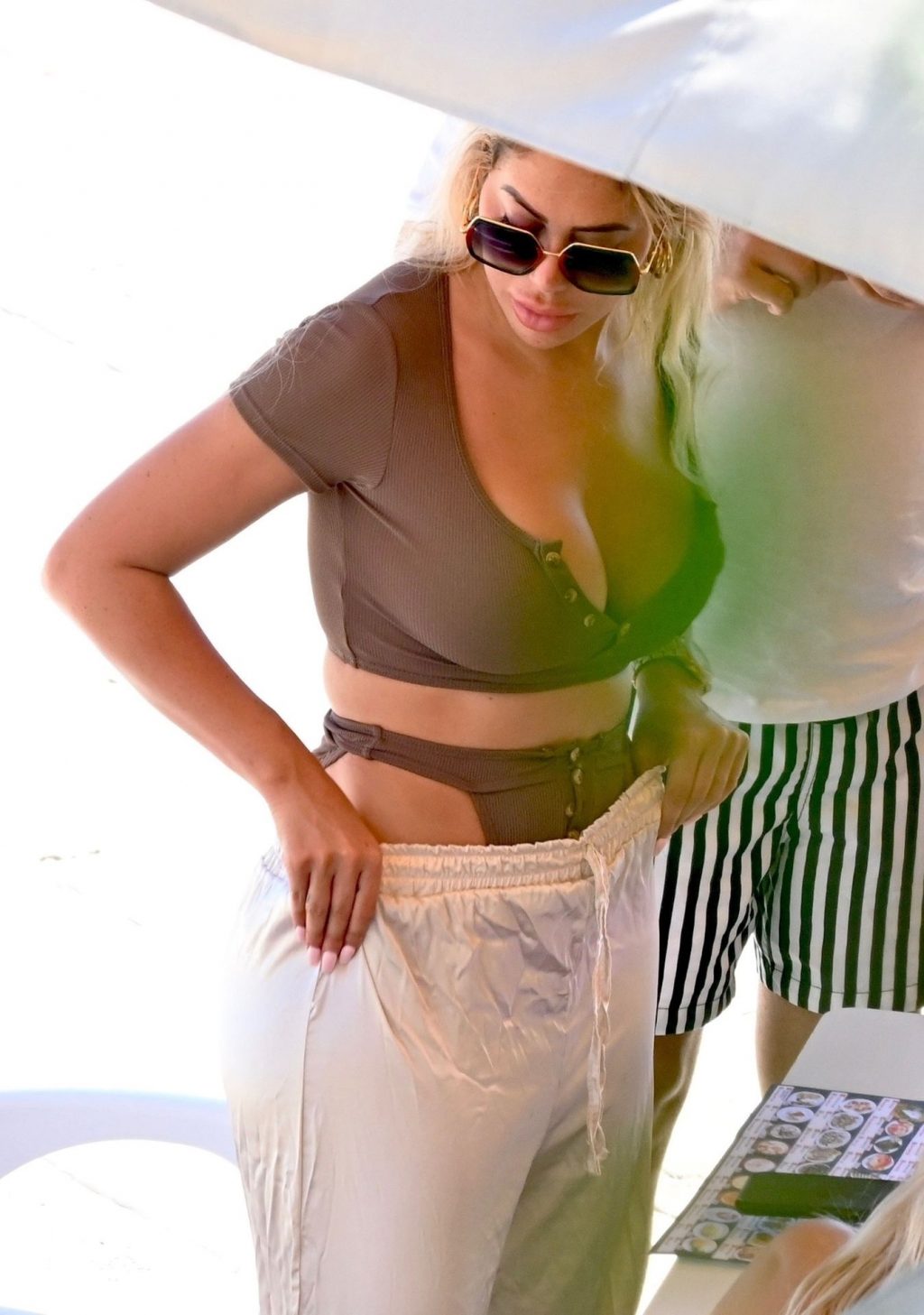 Chloe, que recentemente comemorou seu 25º aniversário, exibiu bastante decote em um top profundo, enquanto Bethan optou por um visual mais ousado e revelador, usando seu biquíni branco.