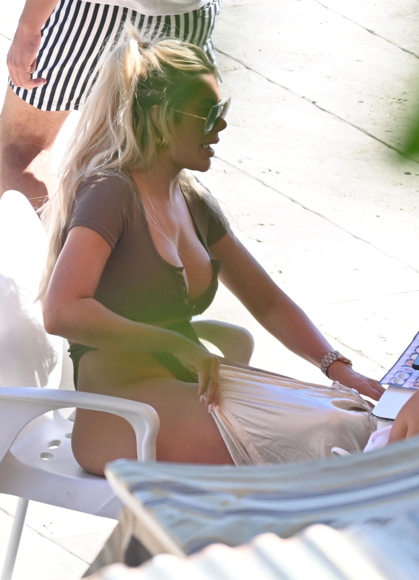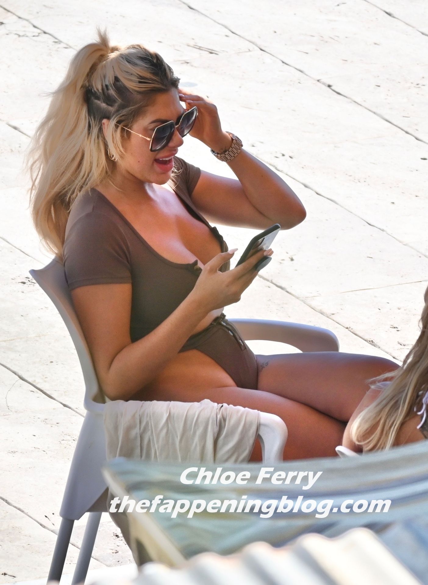 Chloe, que recentemente comemorou seu 25º aniversário, exibiu bastante decote em um top profundo, enquanto Bethan optou por um visual mais ousado e revelador, usando seu biquíni branco.