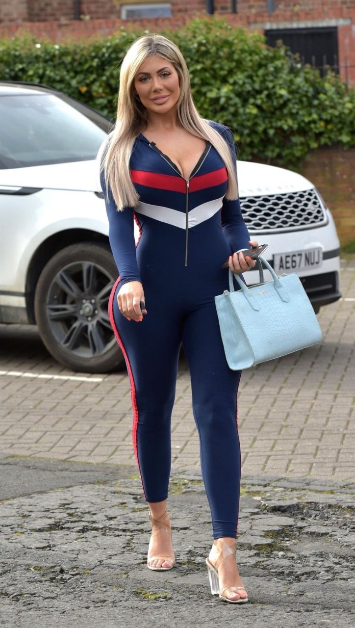 Chloe Ferry exibiu suas curvas com um body enquanto chegava para as filmagens em Newcastle, 21/03/2019. A estrela de Geordie Shore chegou a um spa para filmar com sua nova colega de elenco e amiga Bethan Kershaw. As duas foram vistas chegando ao Pine Tree Health and Fitness Centre nesta tarde.