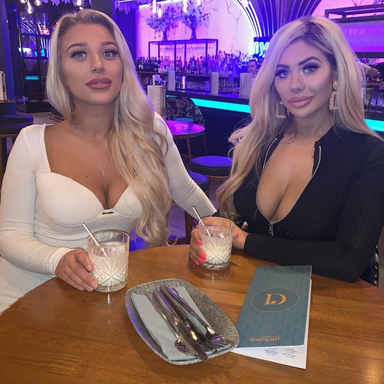 Geordie Shore’s Chloe Ferry e a nova garota Bethan Kershaw aproveitam um encontro de amigas enquanto as duas foram comer no Restaurante Banyan em Newcastle, 05/04/2019.