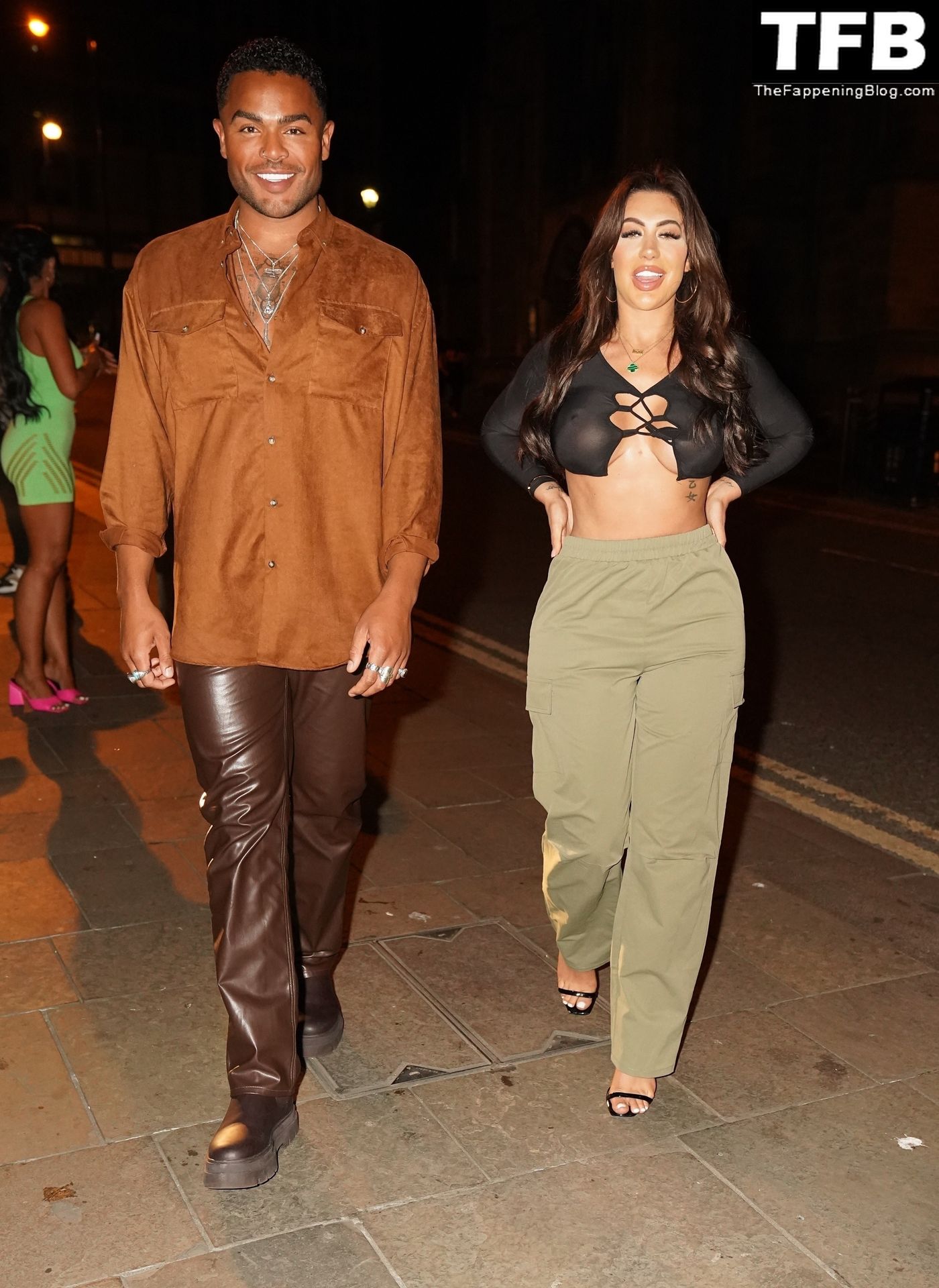 Chloe Ferry sem sutiã grava para “Geordie Shore” (O Reencontro) em Newcastle com os colegas de elenco Bethan Kershaw, Abbie Holborn, James Tindale e Nathan Henry, 24/05/2022.