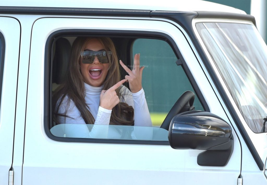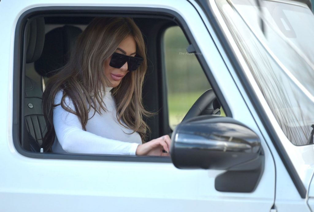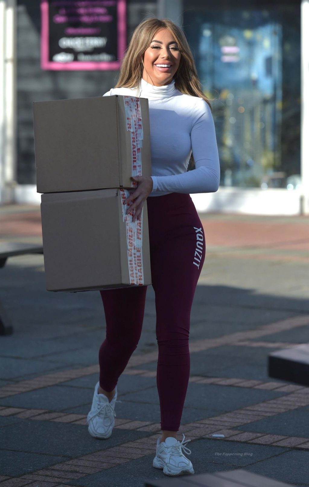 Chloe sem sutiã é fotografada em sua loja em Newcastle ajudando sua mãe com os pedidos e retirando correspondência, 25/02/2021.