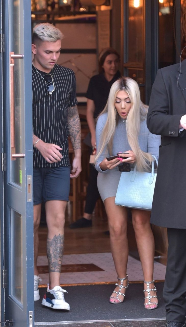Chloe Ferry e Sam Gowland do Geordie Shore aproveitam uma noite de encontro no Toon, 27/04/2019. O casal desfrutou de comida e coquetéis no novo Restaurante Banyan no centro de Newcastle.