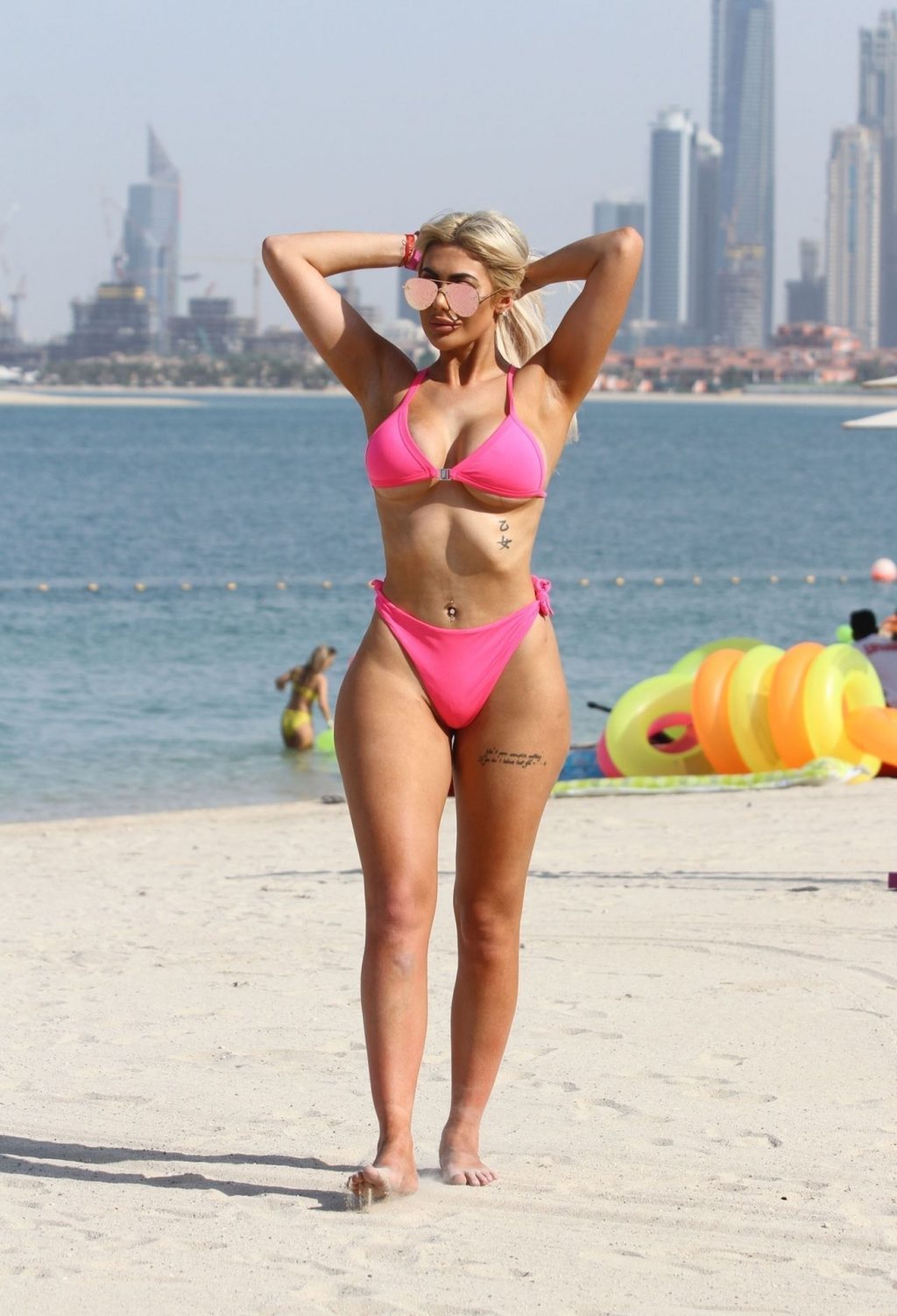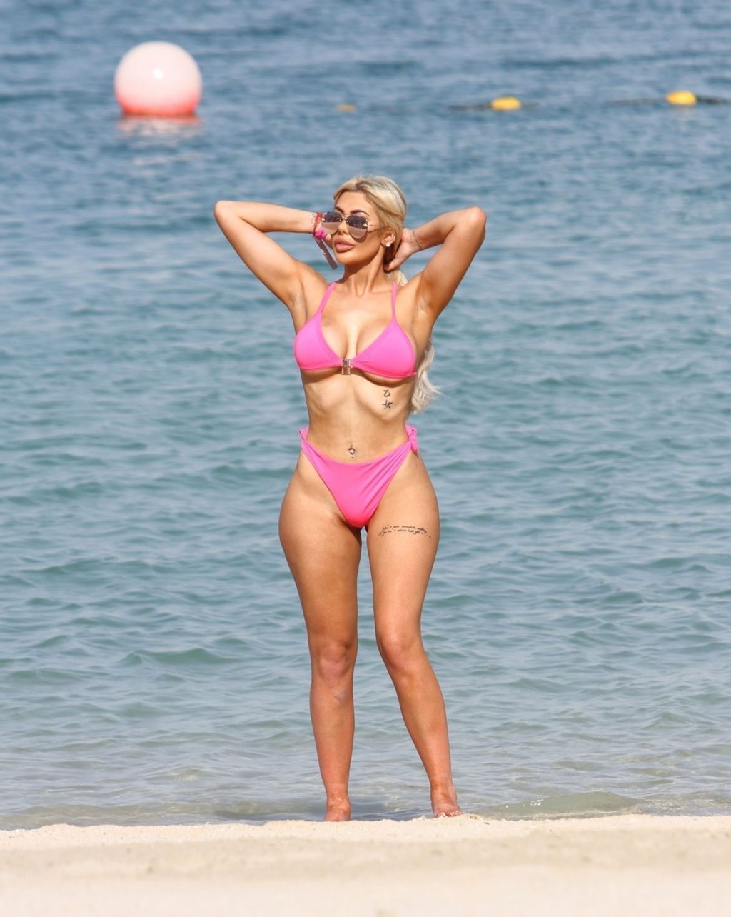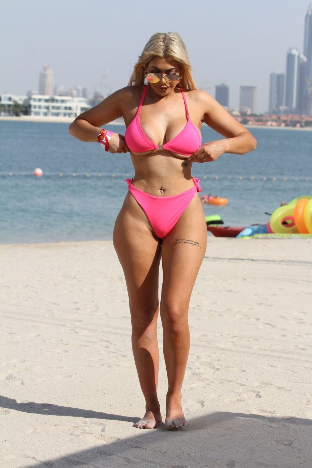 Sizzling na praia e exibindo um visual quente sob o sol dos Emirados está a beleza de Geordie Shore, Chloe Ferry, parecendo fabulosa em seu biquíni rosa minúsculo, 17/10/2019.
