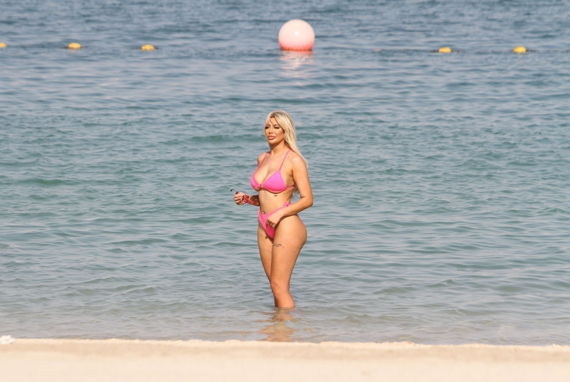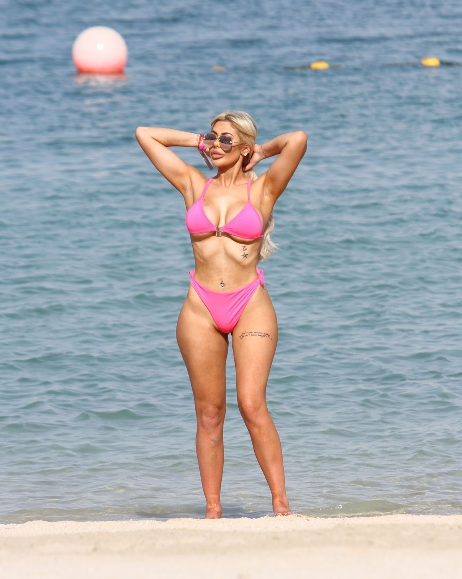 Sizzling na praia e exibindo um visual quente sob o sol dos Emirados está a beleza de Geordie Shore, Chloe Ferry, parecendo fabulosa em seu biquíni rosa minúsculo, 17/10/2019.