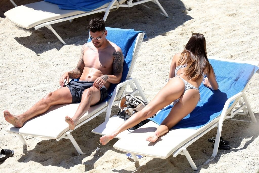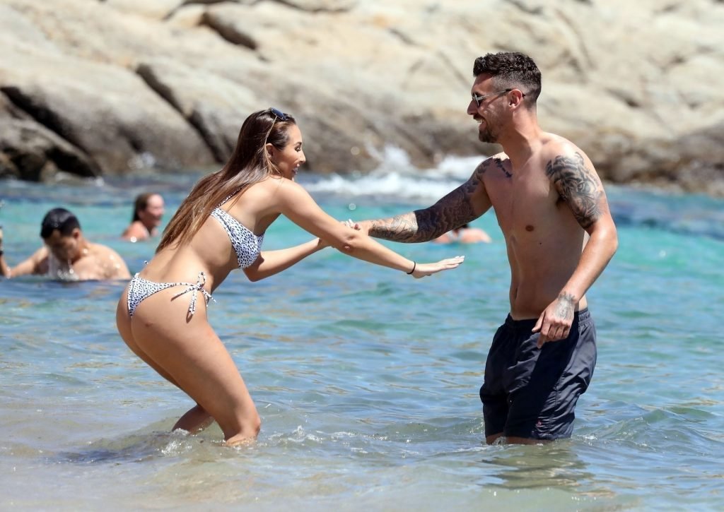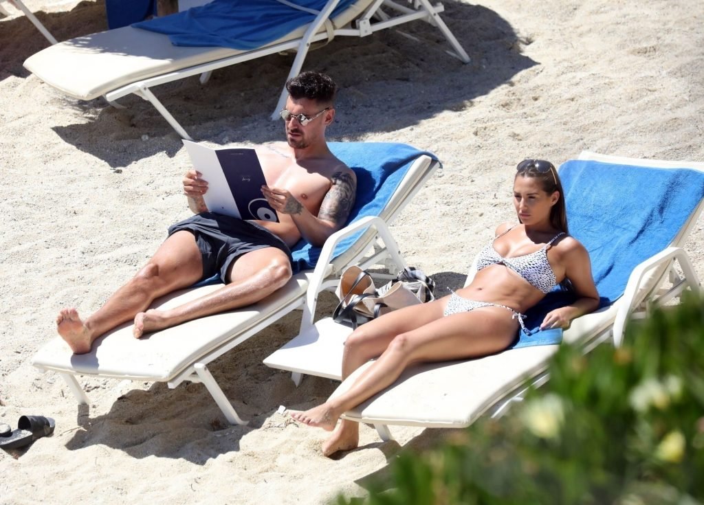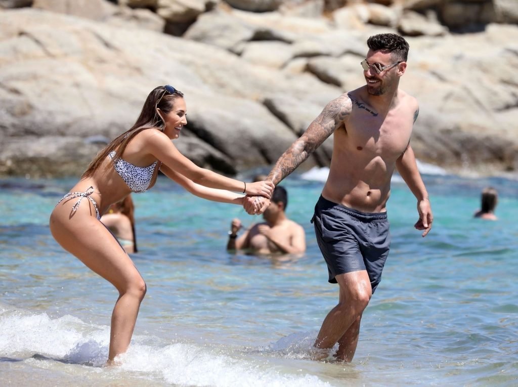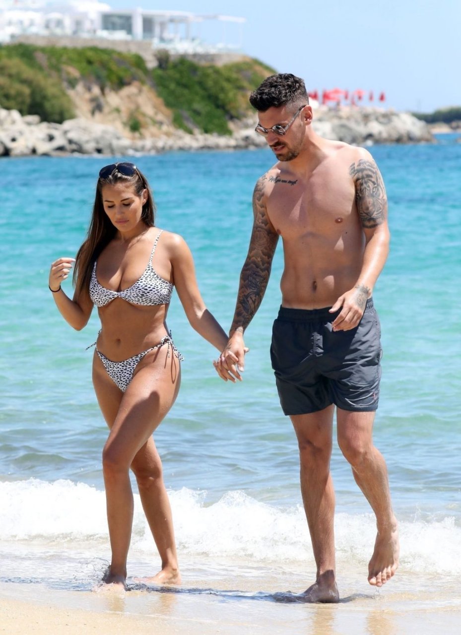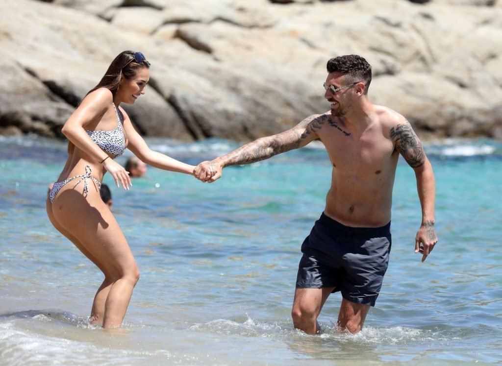 Reality star Chloe Goodman e o jogador de futebol do QPR Grant Hall fotografados em suas férias ao sol em Mykonos, 16/05/2019. O casal parecia estar sentindo o amor enquanto se abraçavam e compartilhavam alguns beijos enquanto brincavam na água.